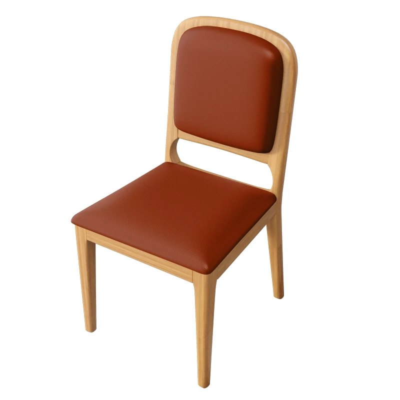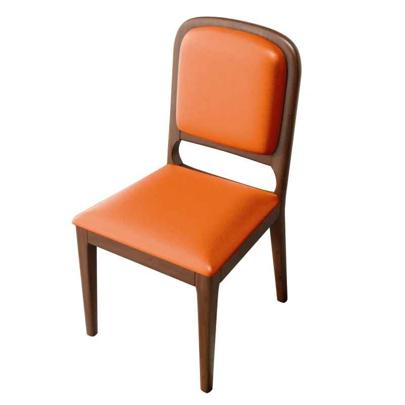 ウォールナット色の椅子 オレンジ色のレザーソフトパック