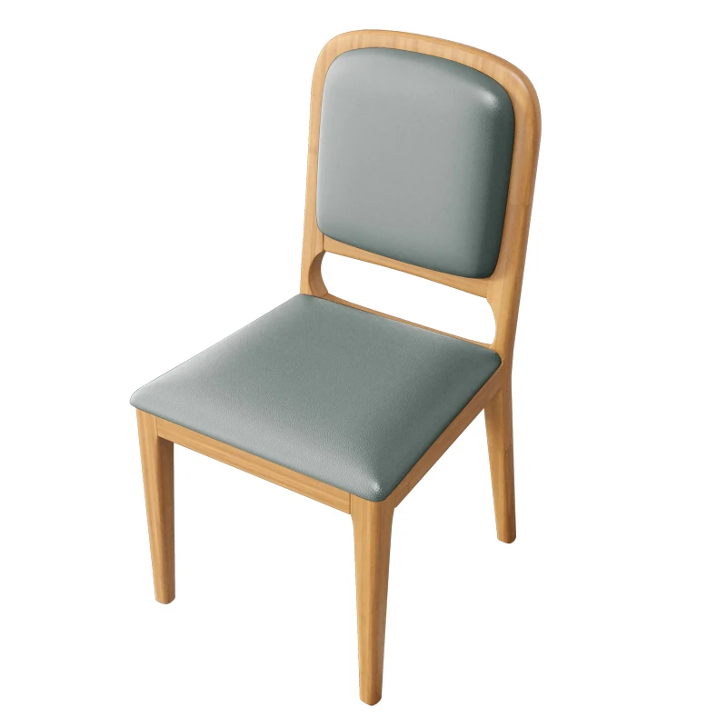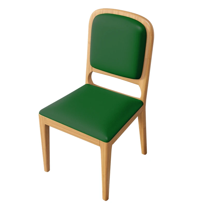 原木色の椅子 ダークグリーンのレザーソフトパック