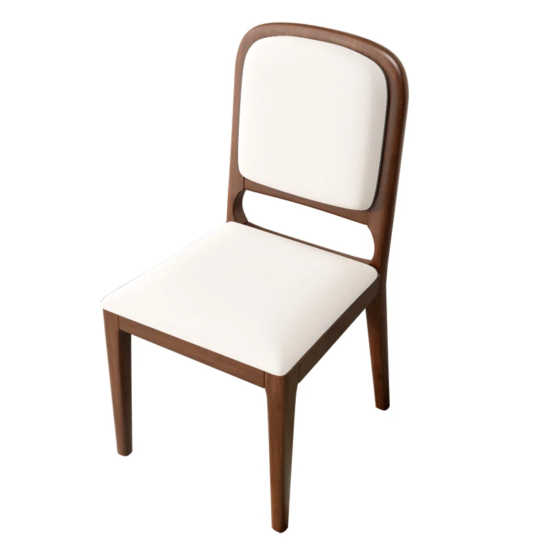 ウォールナット色の椅子 アイボリーのレザーソフトパック