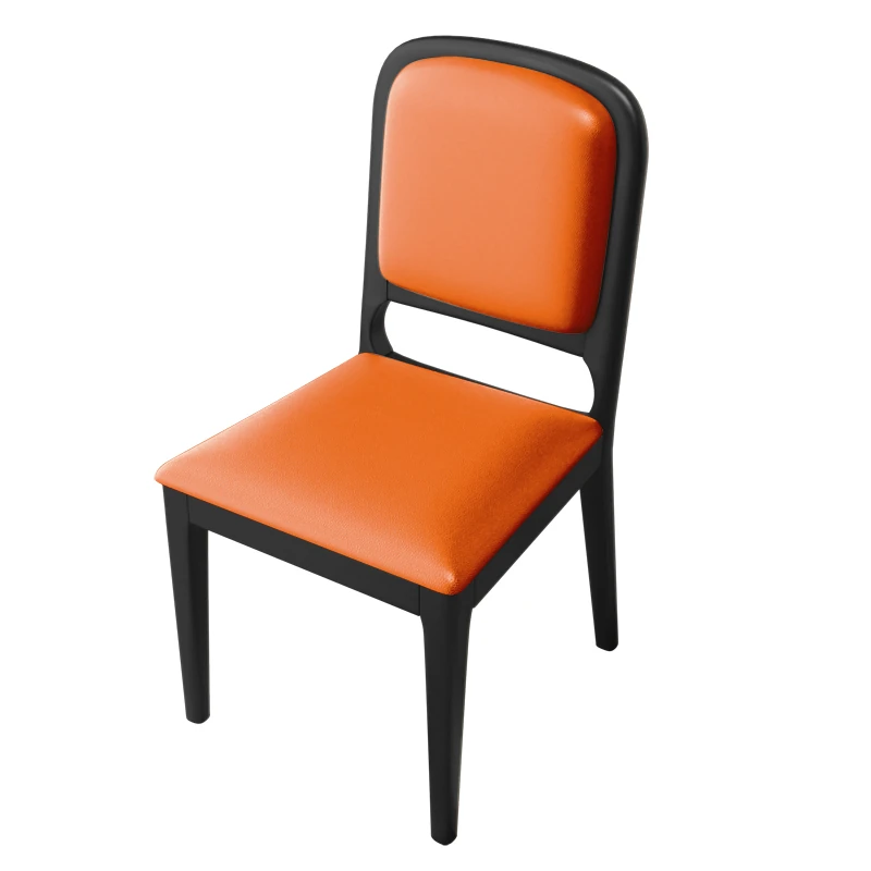 ブラックの椅子 オレンジ色のレザーソフトパック