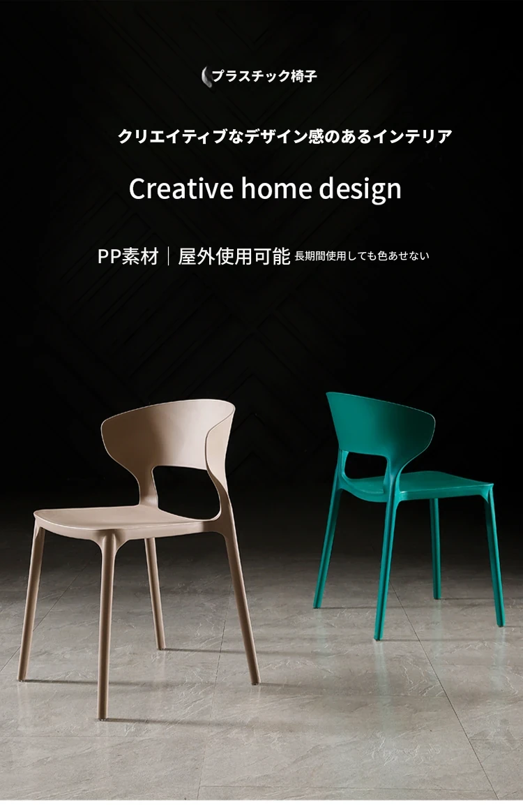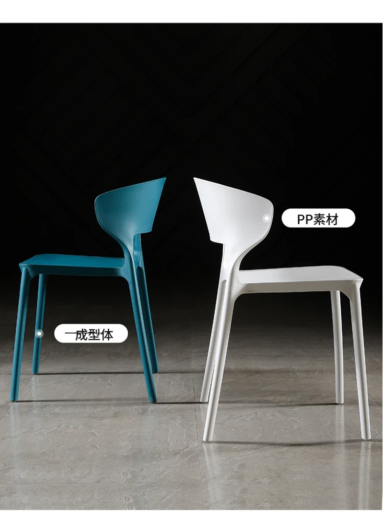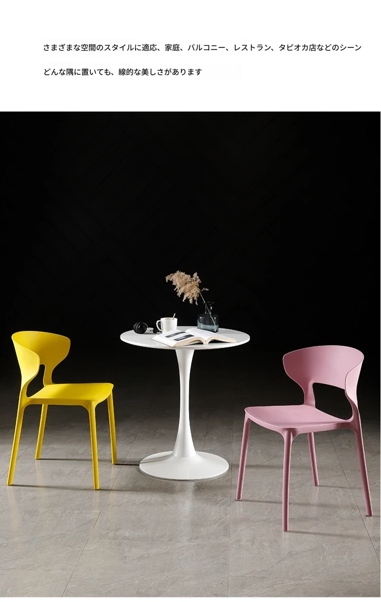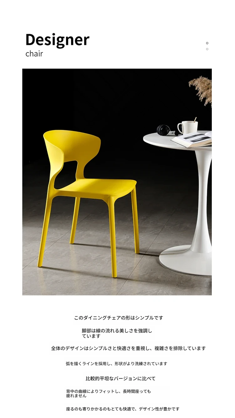 モダンでシンプルなプラスチック製の家庭用ダイニングチェア!スタッキング可能で、おしゃれなデザインのカウホーンチェア。快適な背もたれ付き、スペースを有効活用できる理想的な椅子です。あなたのダイニングをスタイリッシュに彩ります!
