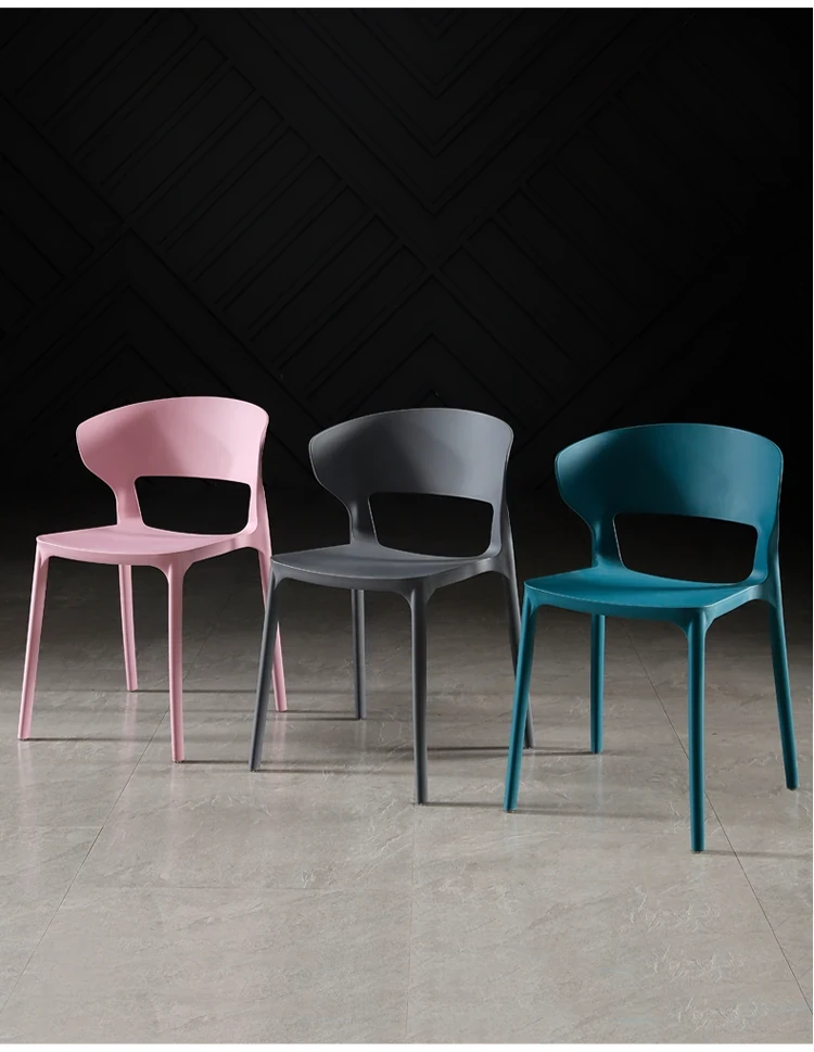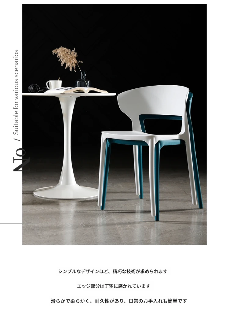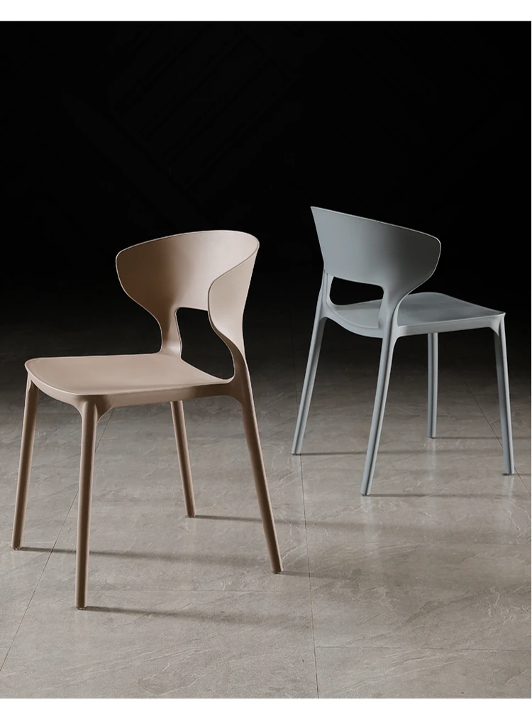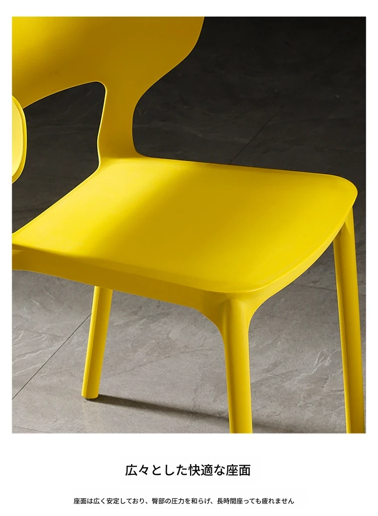モダンでシンプルなプラスチック製の家庭用ダイニングチェア!スタッキング可能で、おしゃれなデザインのカウホーンチェア。快適な背もたれ付き、スペースを有効活用できる理想的な椅子です。あなたのダイニングをスタイリッシュに彩ります!