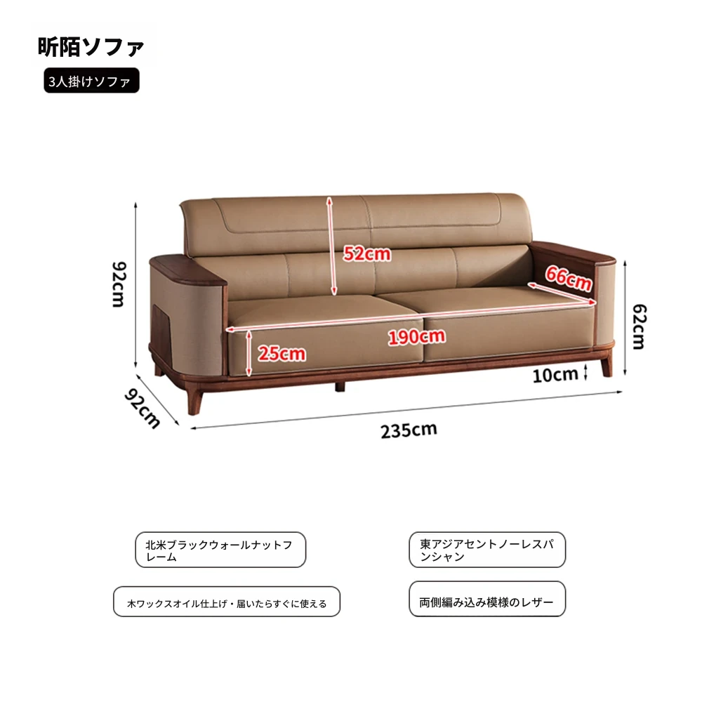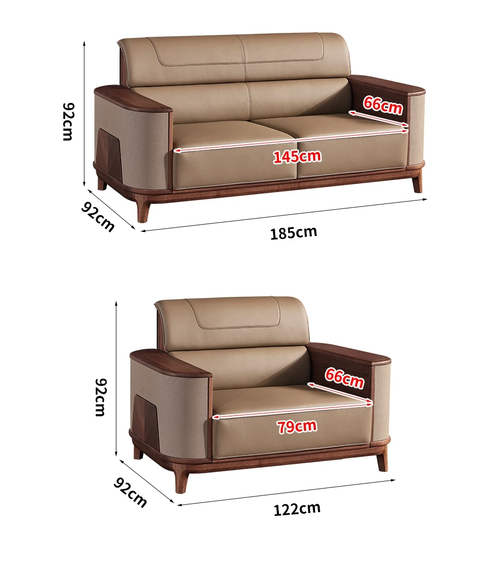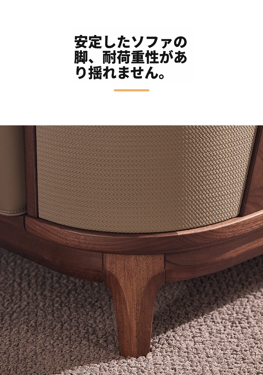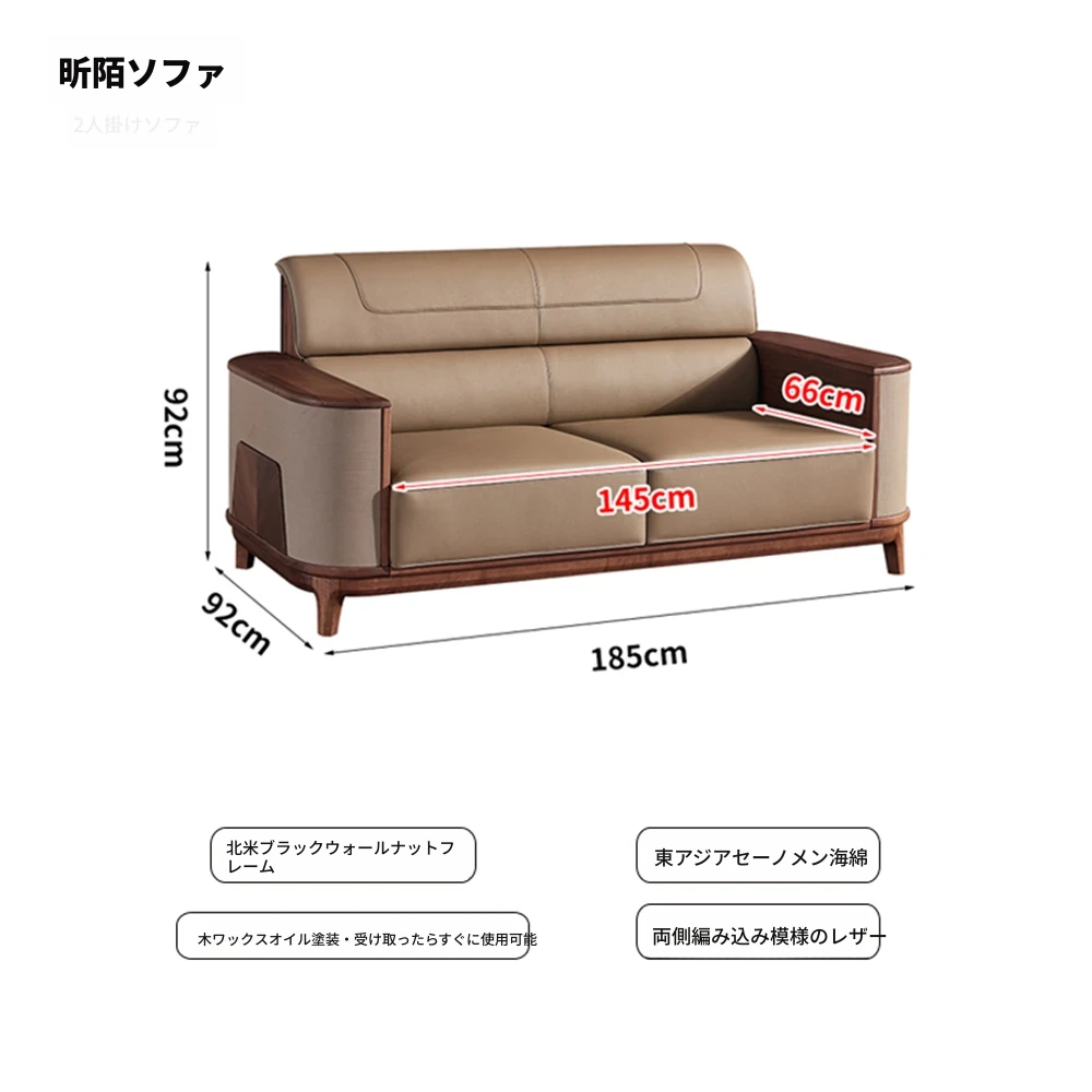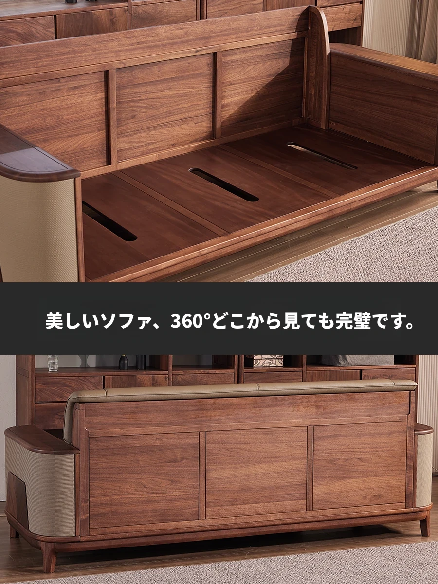 北米産ブラックウォールナットのソファ|モダン中式レトロヴィラリビング用|本物の木と真皮を使用した豪華なソファセット!快適さと高級感を兼ね備えた一品。