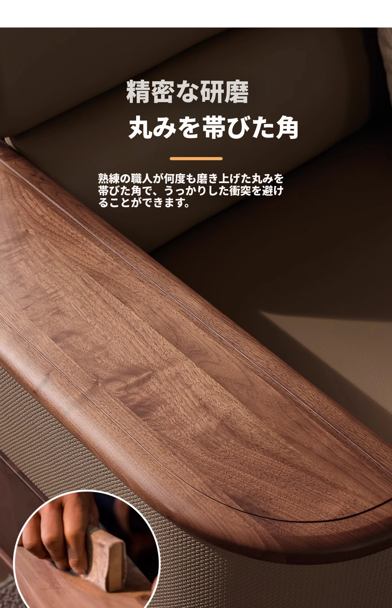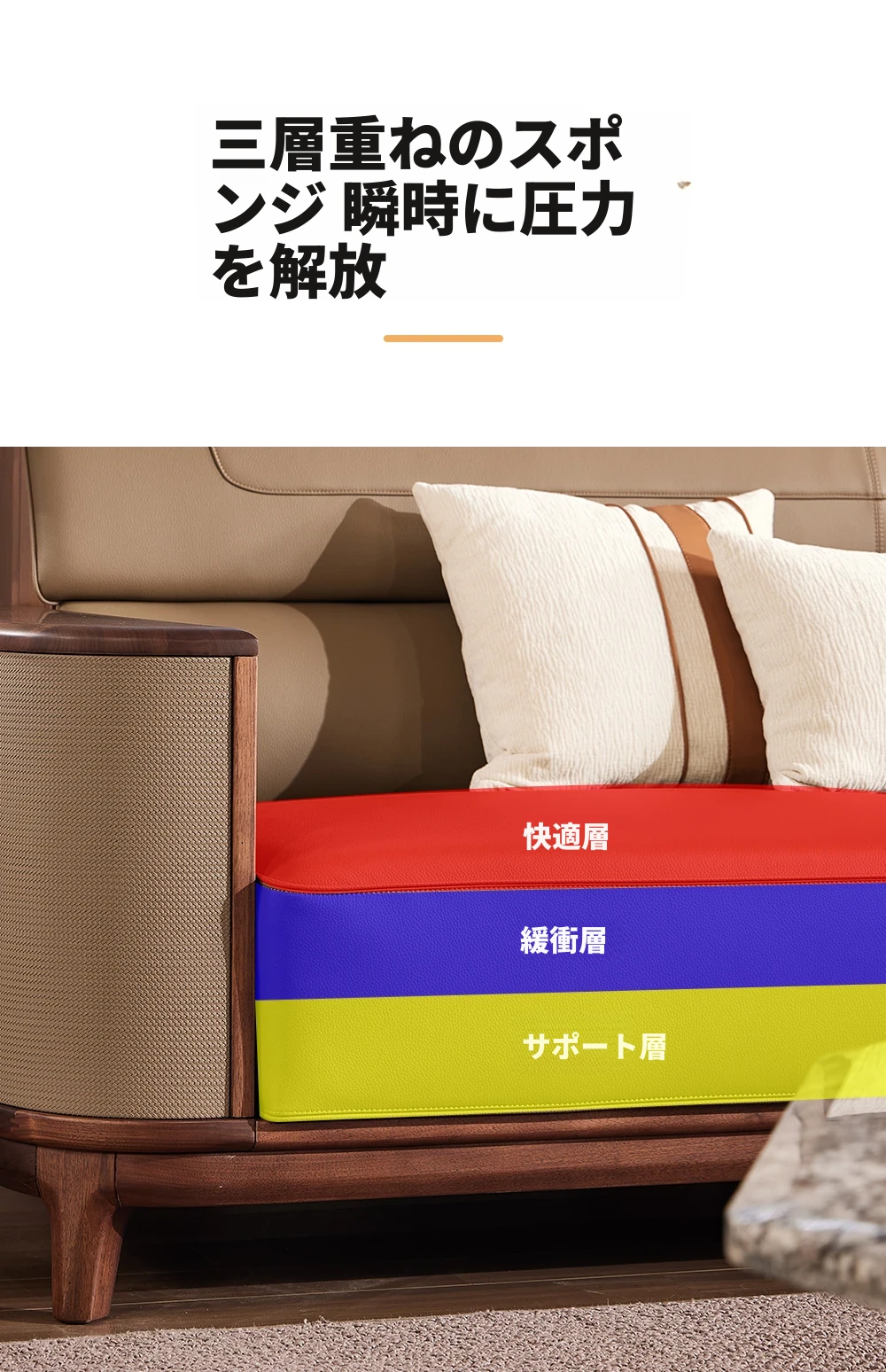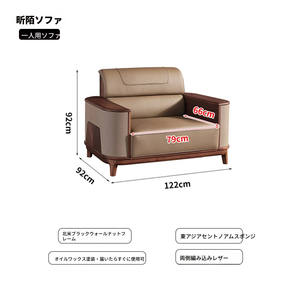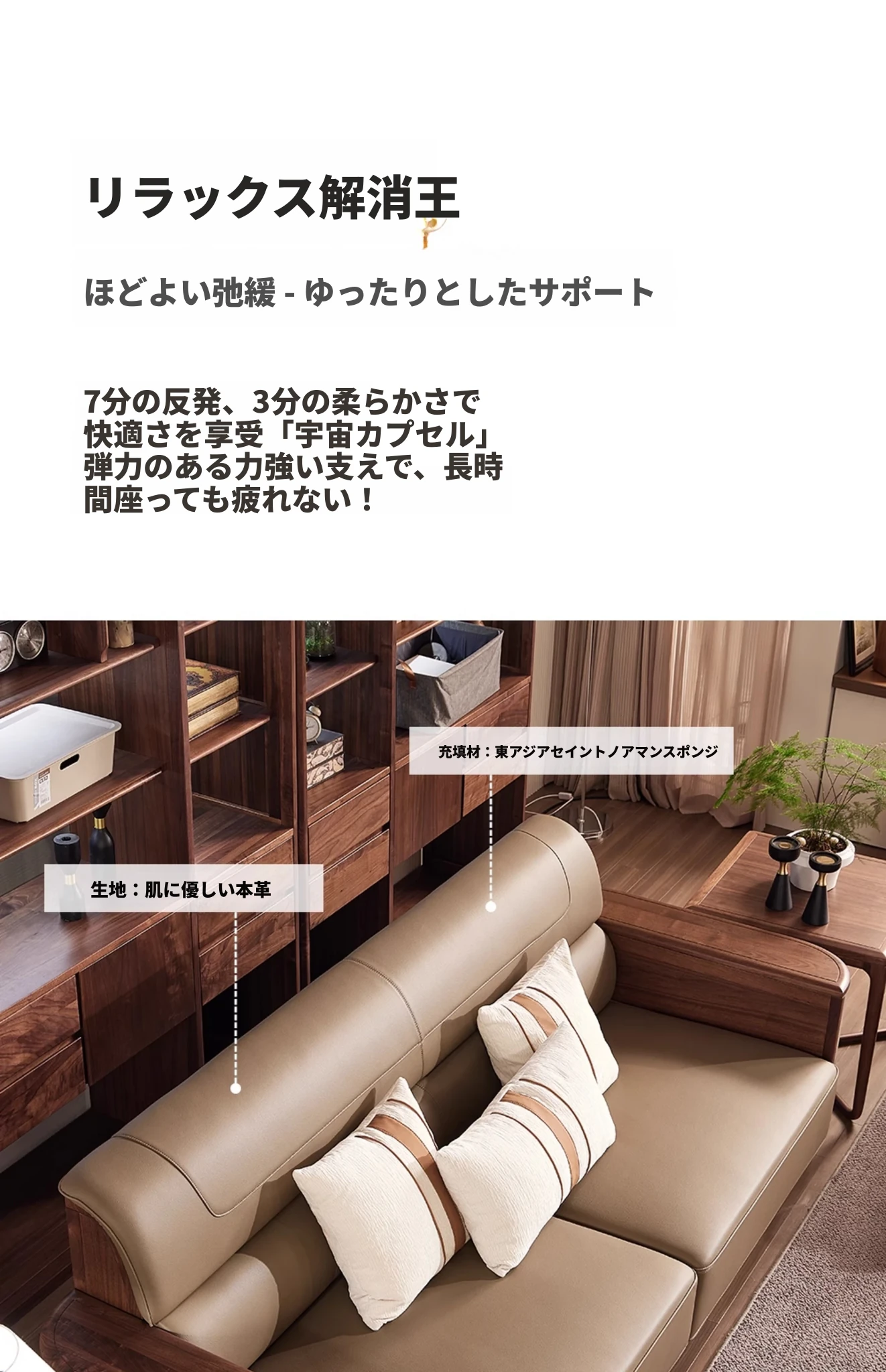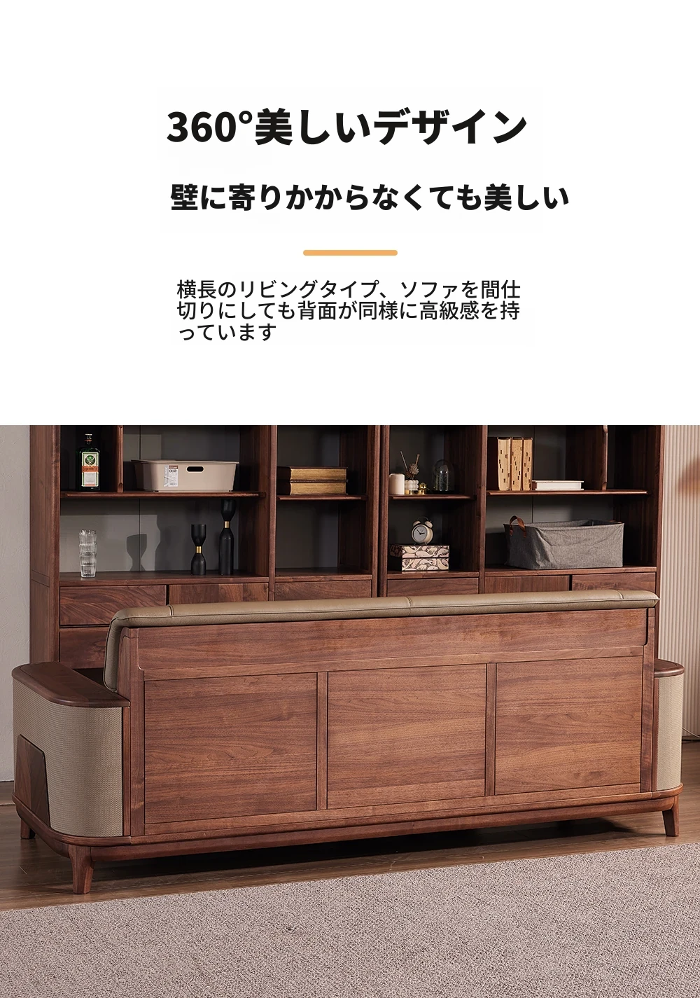 北米産ブラックウォールナットのソファ|モダン中式レトロヴィラリビング用|本物の木と真皮を使用した豪華なソファセット!快適さと高級感を兼ね備えた一品。