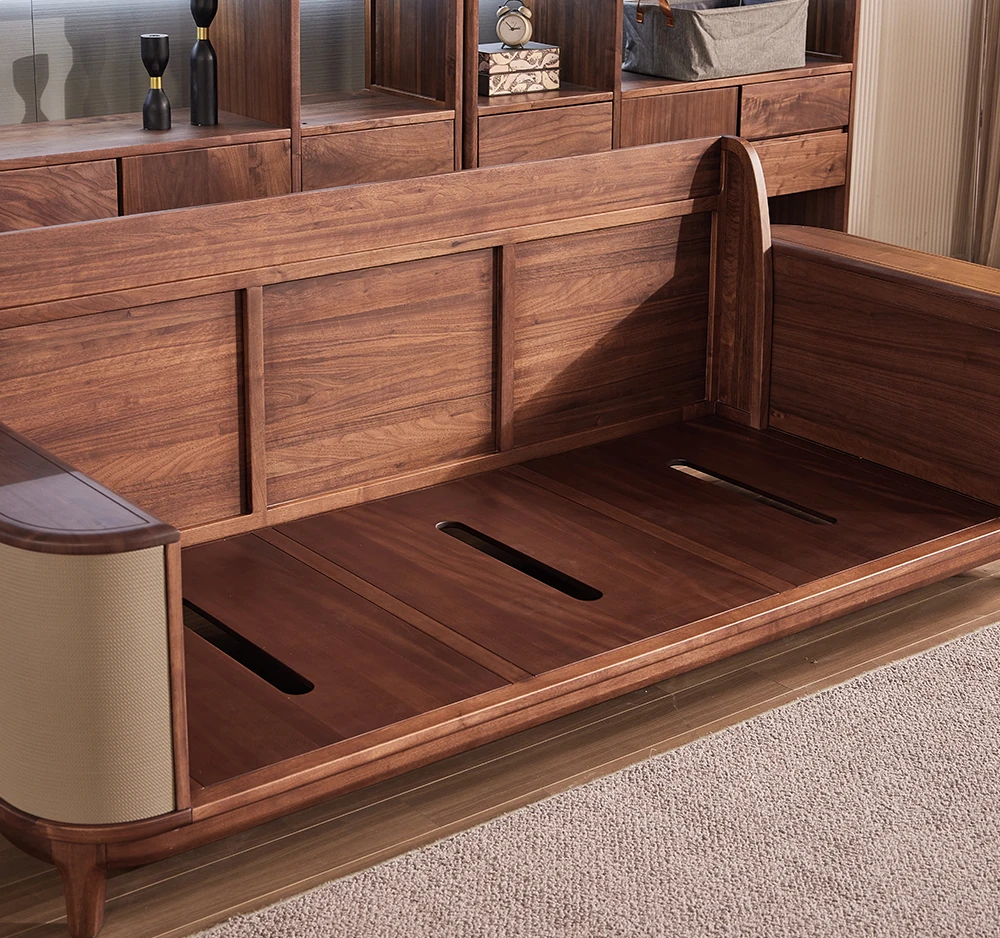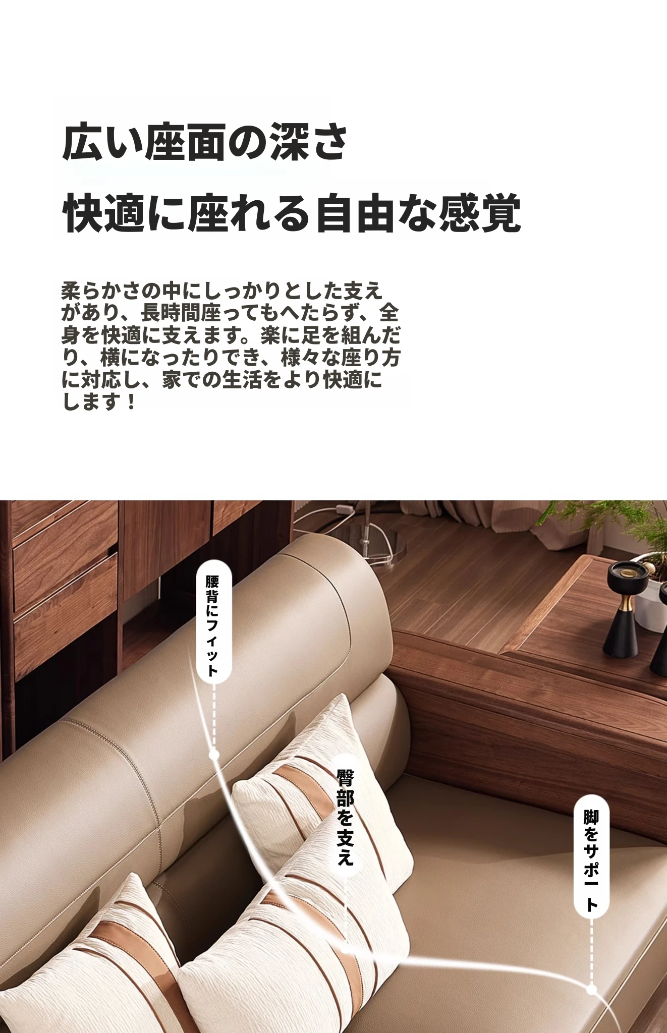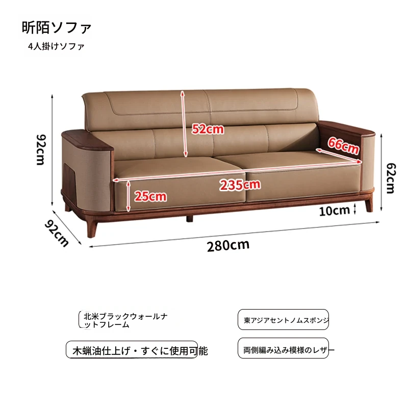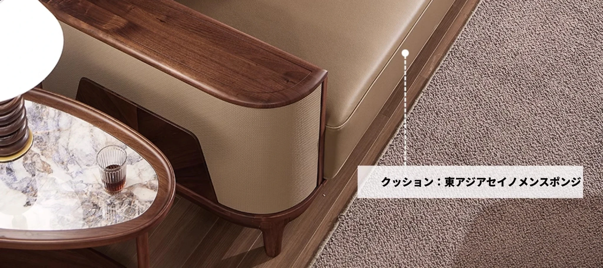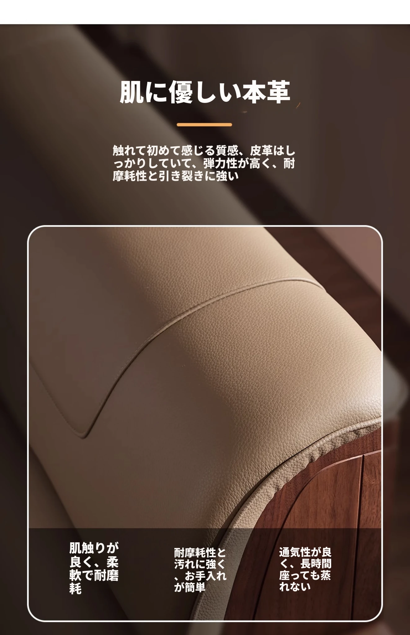 北米産ブラックウォールナットのソファ|モダン中式レトロヴィラリビング用|本物の木と真皮を使用した豪華なソファセット!快適さと高級感を兼ね備えた一品。