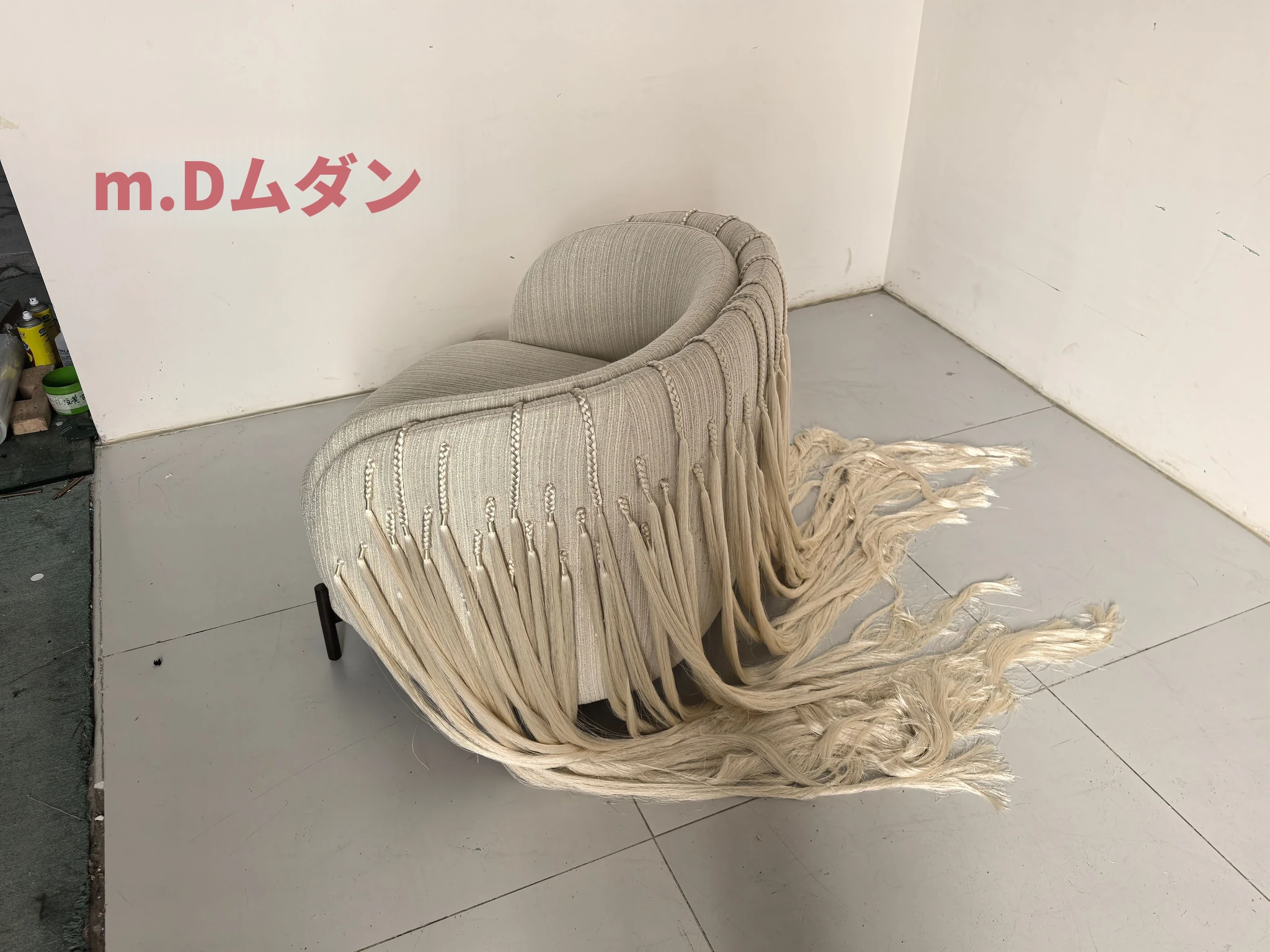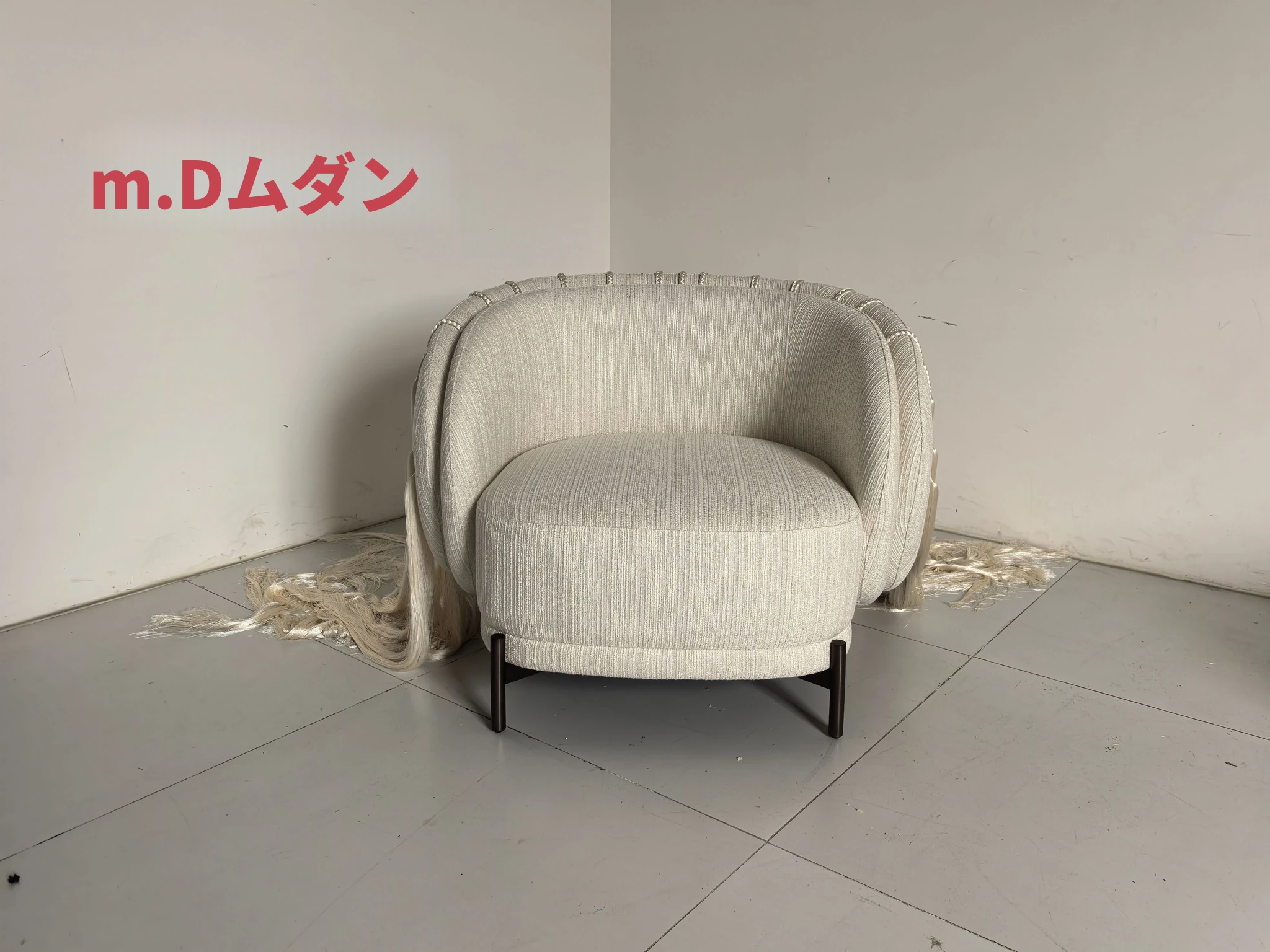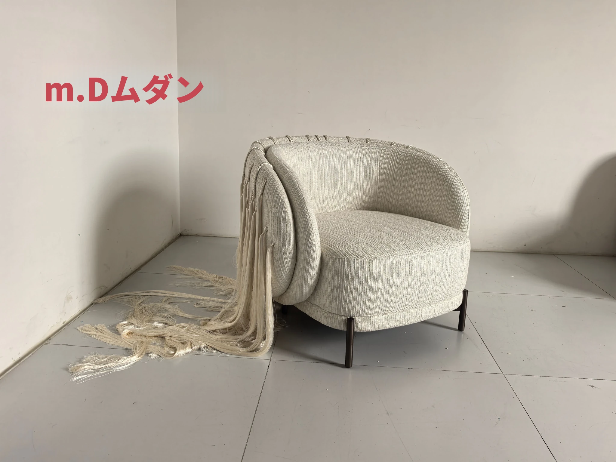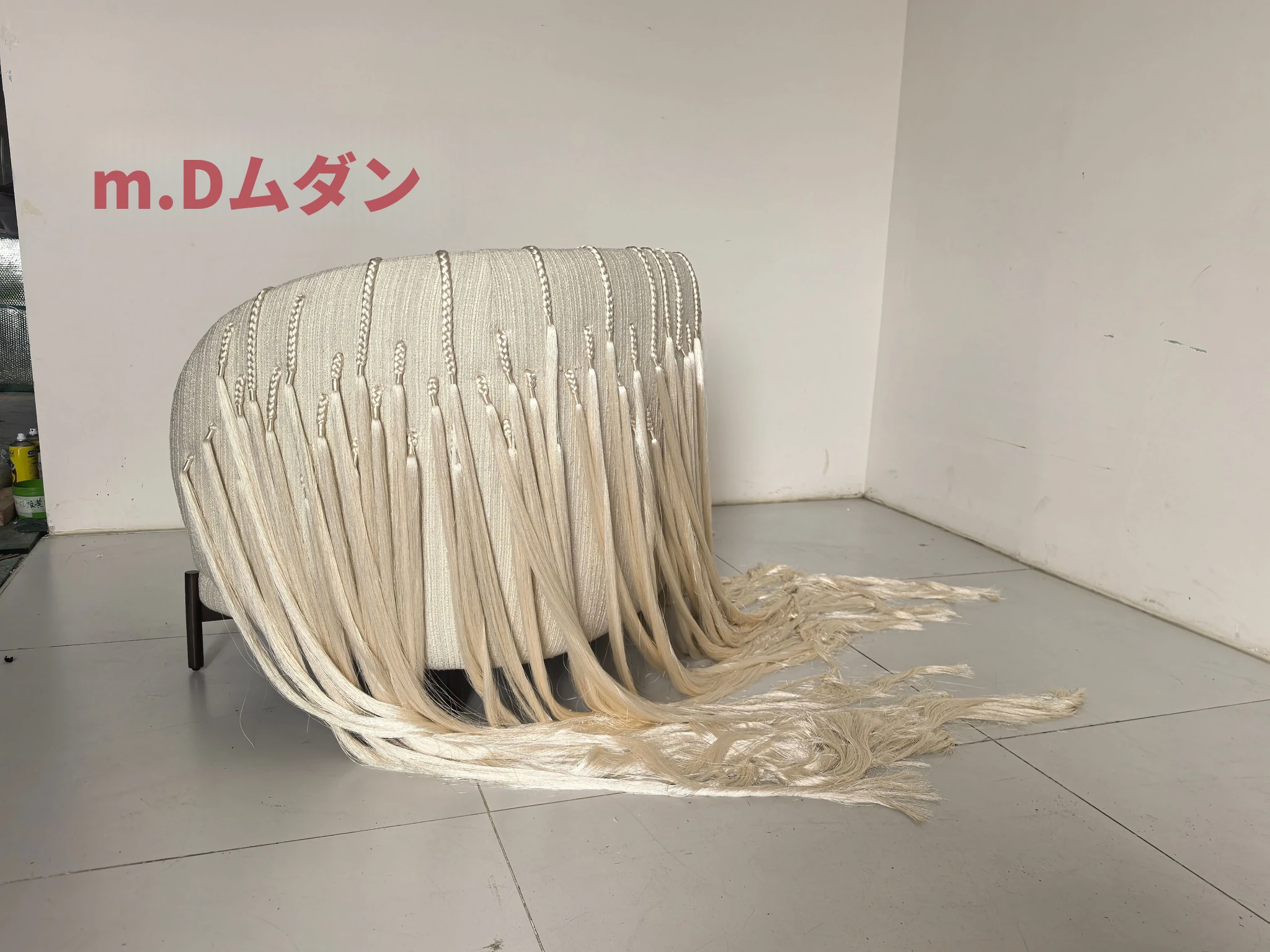 ムダン家具デザイナーによる中古風の侘び寂びスタイル、手作りのアートワンシーターソファー。ユニークな小さな編み込みデザインで、リラックスしたひと時を提供します。どんなインテリアにもマッチし、心地よい空間を演出します!