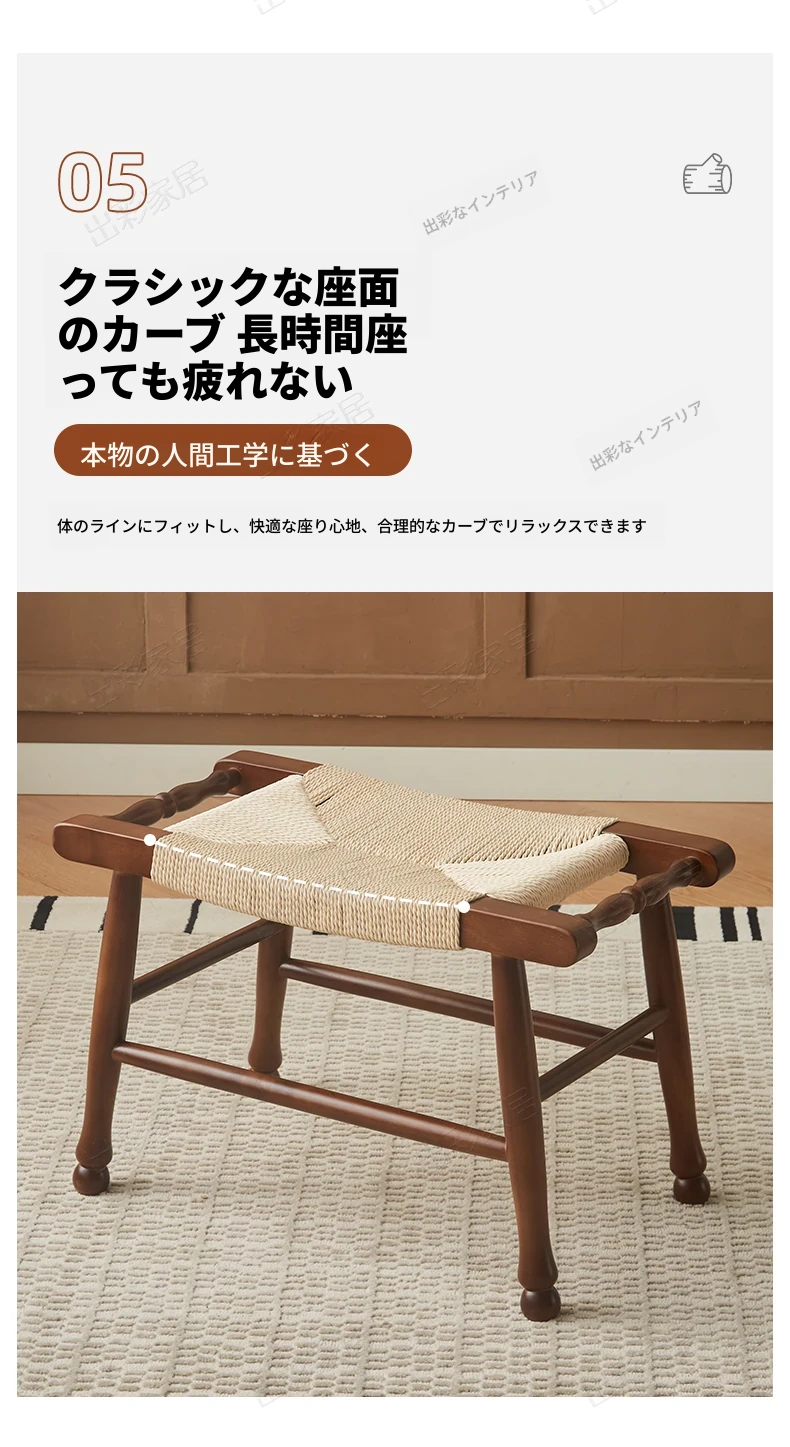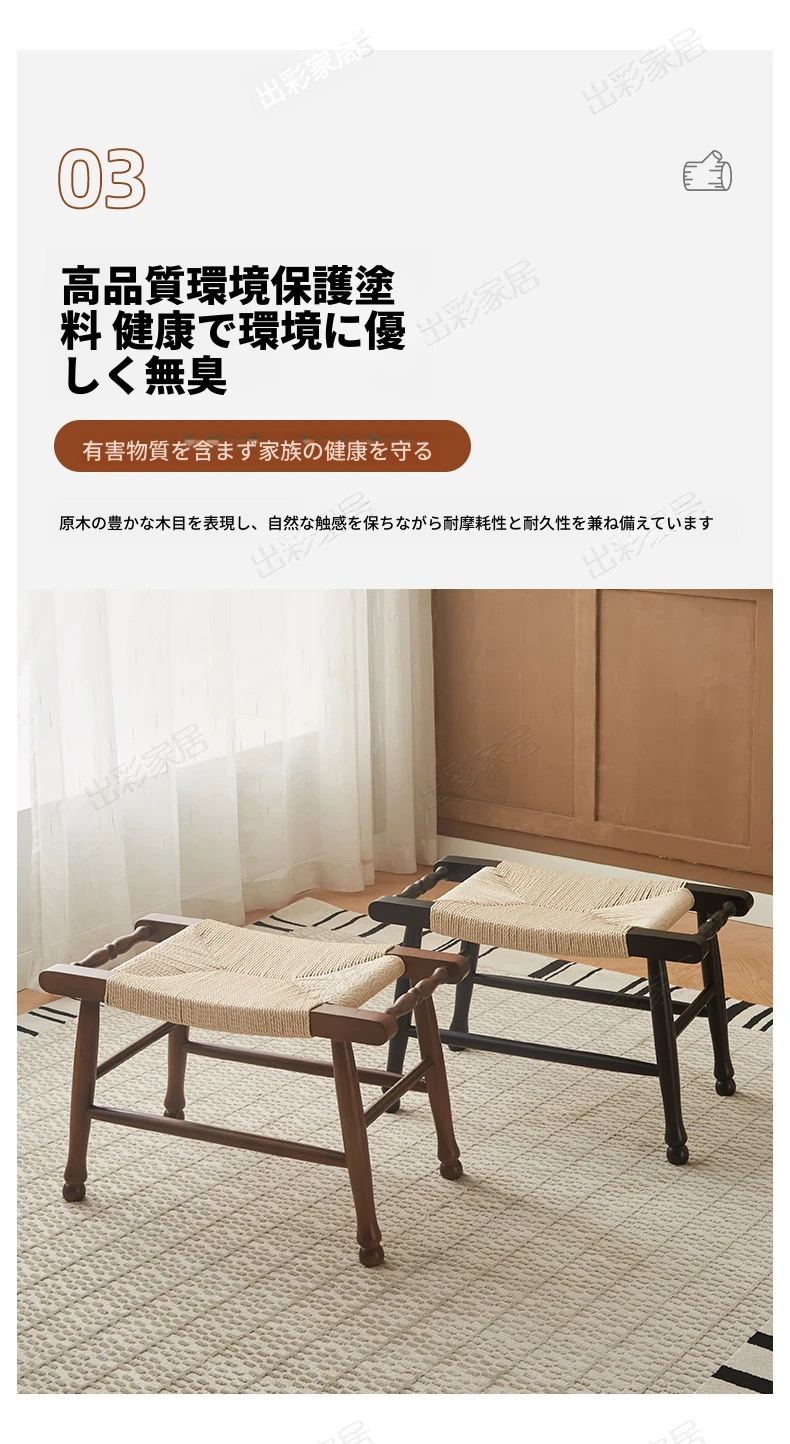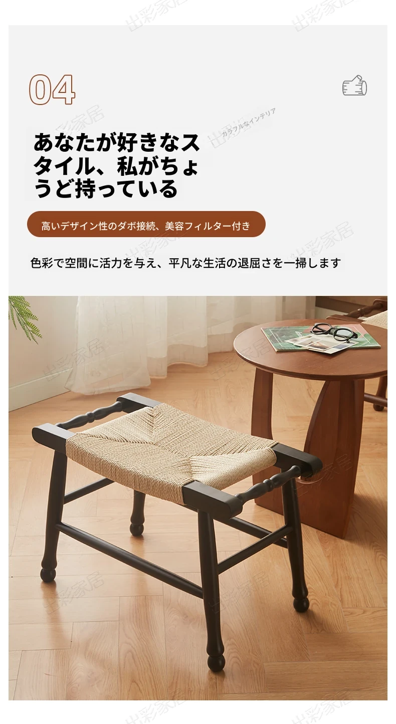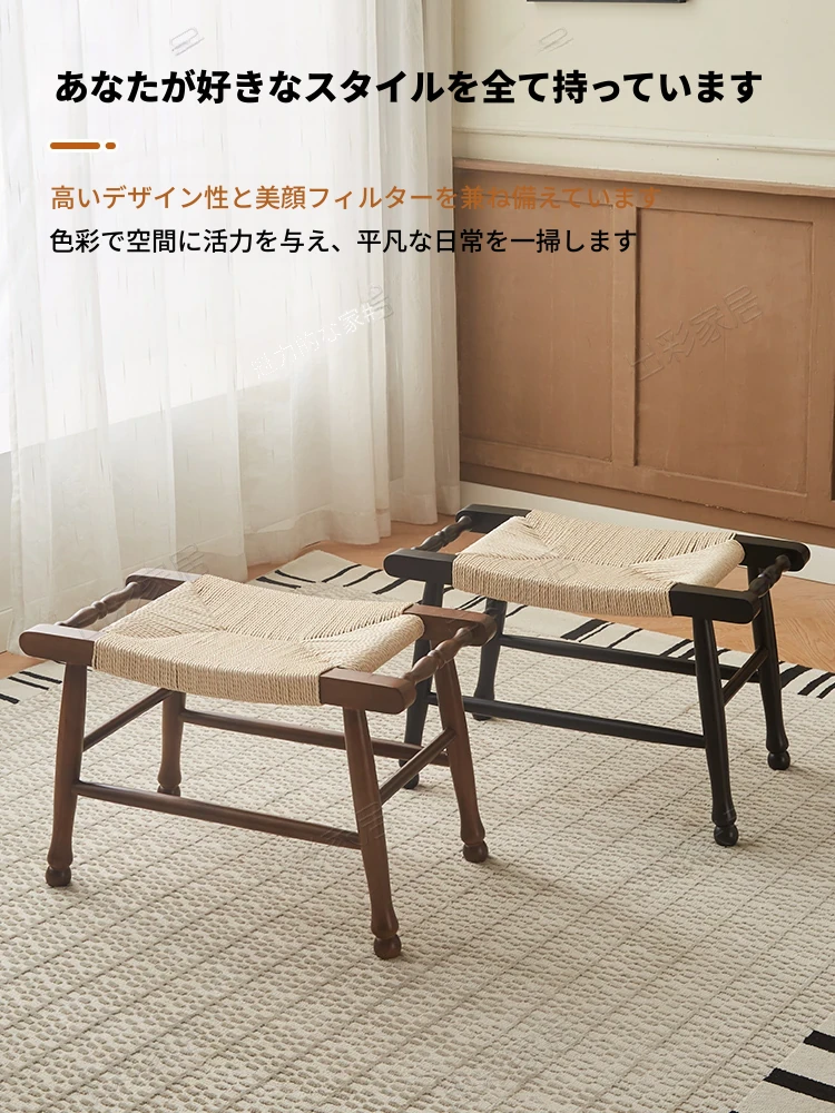 新作の侘寂スタイル!実木製の小さなスクエアスツール - リビング、玄関、寝室にぴったり!おしゃれな靴置きやベッドサイドのアクセントに。編み込みデザインで心地よいリラックス空間を演出します!