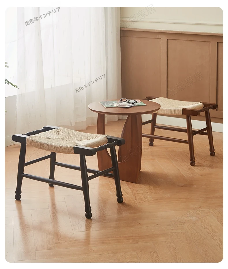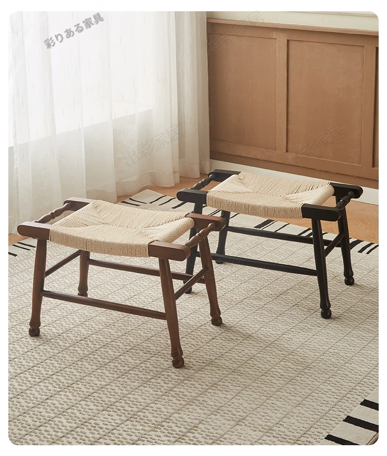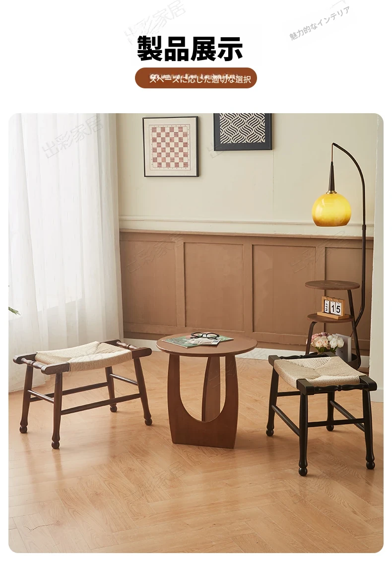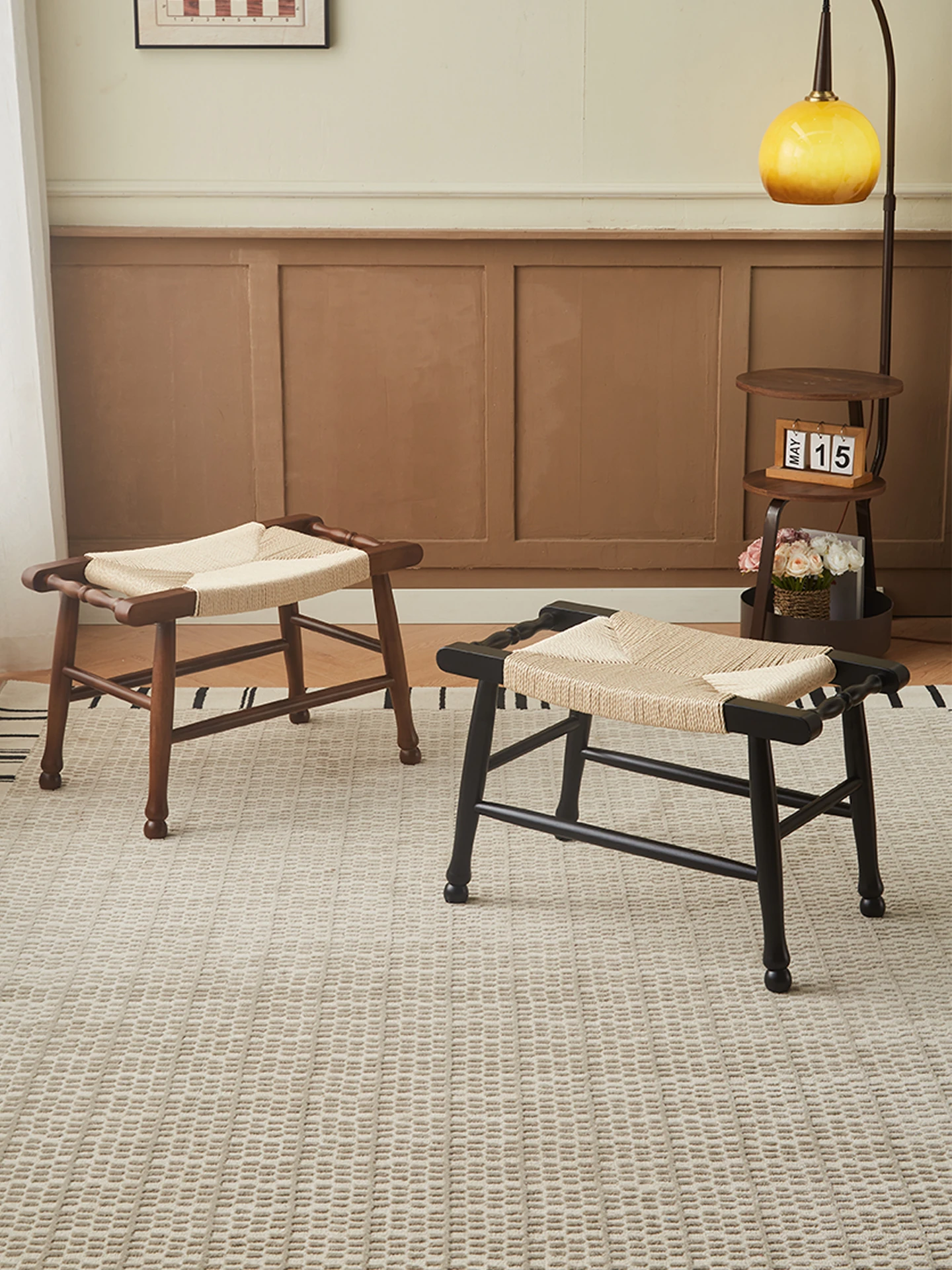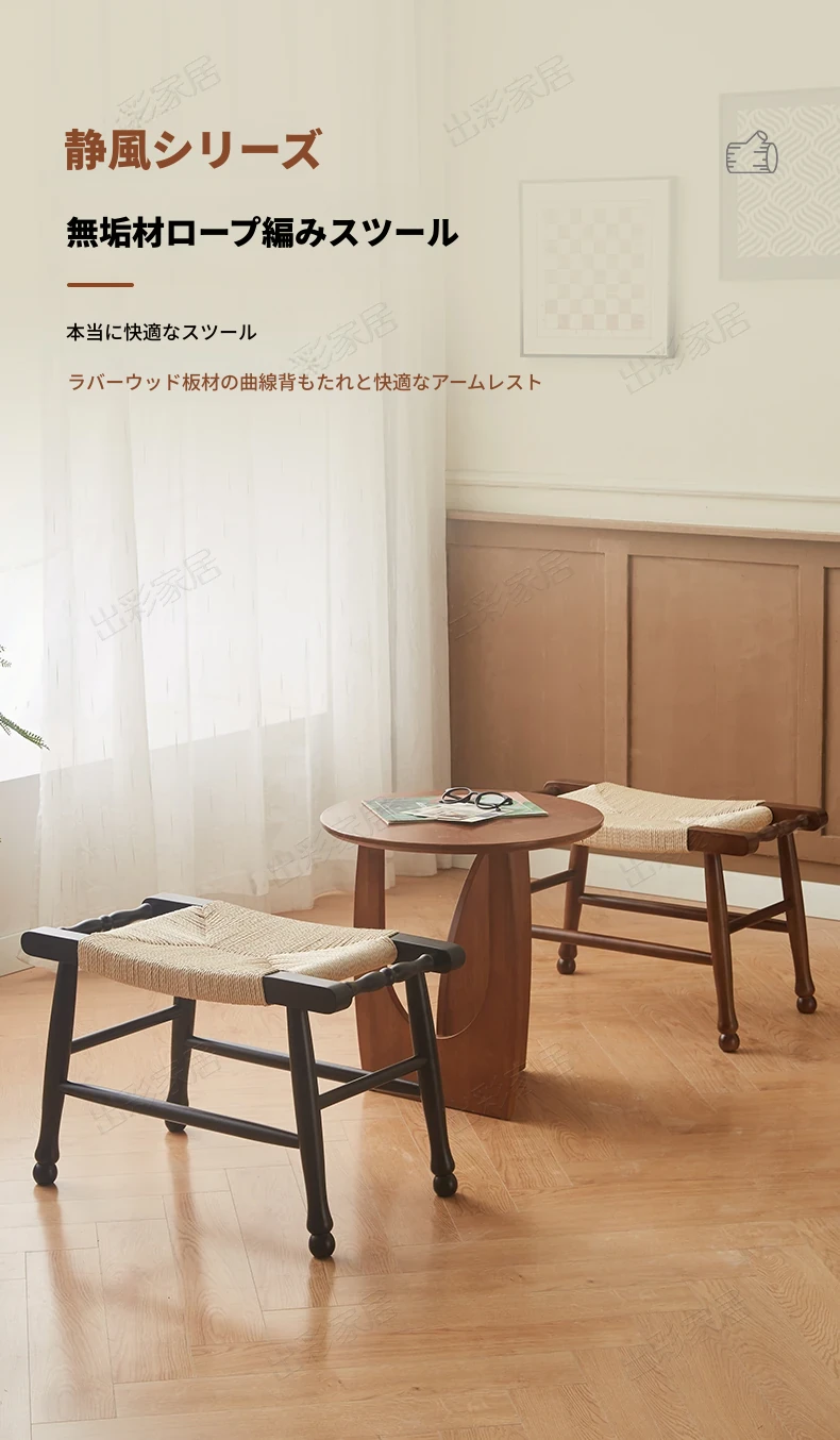 新作の侘寂スタイル!実木製の小さなスクエアスツール - リビング、玄関、寝室にぴったり!おしゃれな靴置きやベッドサイドのアクセントに。編み込みデザインで心地よいリラックス空間を演出します!