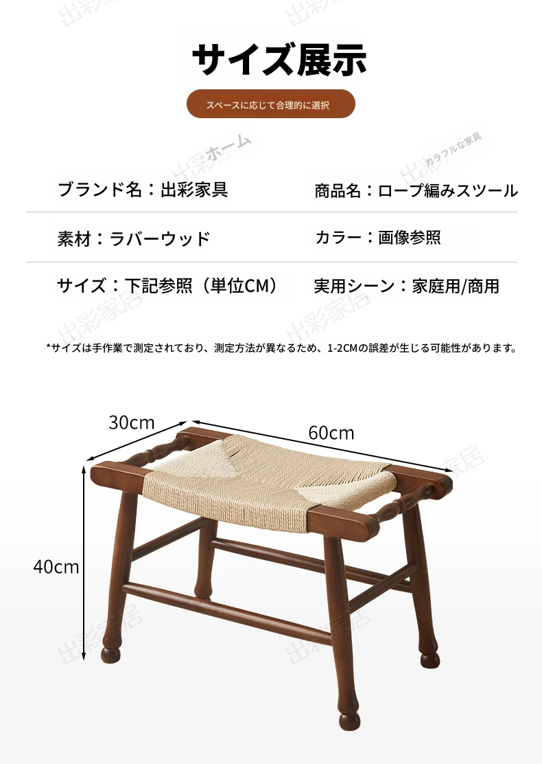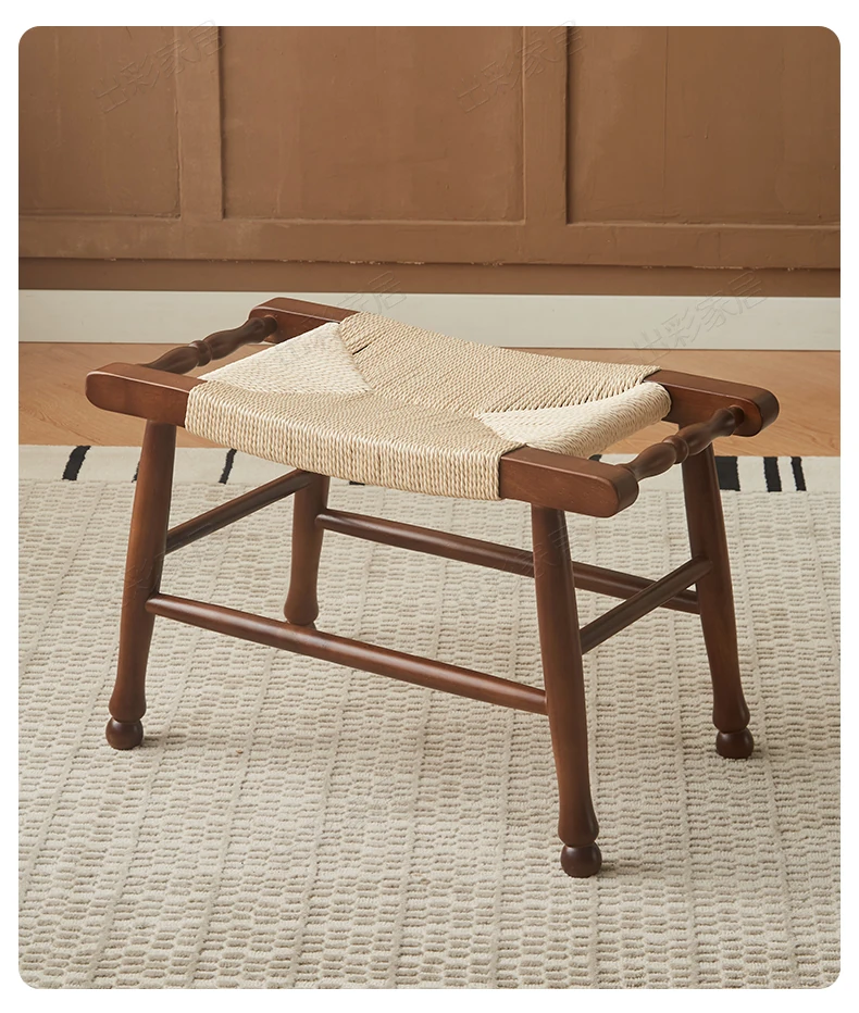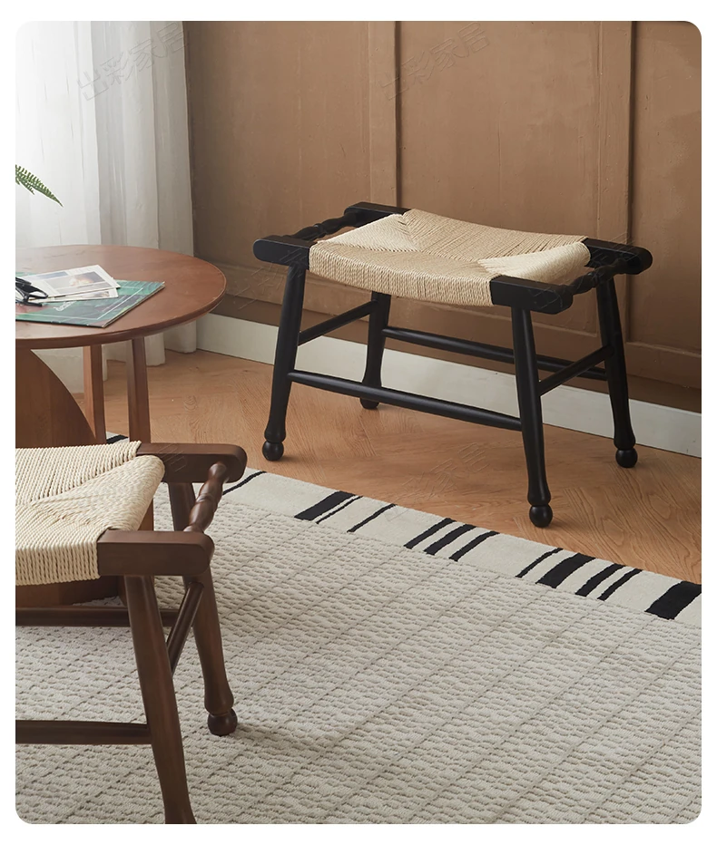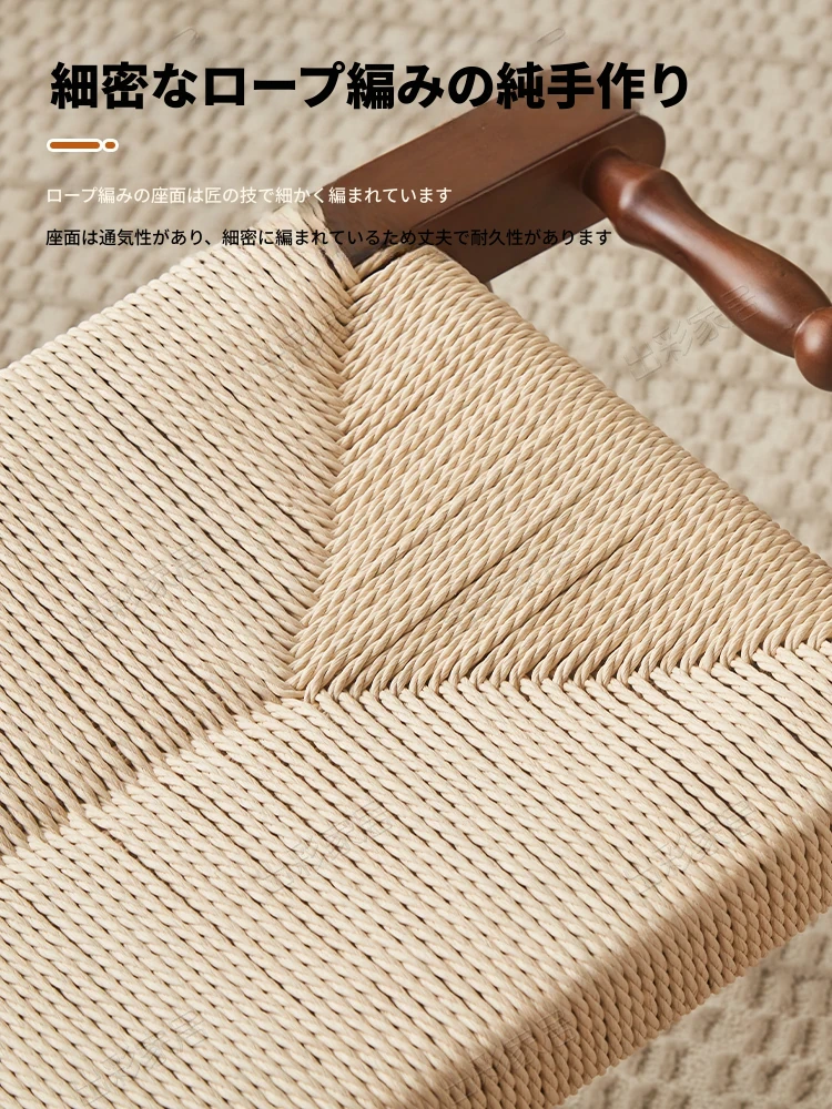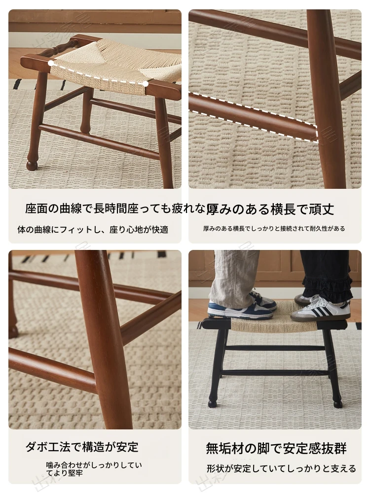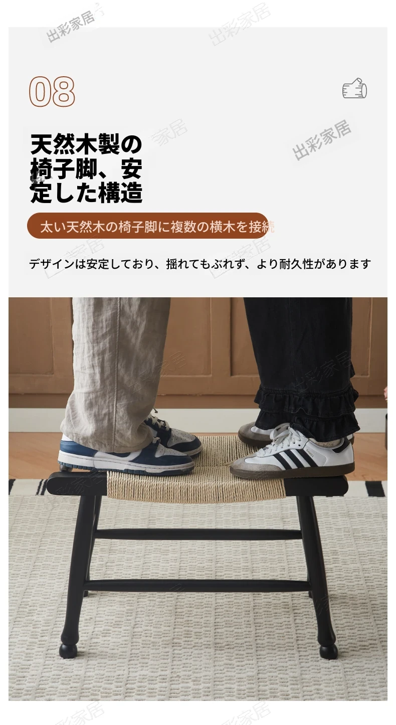 新作の侘寂スタイル!実木製の小さなスクエアスツール - リビング、玄関、寝室にぴったり!おしゃれな靴置きやベッドサイドのアクセントに。編み込みデザインで心地よいリラックス空間を演出します!
