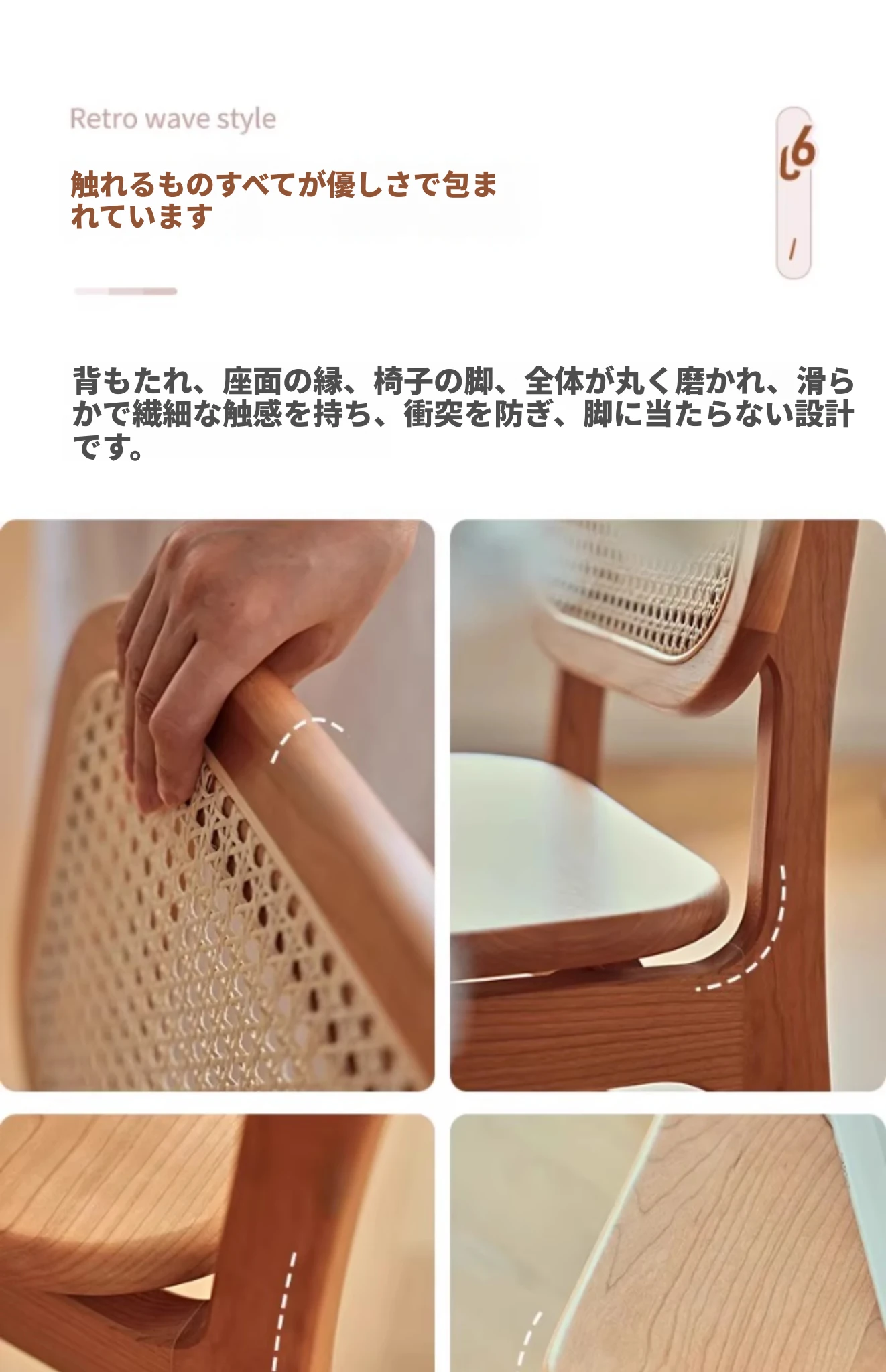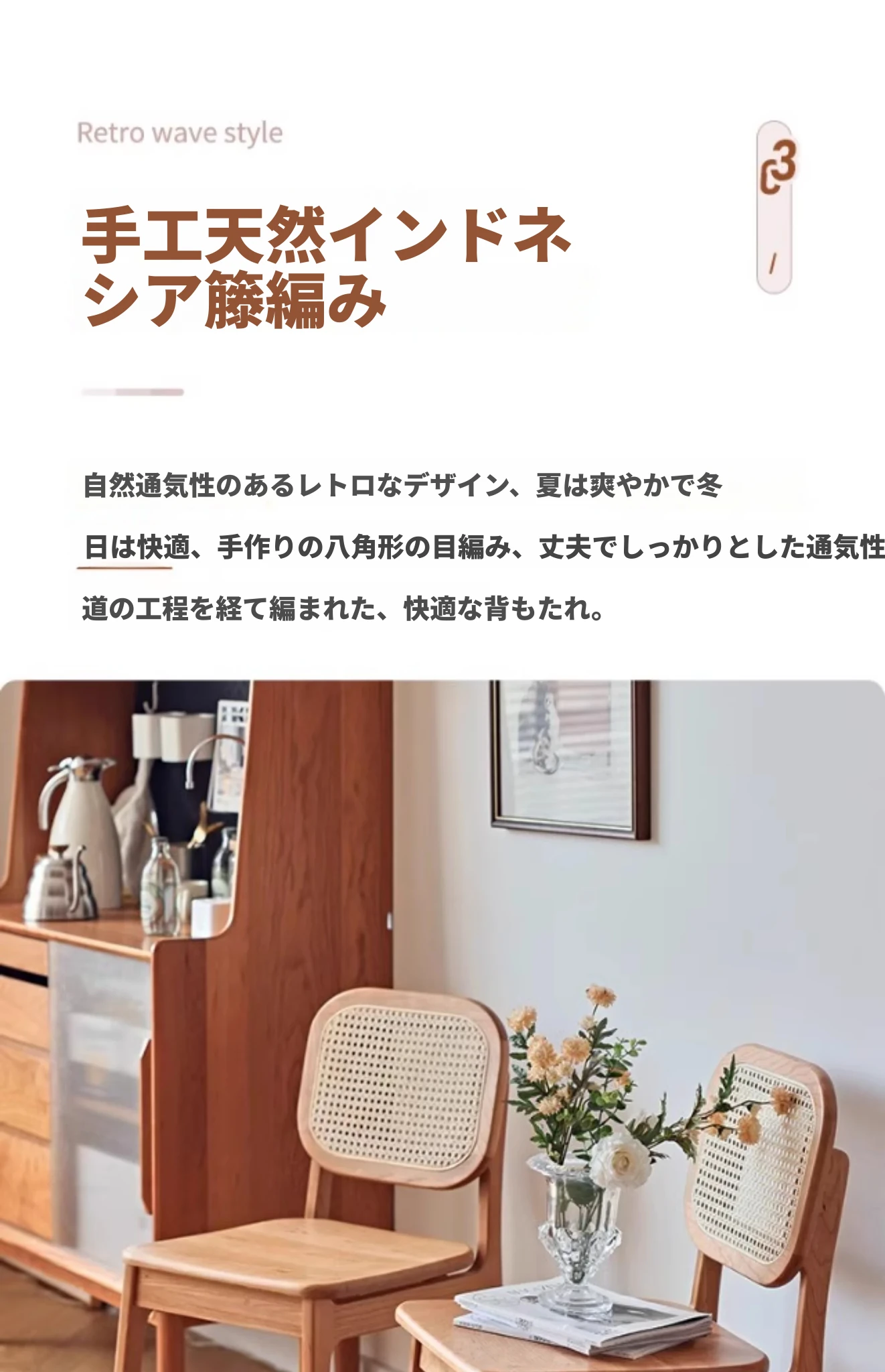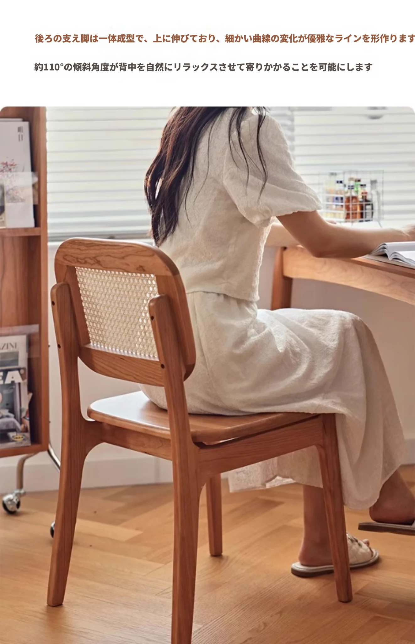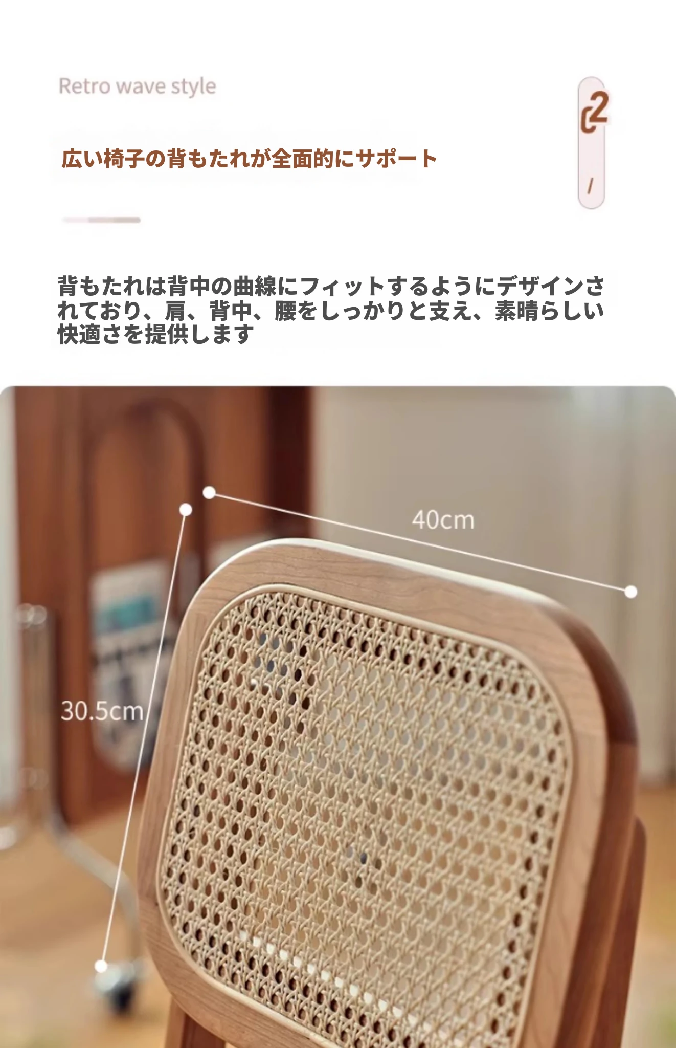北欧風の和モダン無垢材ダイニングチェア|リラックスできる背もたれ付き|おしゃれな編み込みデザイン|家庭用、レストラン、カフェに最適な快適な椅子!