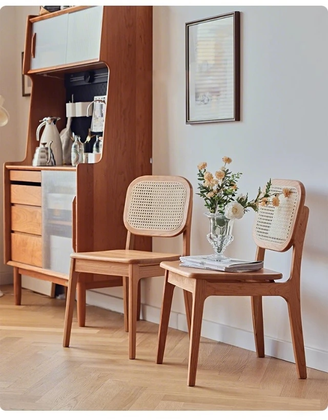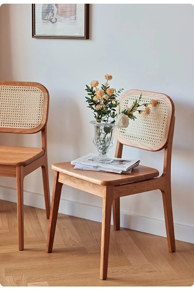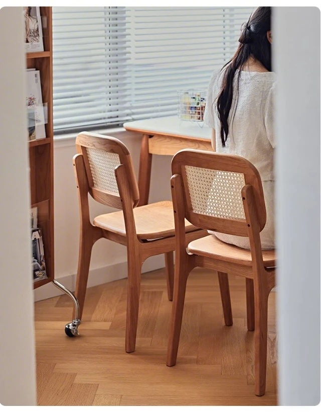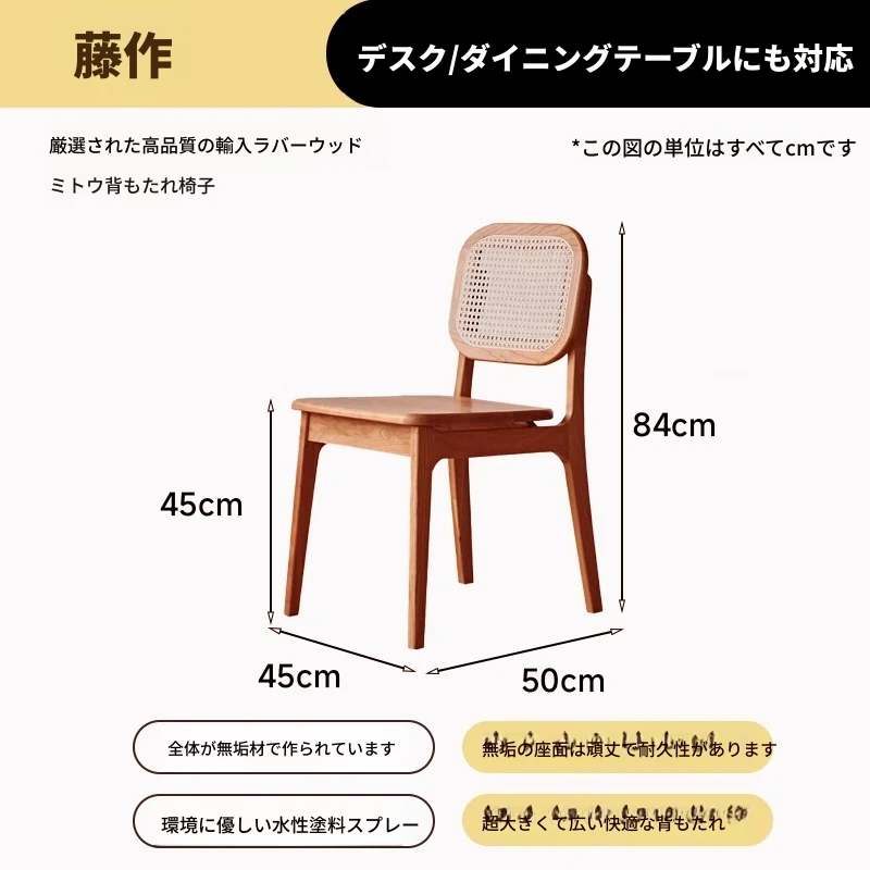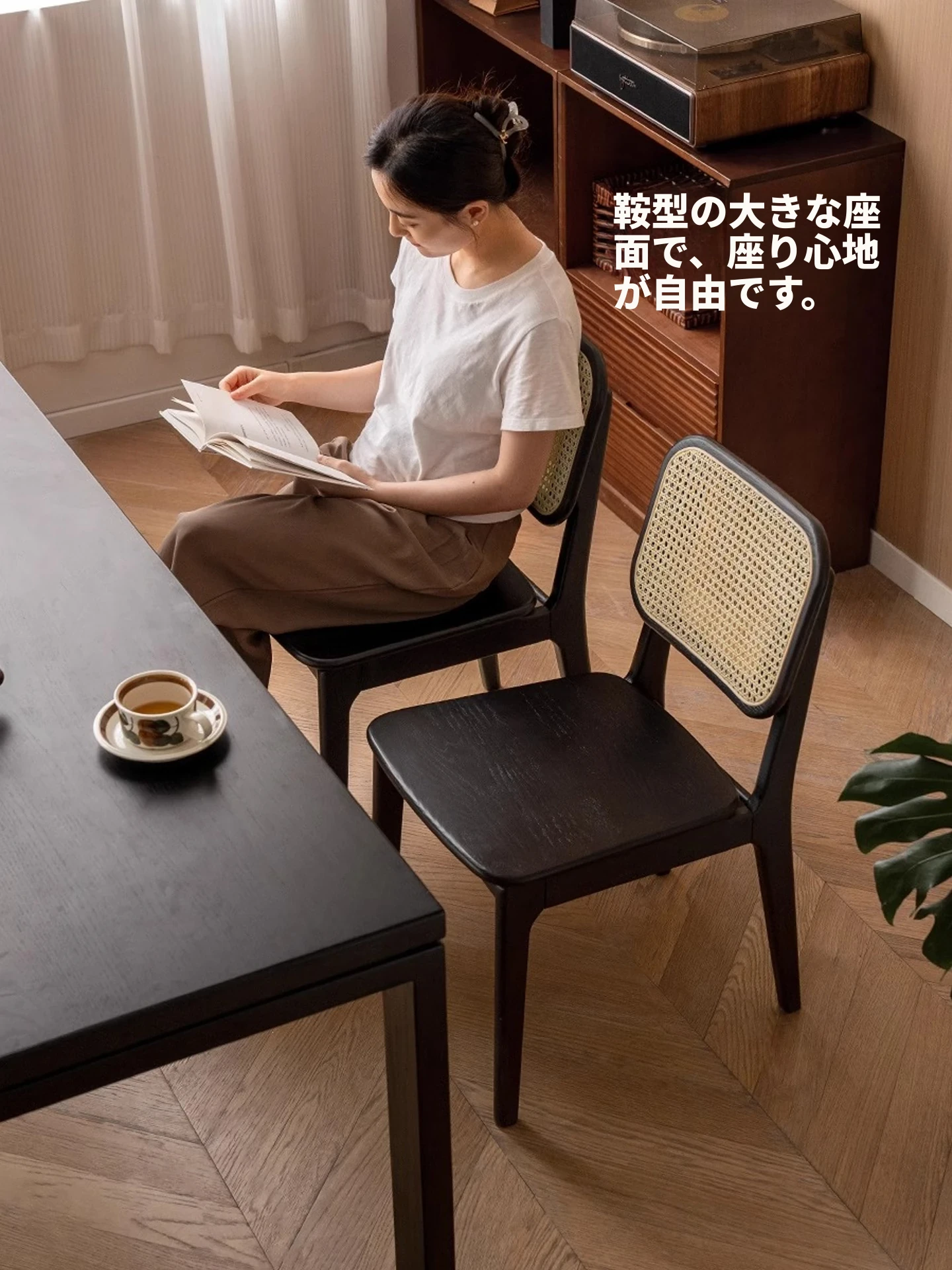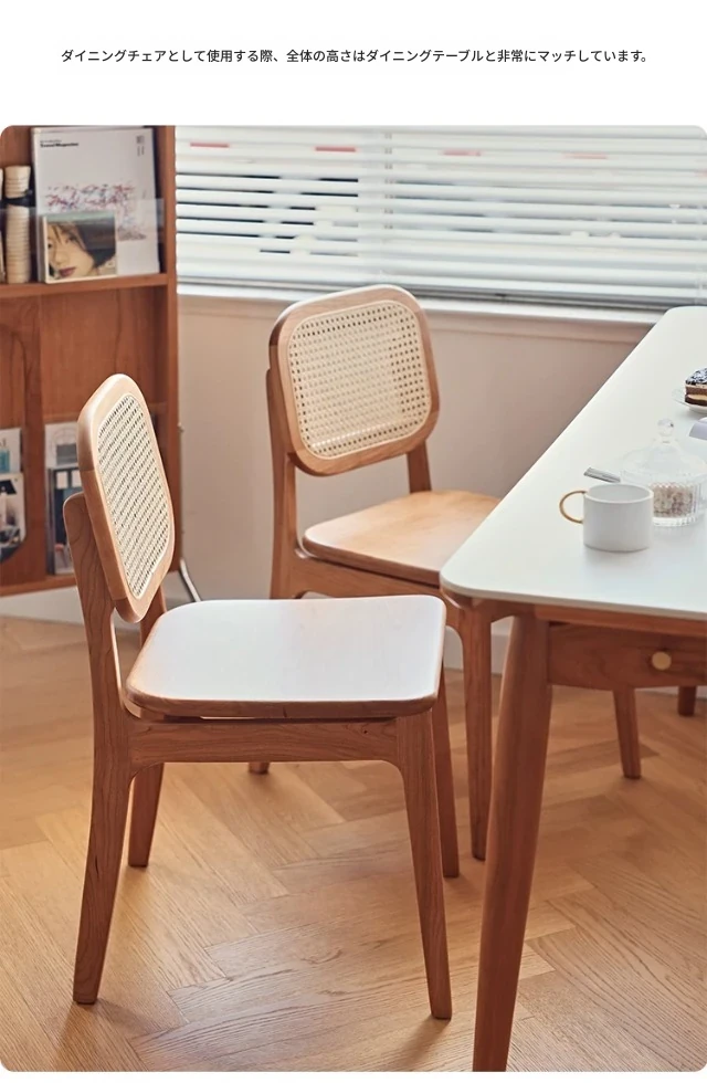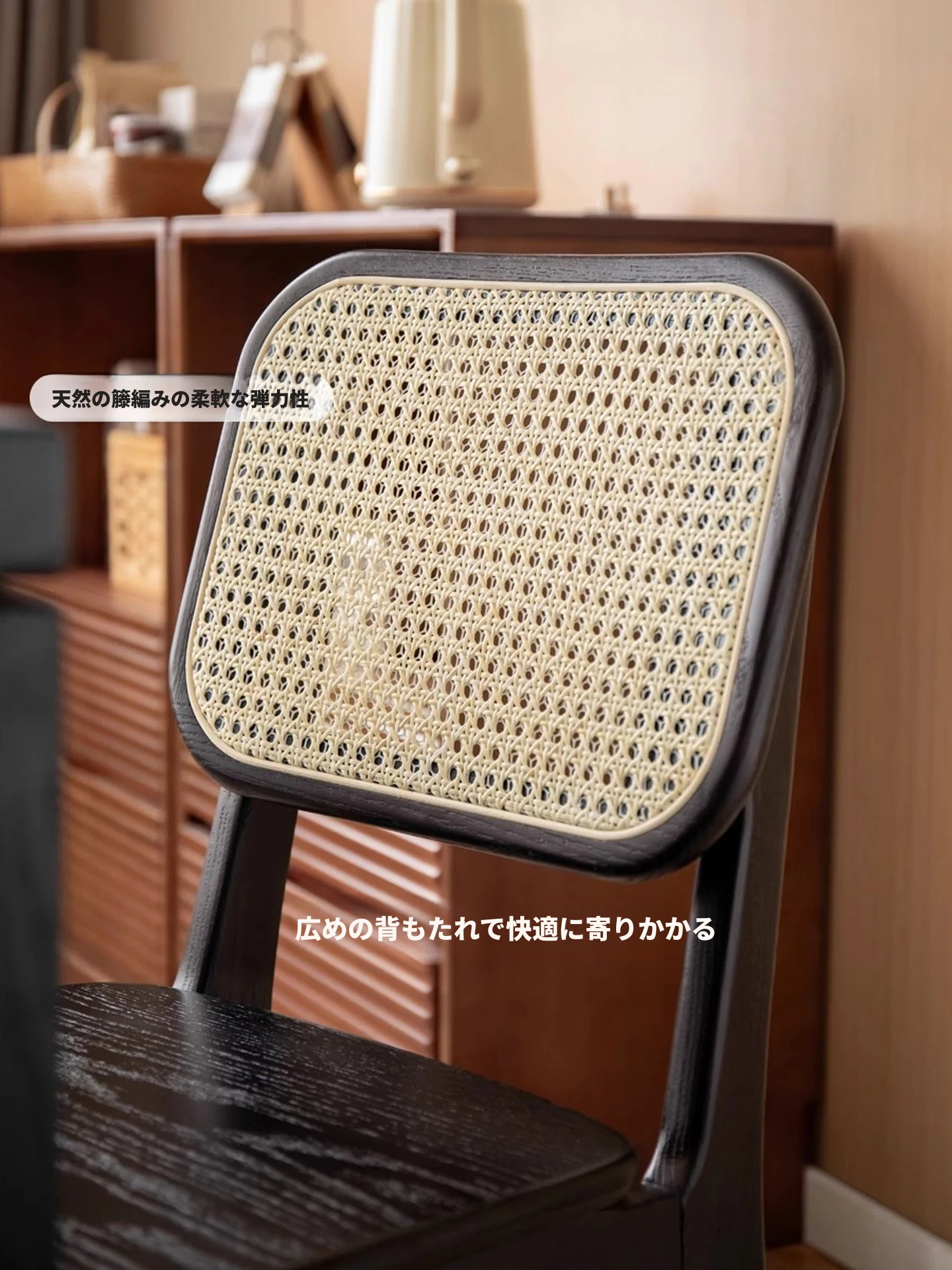 北欧風の和モダン無垢材ダイニングチェア|リラックスできる背もたれ付き|おしゃれな編み込みデザイン|家庭用、レストラン、カフェに最適な快適な椅子!