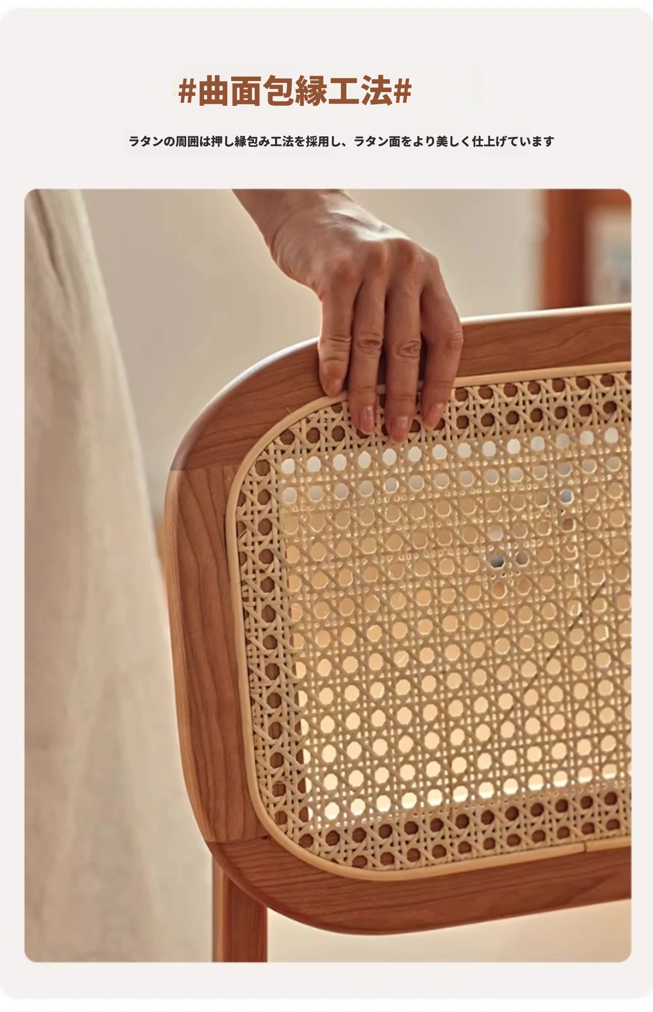 チャンディーガルチェア|無垢材使用の和モダンデザイン|民宿やレストランに最適|ホワイトアッシュ&ラタン編みの美しいコンビネーション|心地よい座り心地を実現したナチュラルウッドスツール