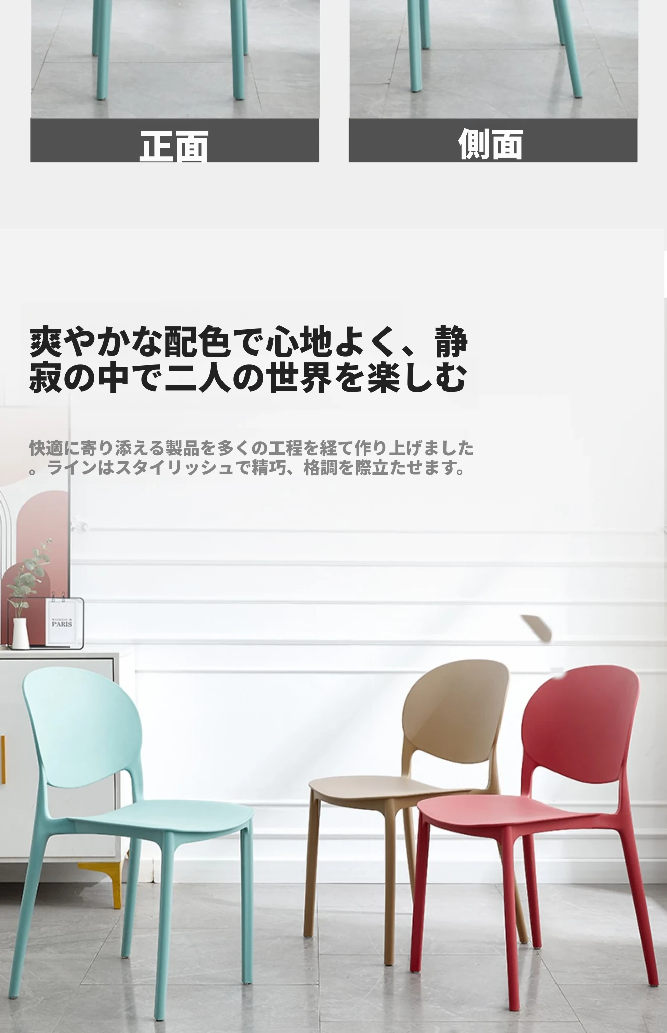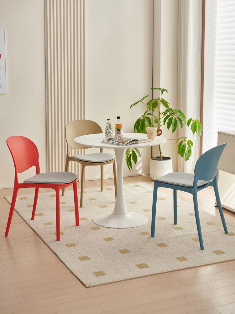 北欧スタイルのモダンでシンプルな厚手耐久プラスチックチェア | 家庭用背もたれ付きダイニングチェア | リラックスできるカフェチェア | インスタ映えするレストランチェア