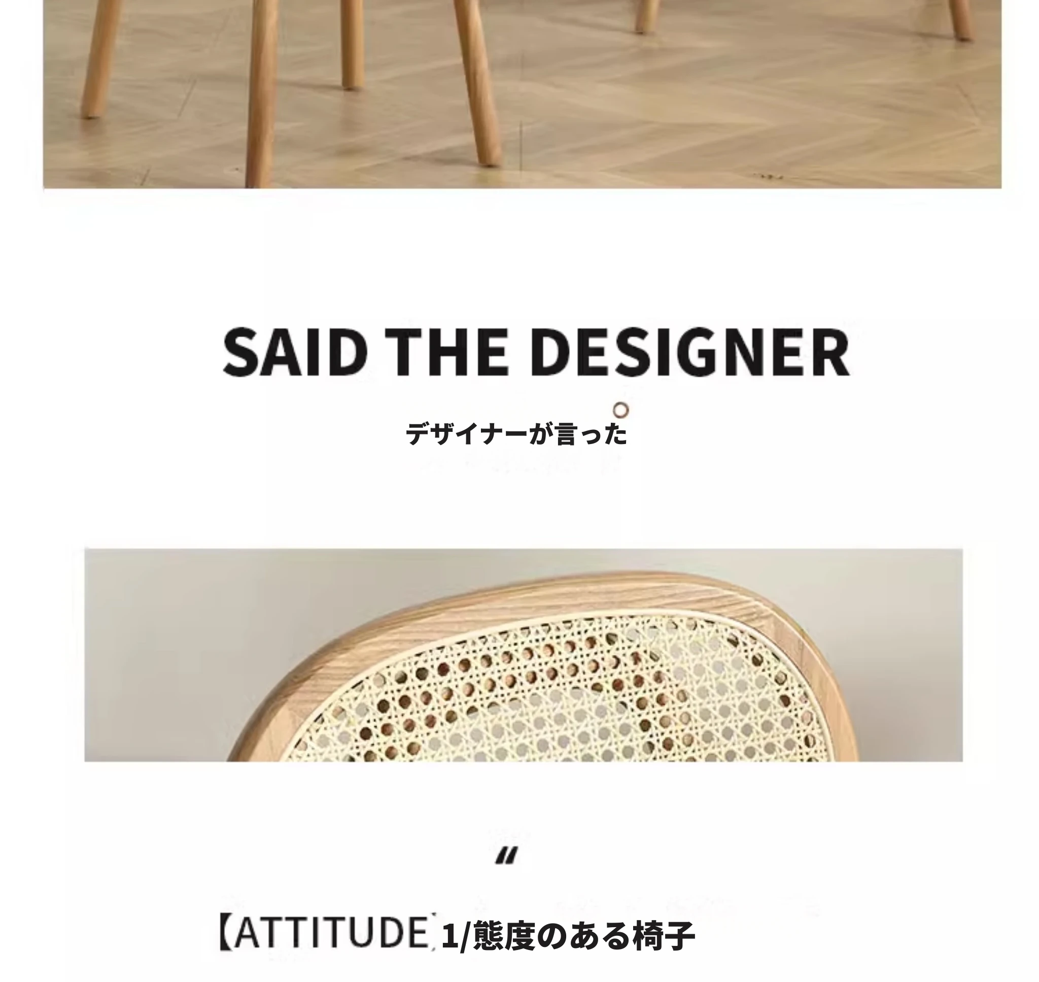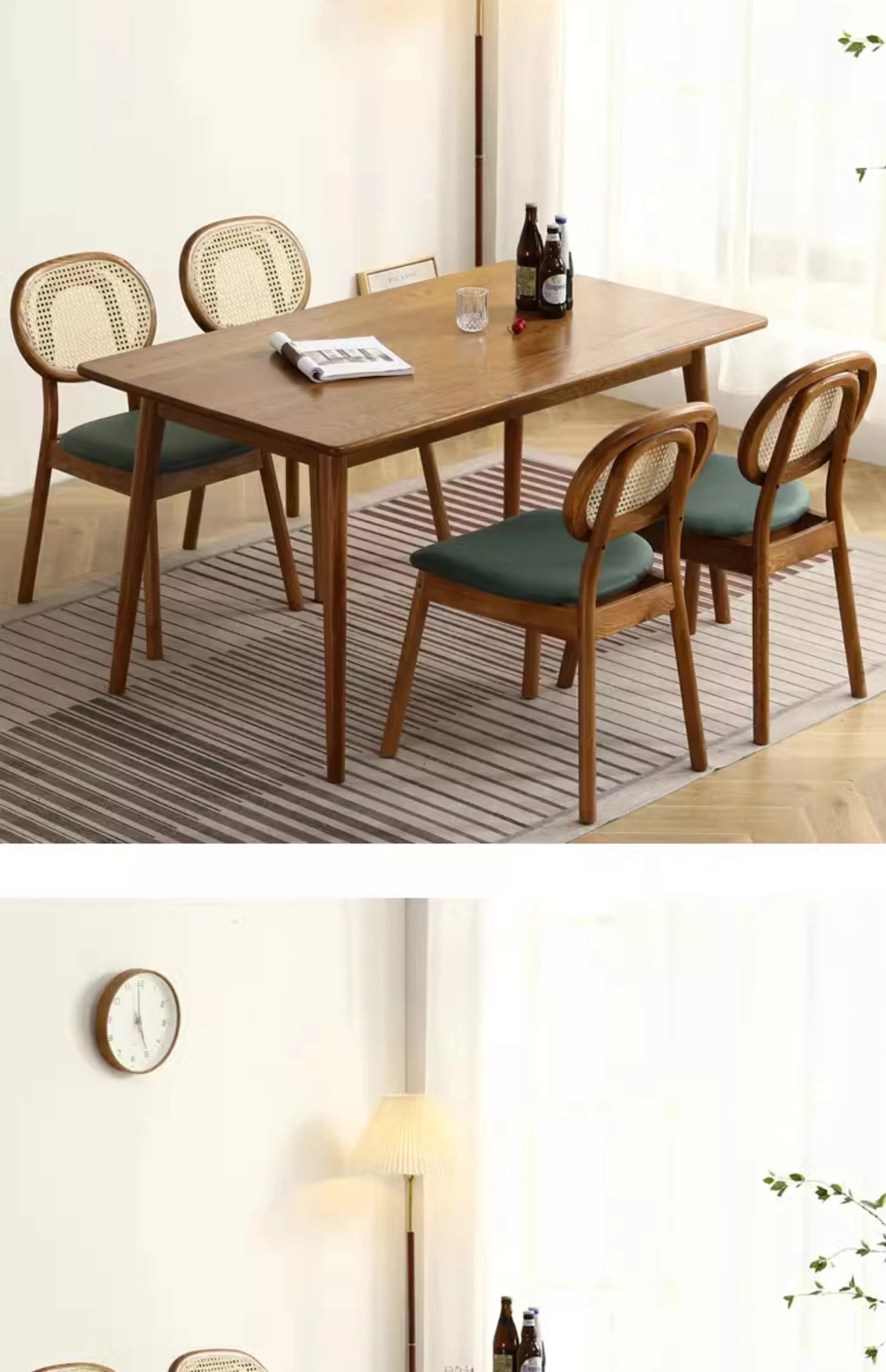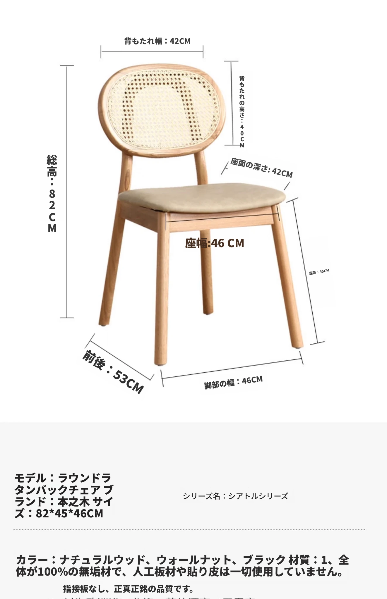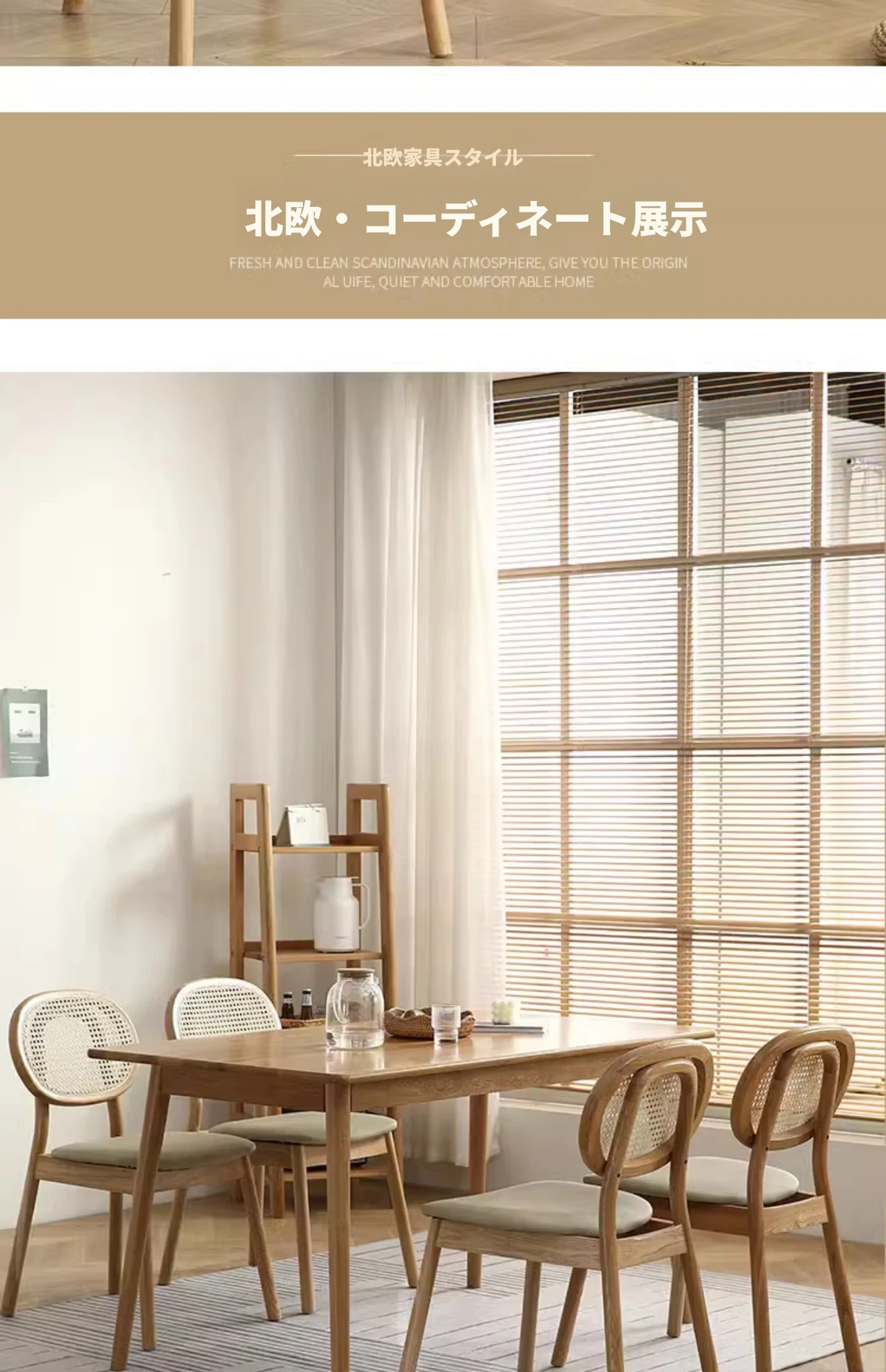 北欧風の無垢材とラタン編みのダイニングチェア - サステナブルでシンプルな侘寂スタイル、快適なクッション付き、デザイナーチェア。小さなスペースにもぴったりの高品質リラックスチェア。