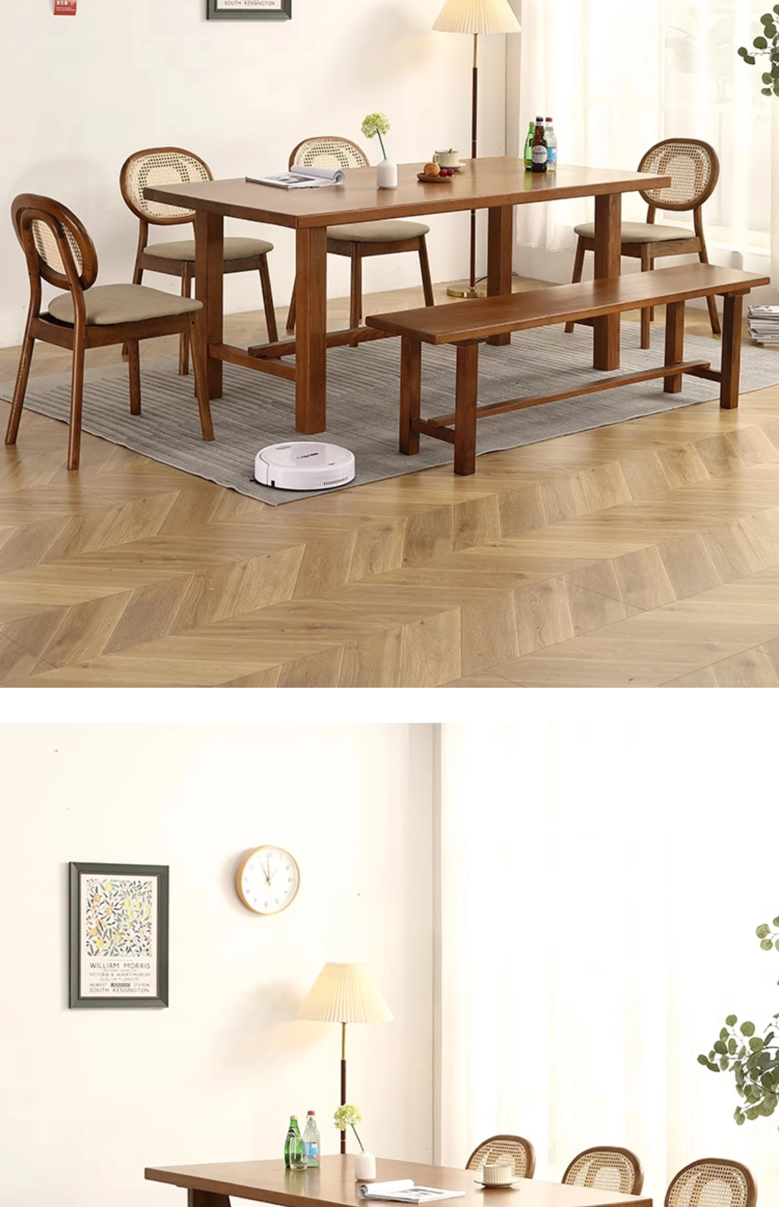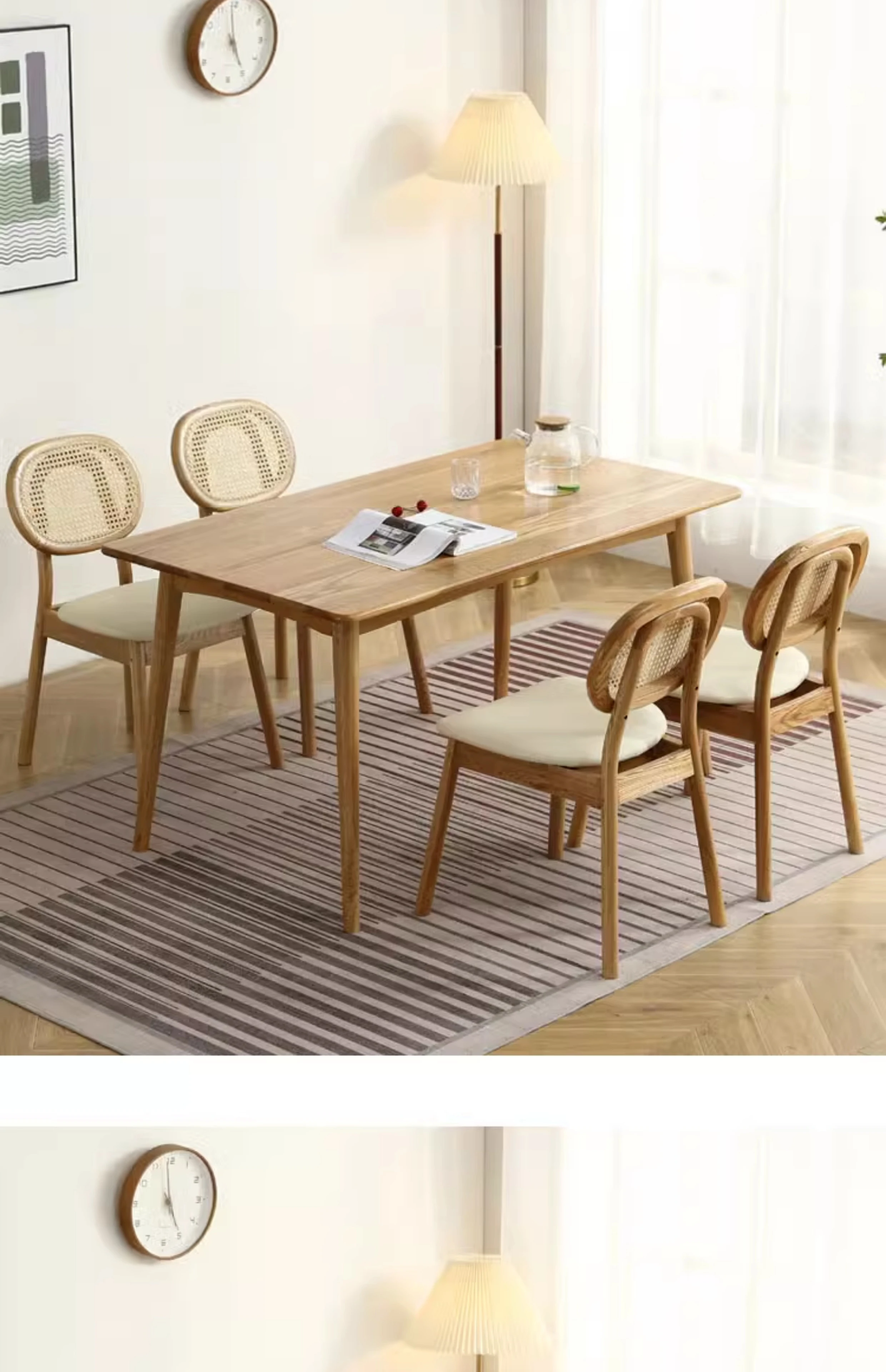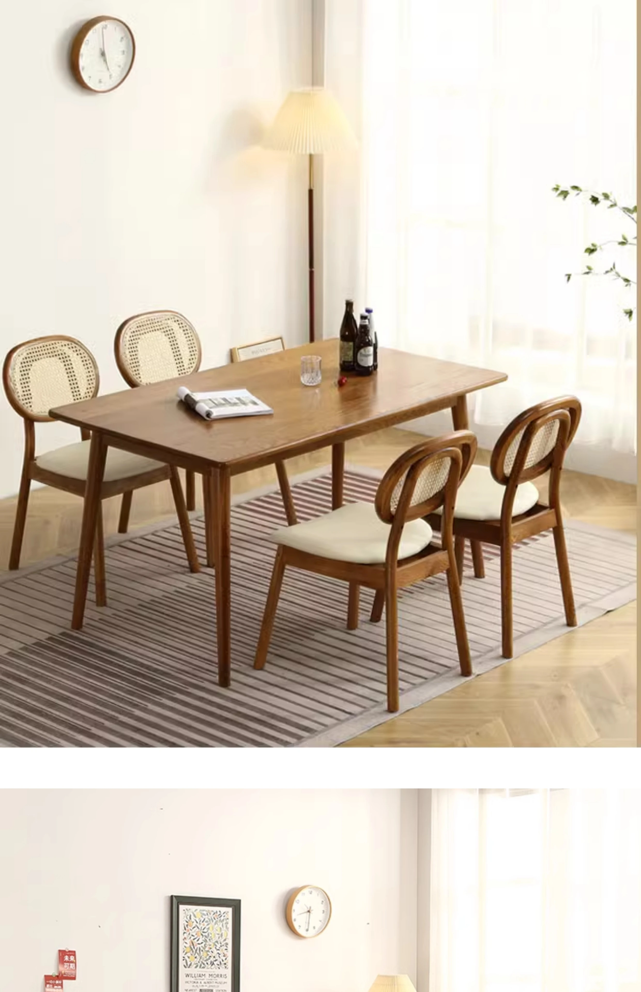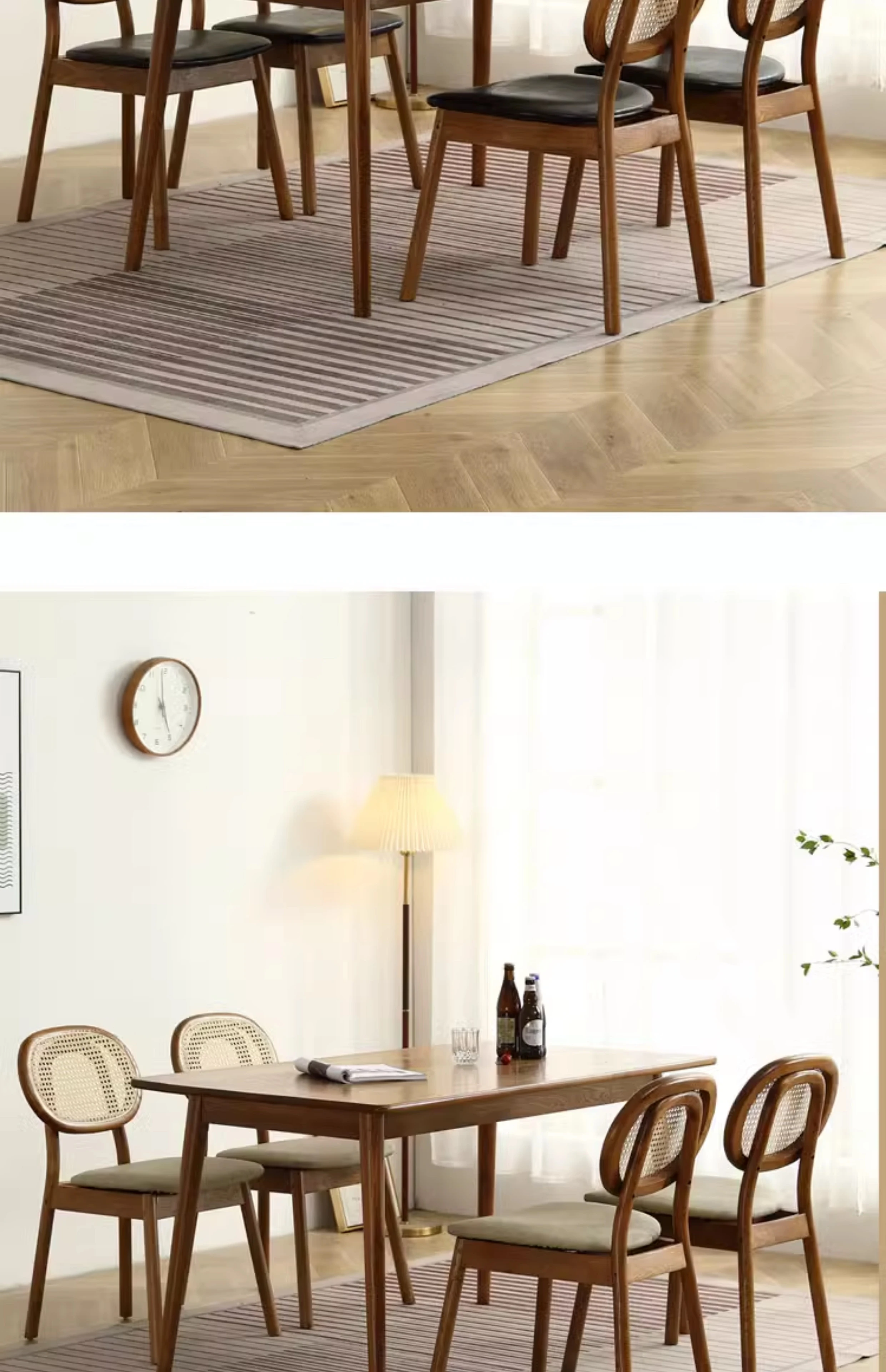 北欧風の無垢材とラタン編みのダイニングチェア - サステナブルでシンプルな侘寂スタイル、快適なクッション付き、デザイナーチェア。小さなスペースにもぴったりの高品質リラックスチェア。