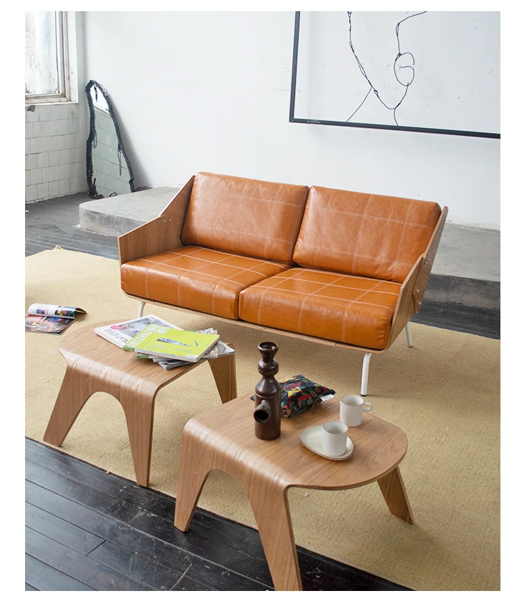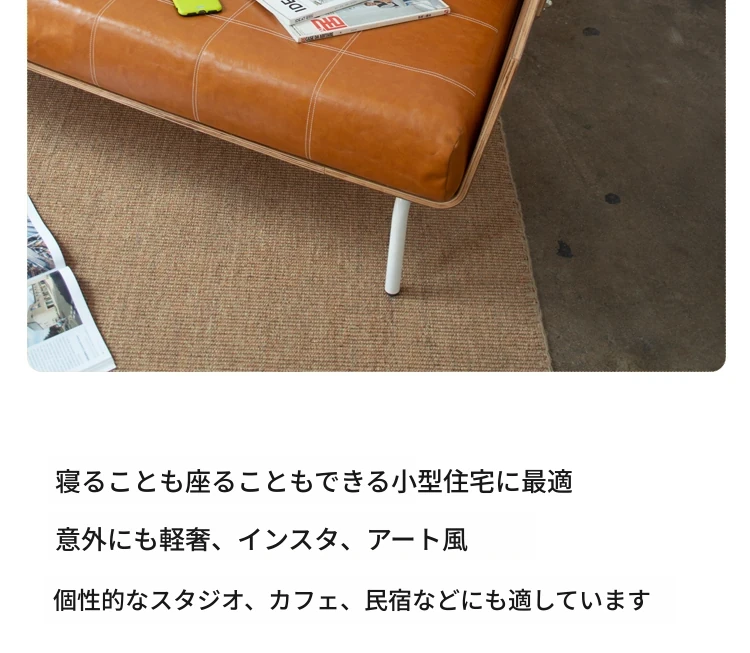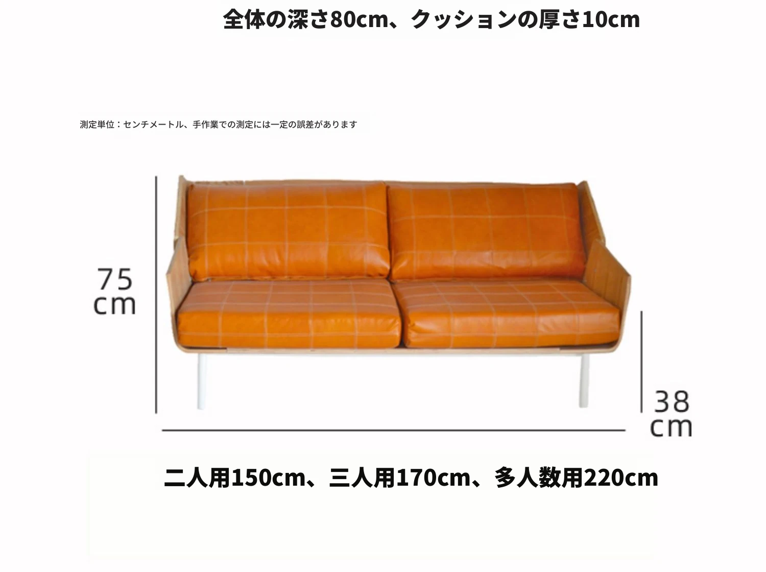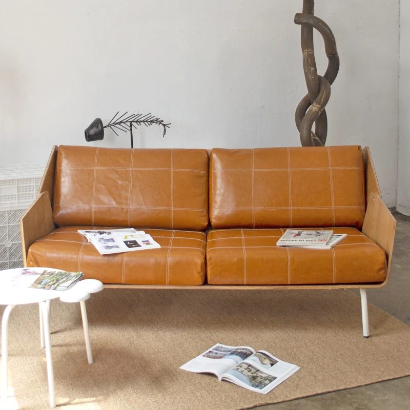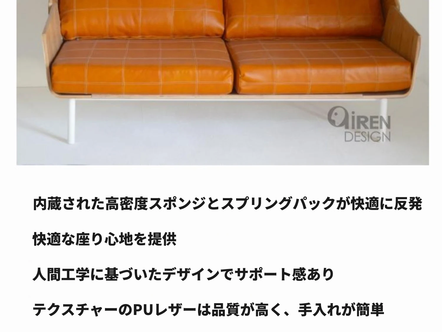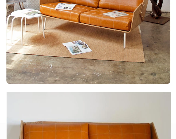 北欧インス風ダブルソファー|軽やかなラグジュアリーで小さなリビングにも最適|アメリカンスタイルのレザー製|カフェやアパレルショップにぴったり!