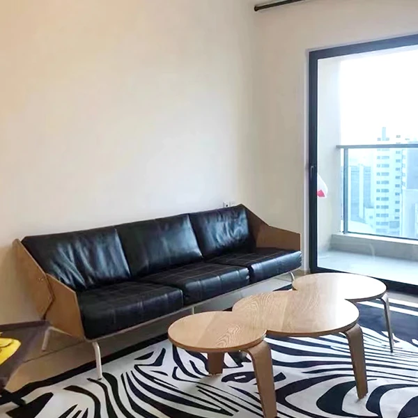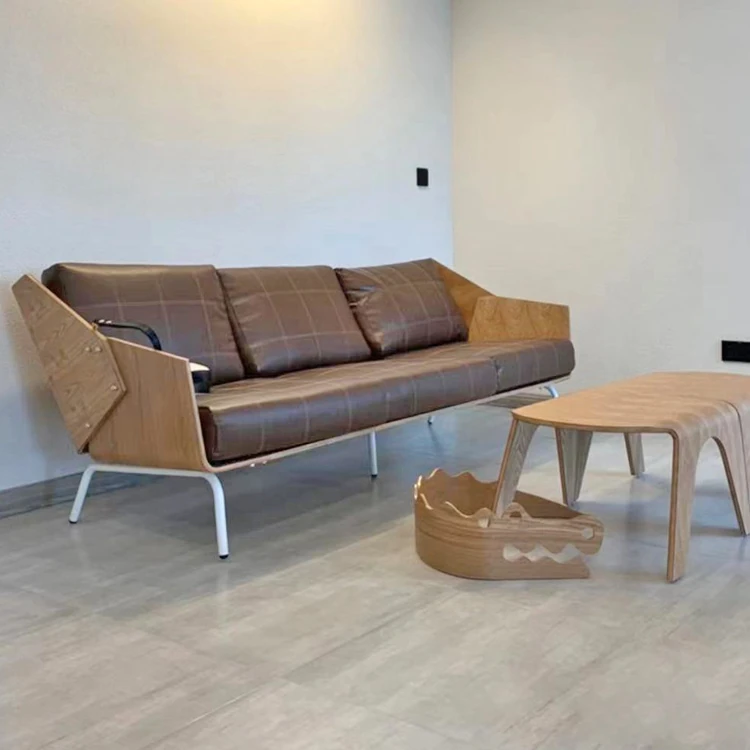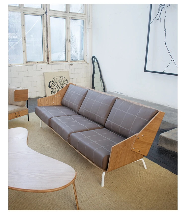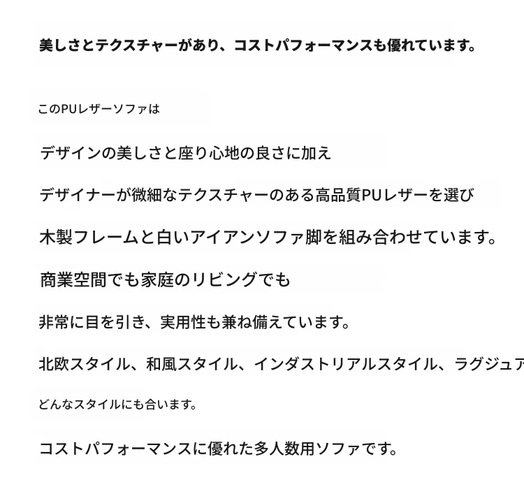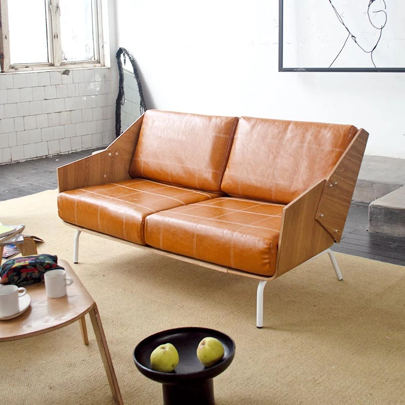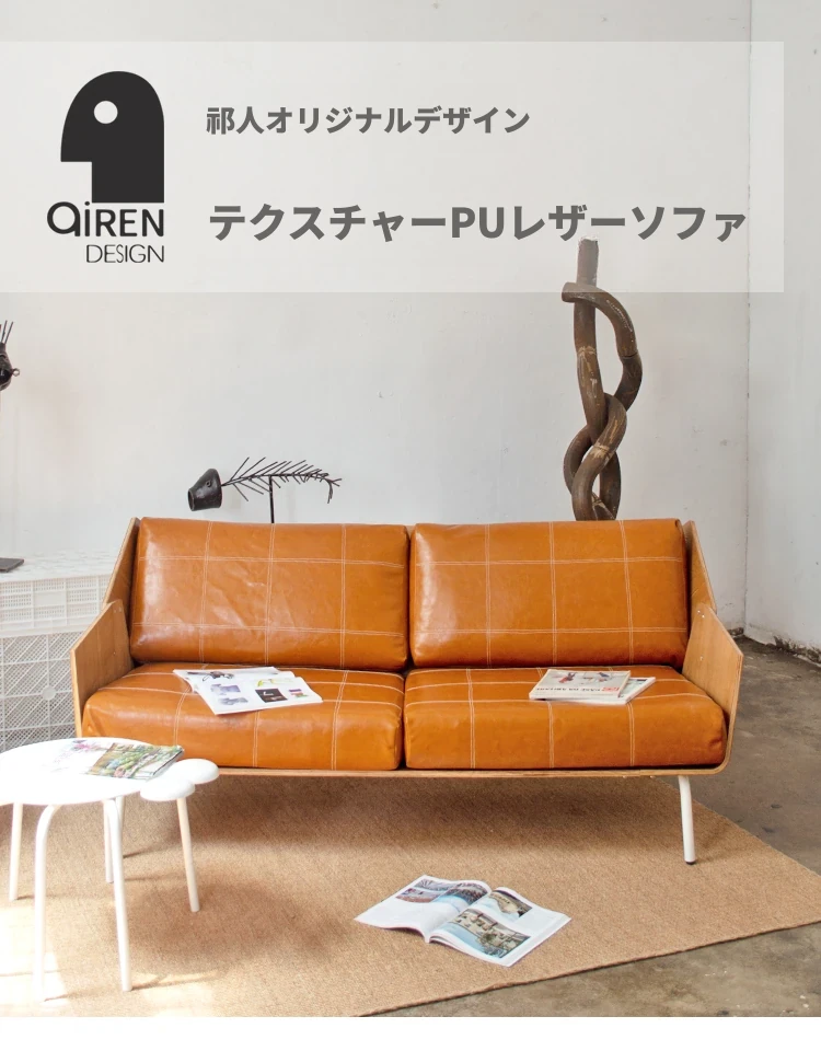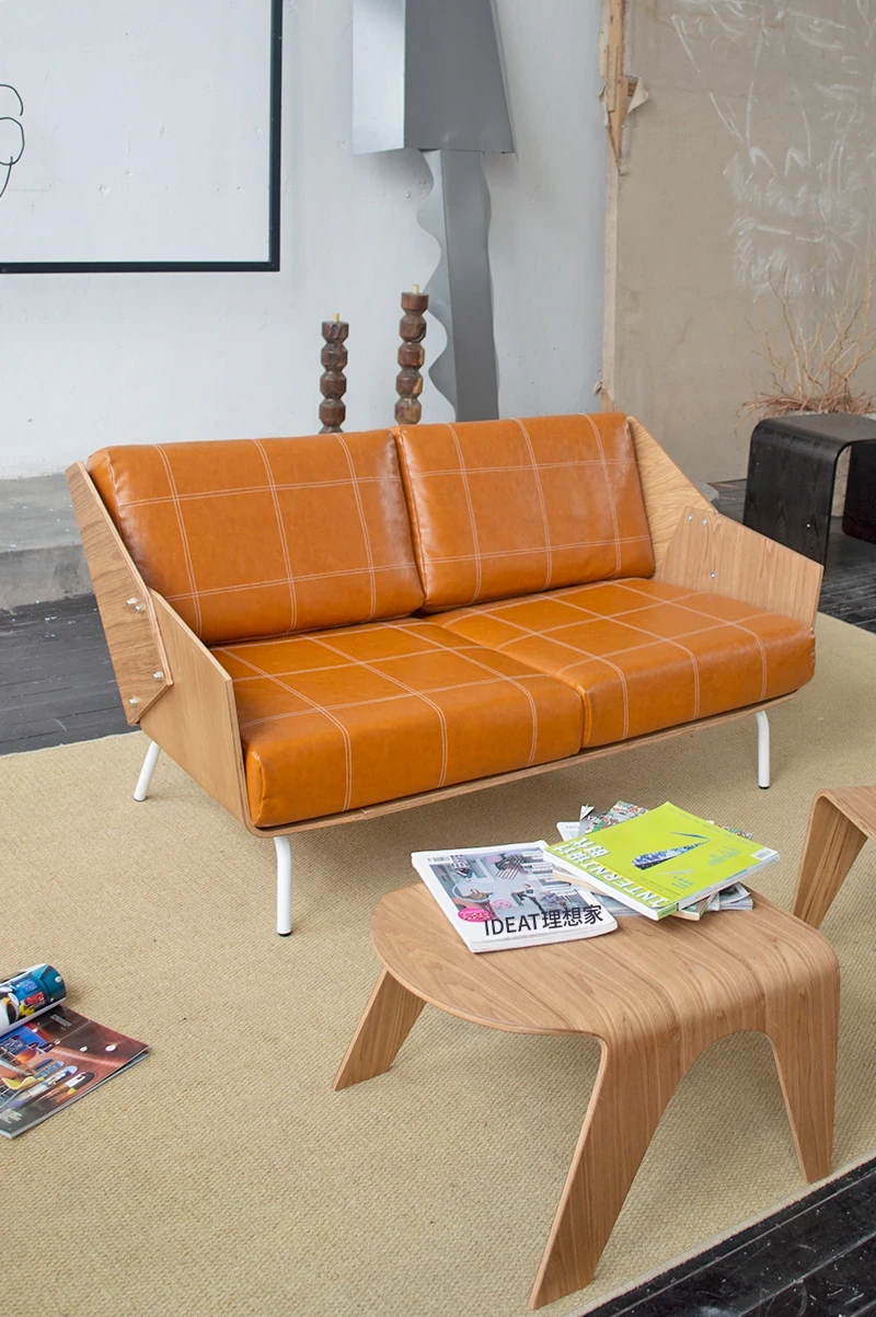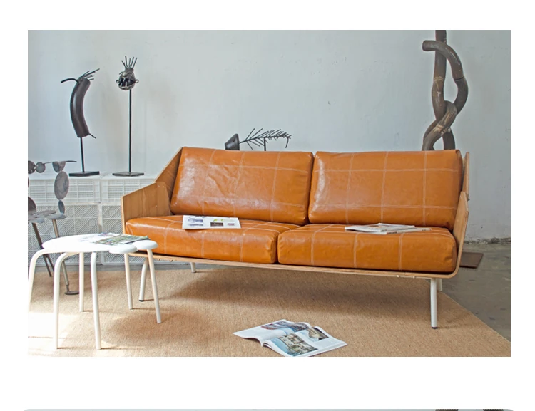 北欧インス風ダブルソファー|軽やかなラグジュアリーで小さなリビングにも最適|アメリカンスタイルのレザー製|カフェやアパレルショップにぴったり!