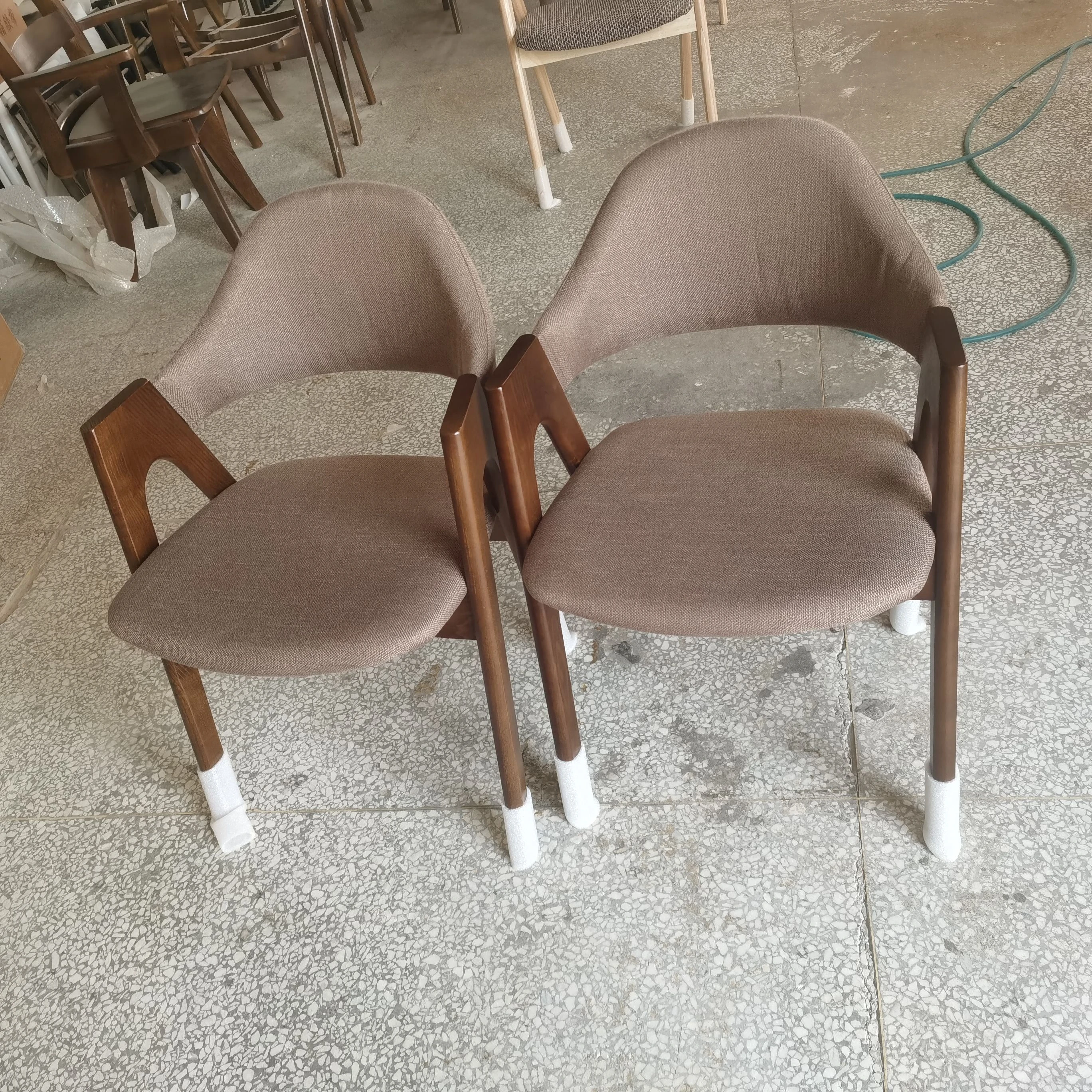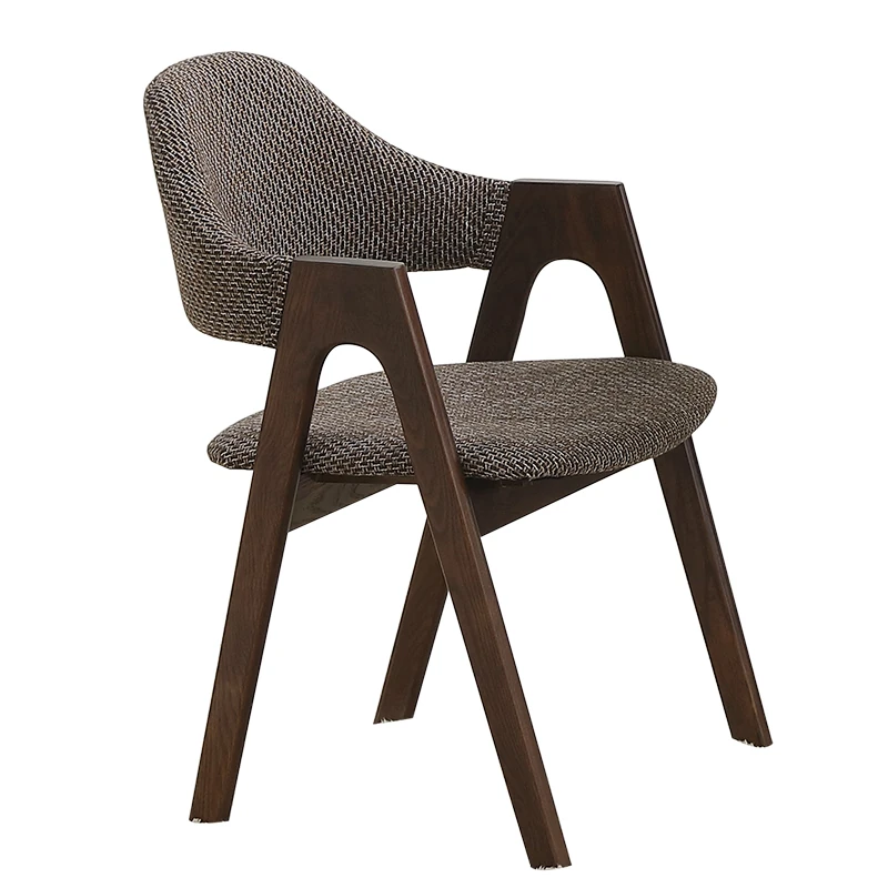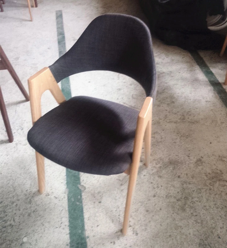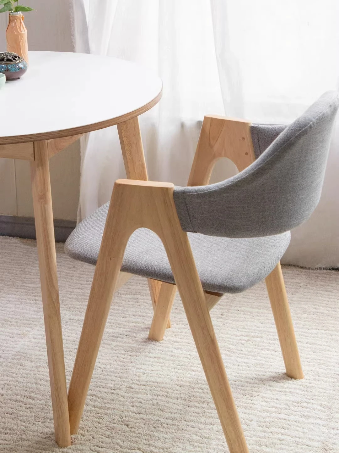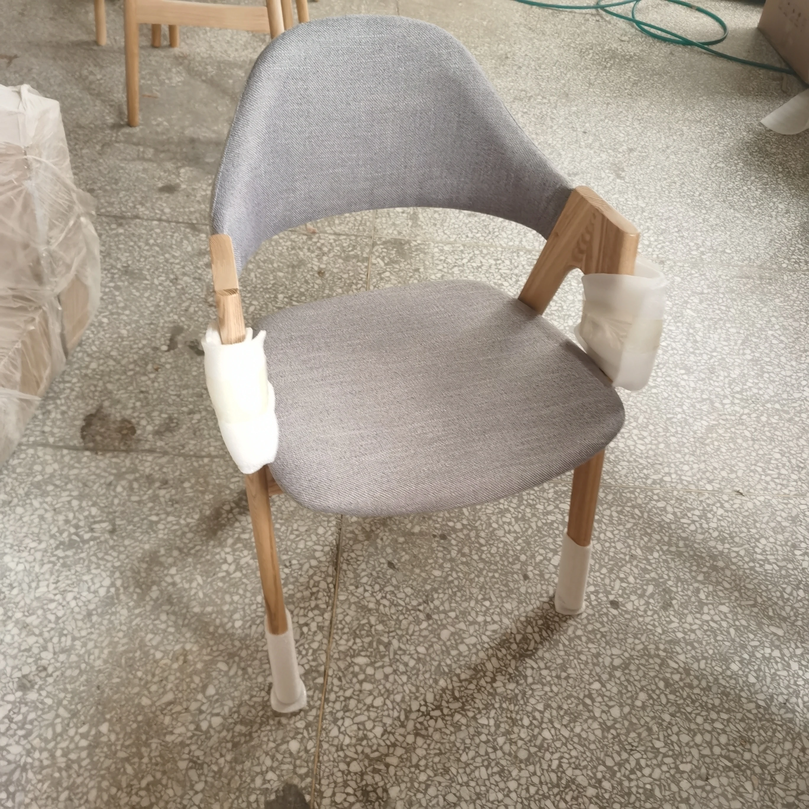 ラバーウッドタイチェアクルミフレーム細麻煙灰色