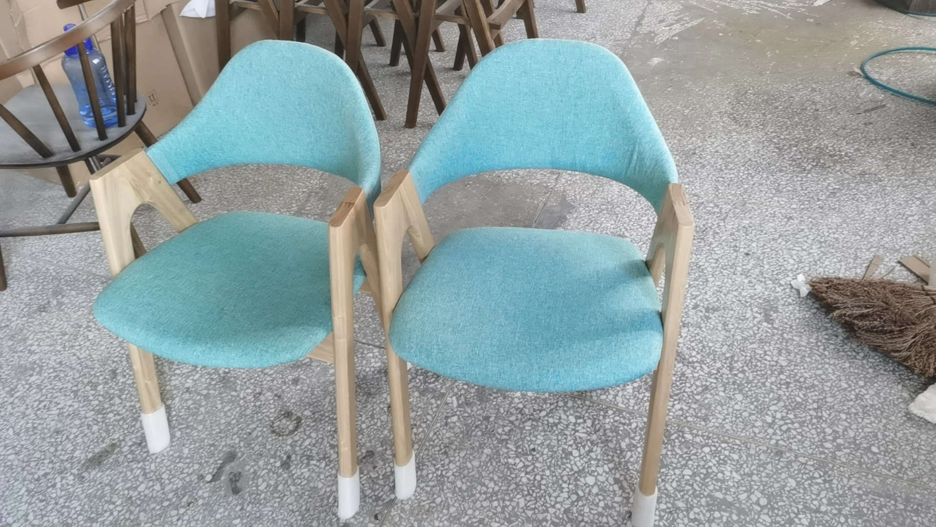 ラバーウッドタイチェア原木フレーム細麻霧霾ブルー