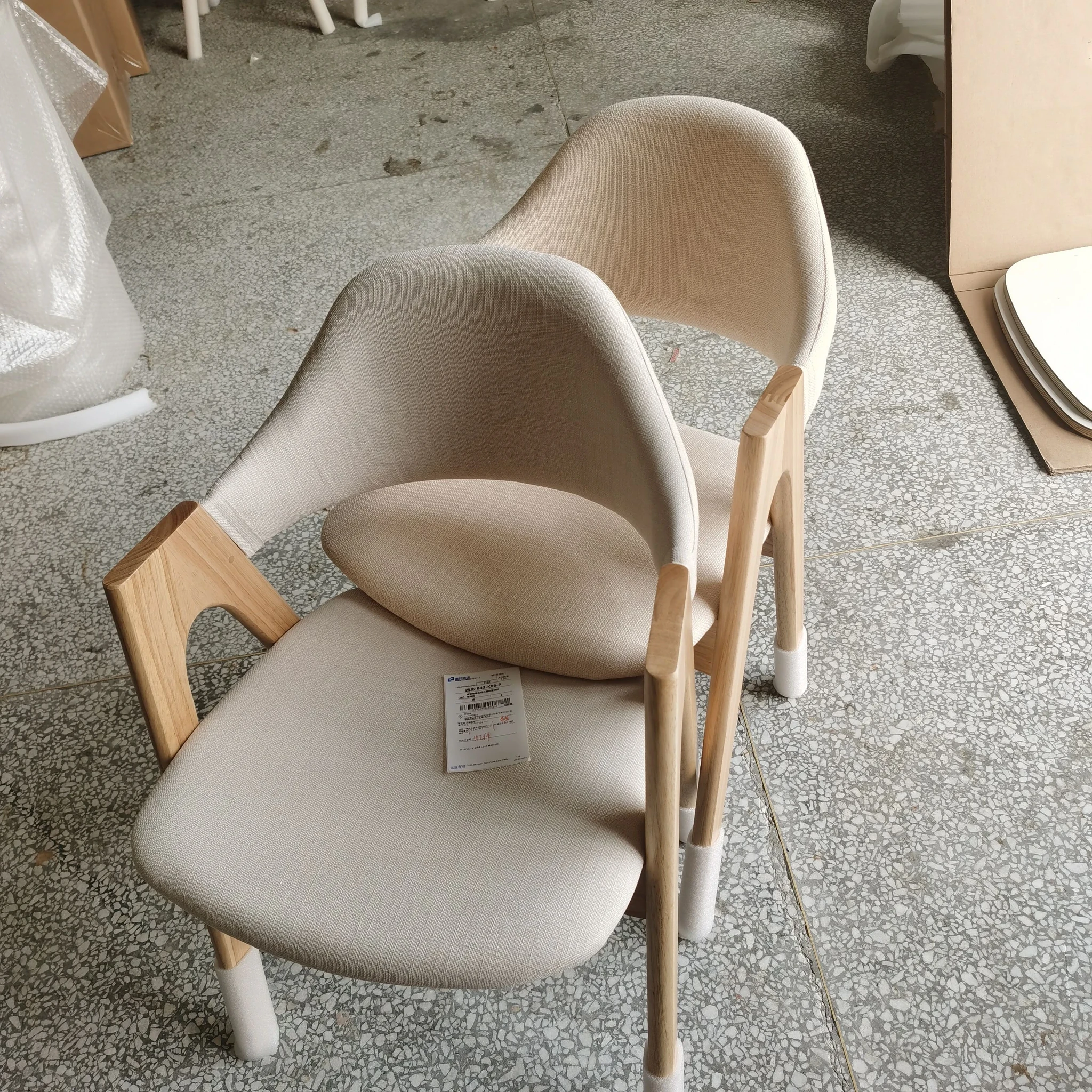 ラバーウッドタイチェア原木フレーム細麻浅灰色