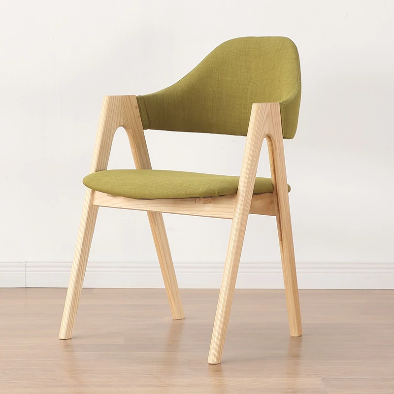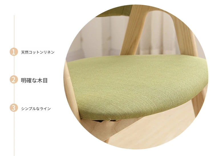 ラバーウッドタイチェア原木フレーム細麻浅緑.