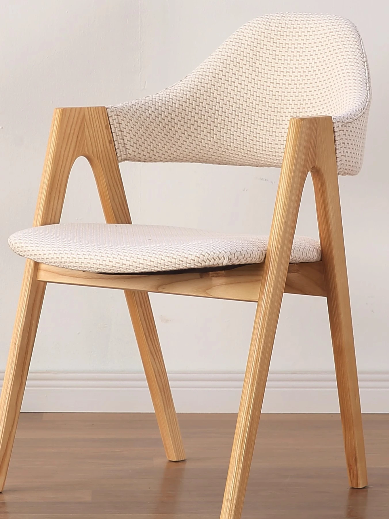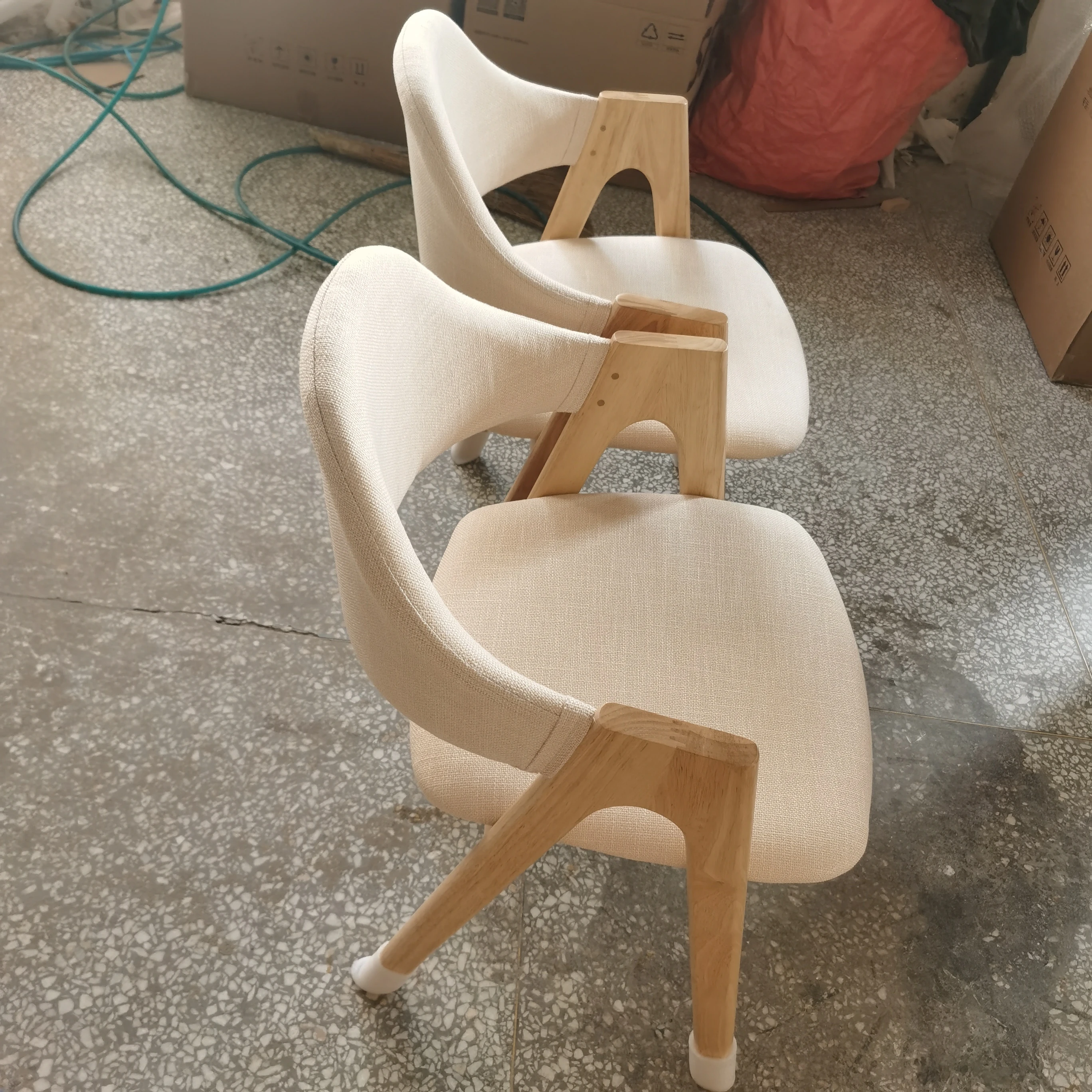 ラバーウッドタイチェア原木フレーム細麻ベージュ