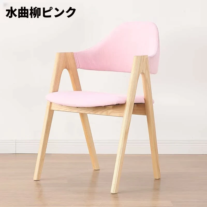 ラバーウッドタイチェア原木フレーム細麻ベビーピンク