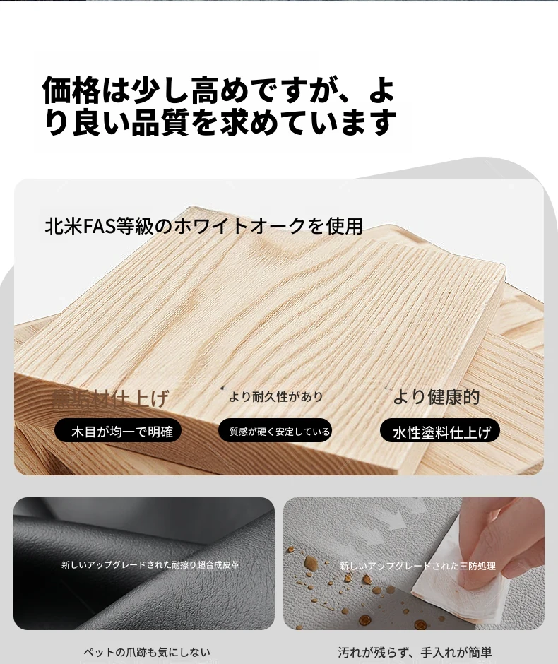 クリームホワイト/キャットスクラッチレザー/防汚耐スクラッチ/ウォールナットフレーム