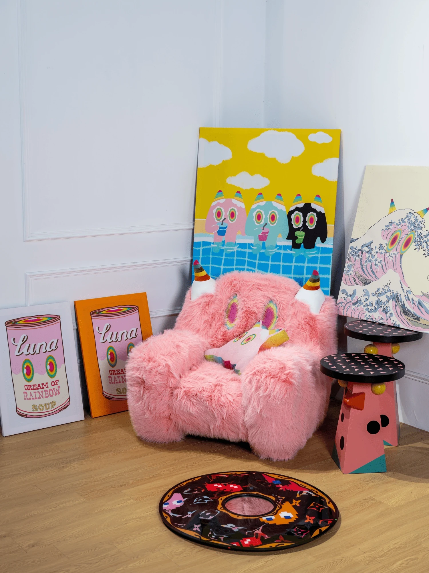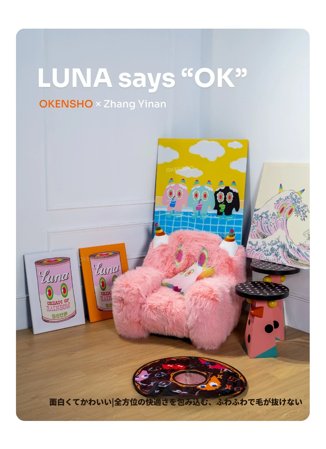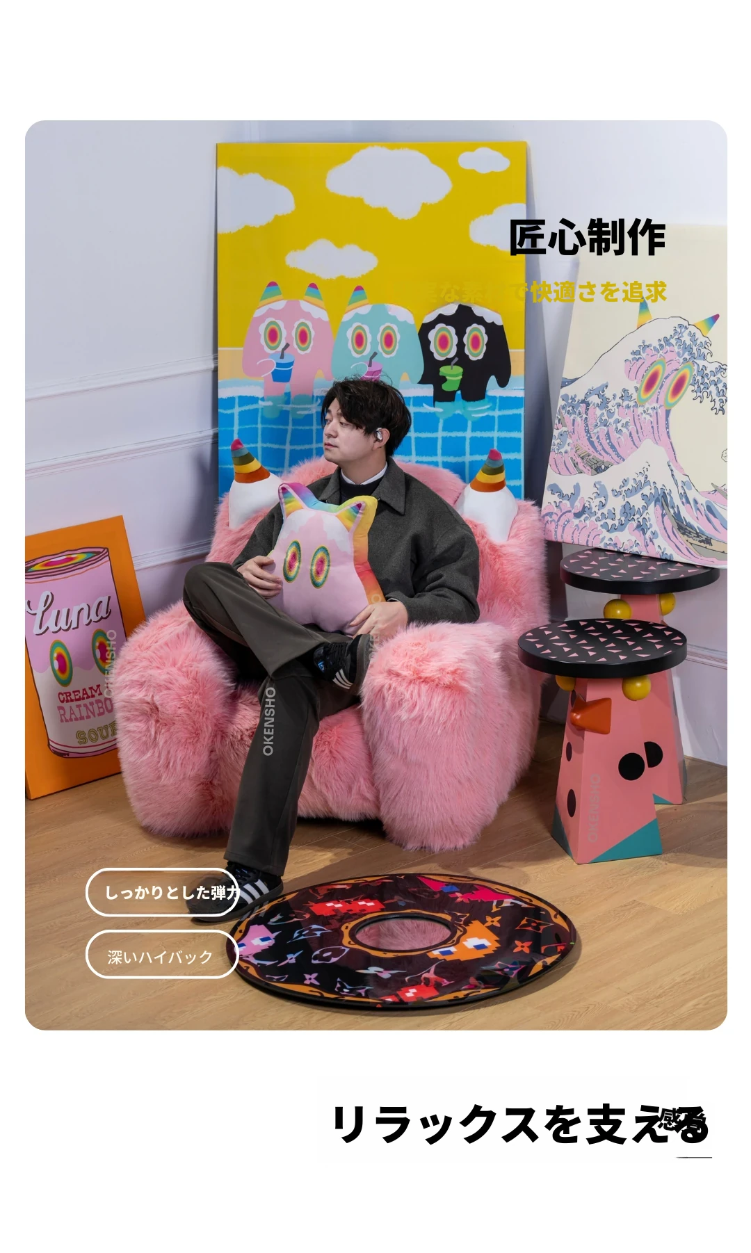 OKENSHOオリジナルLunaクリームファー デザイナーコラボ多バメンクリームクリエイティブソファチェア - あなたのインテリアに個性をプラス!心地よい座り心地とユニークなデザインで、毎日のリラックスタイムを特別に演出します。