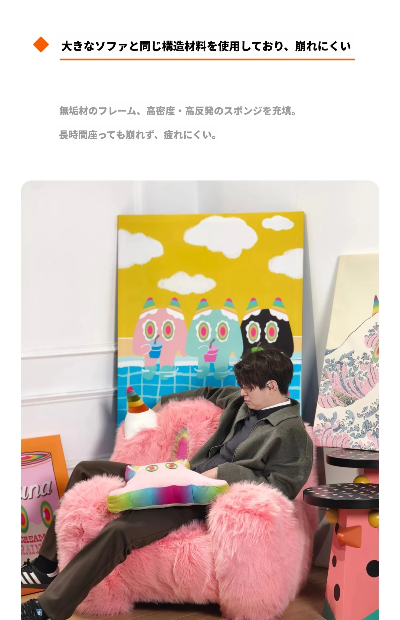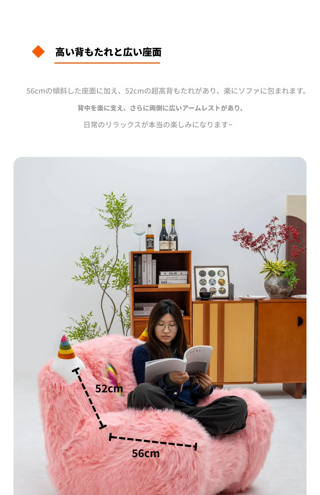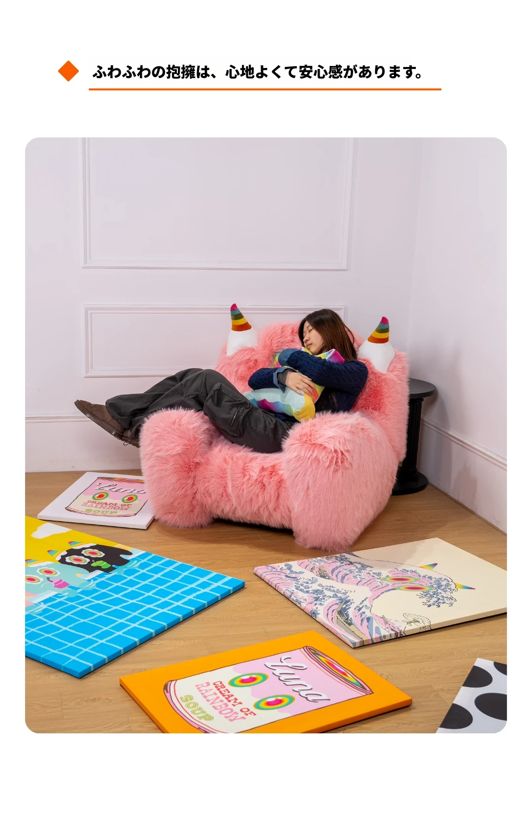 リラックスできる懶人ソファ|家庭用・休憩用・民宿・ホテルに最適なバルコニー椅子|デザイナー創造の一人掛けソファ|ふわふわのラビットファー素材で快適な座り心地!