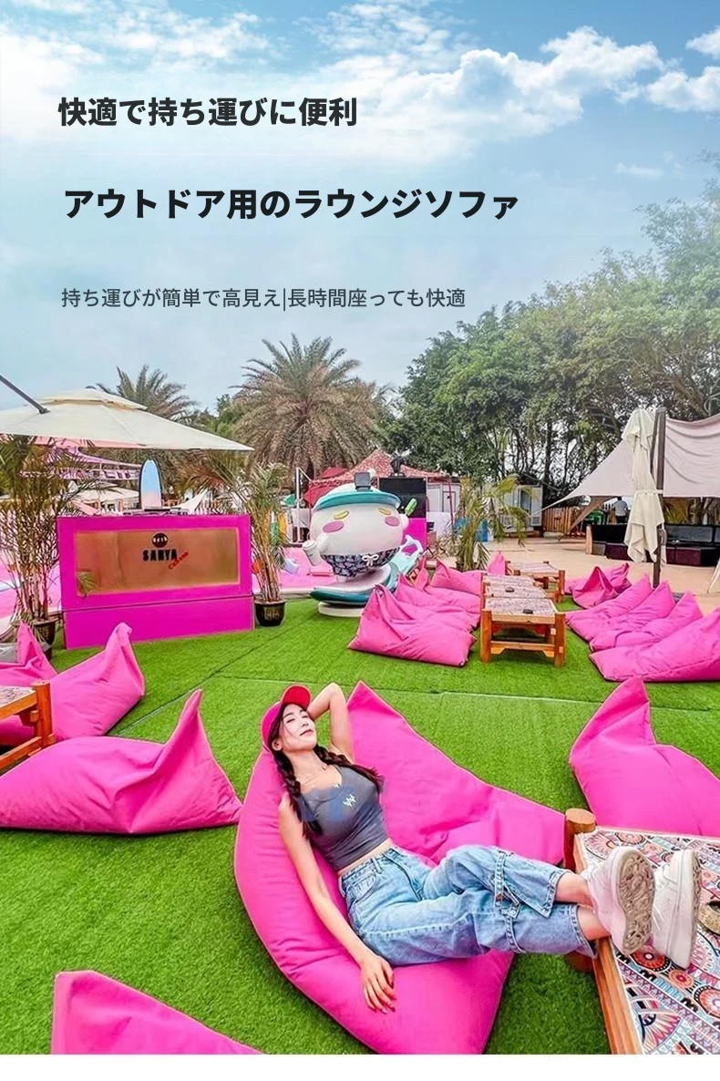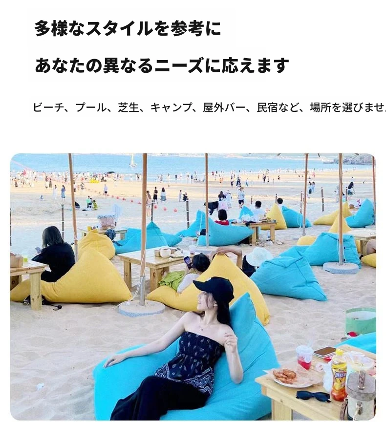 アウトドア・リラックスソファ - 寝転びながら快適に過ごせる!タタミスタイルのビーズクッション、ビーチや音楽フェス、ピクニック、キャンプに最適。あなたのリラックスタイムをもっと特別に!