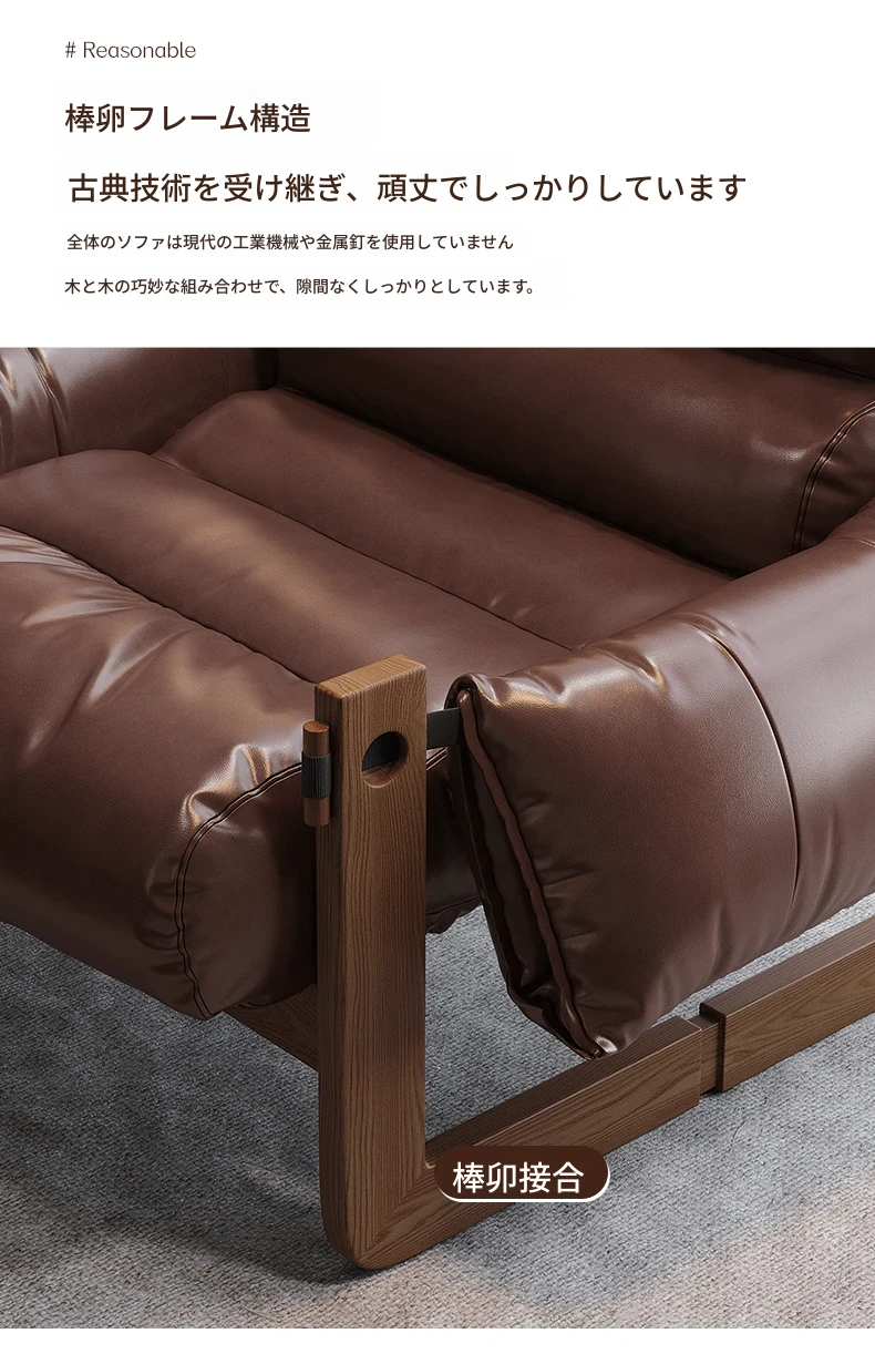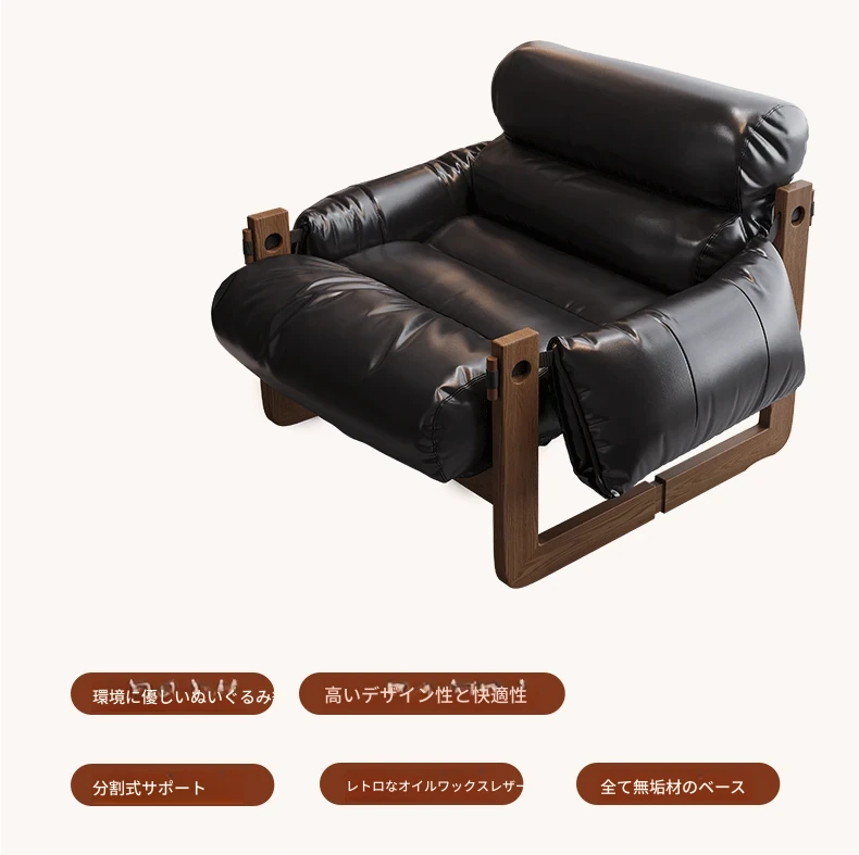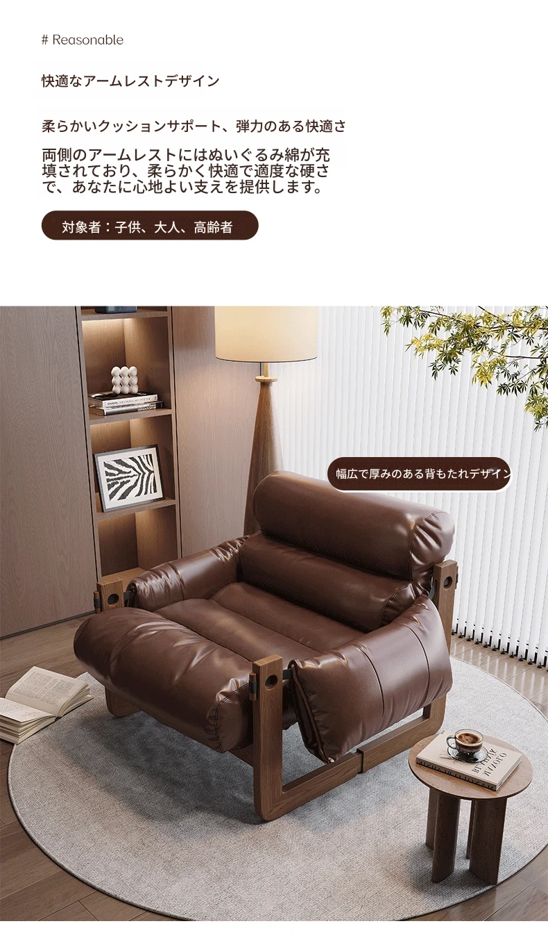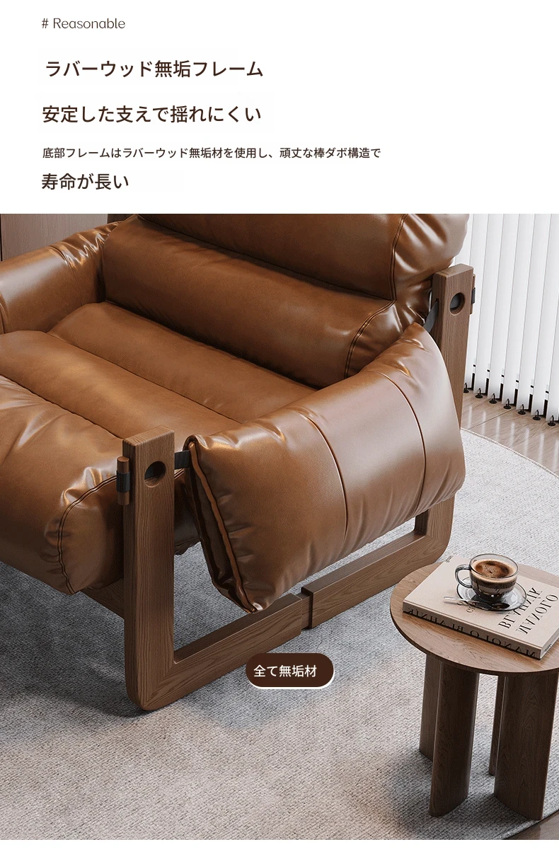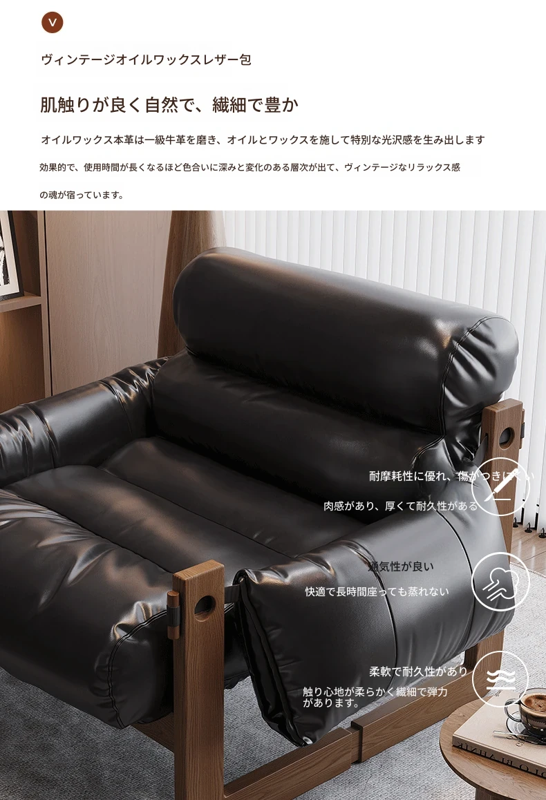 北欧スタイルの一人掛けソファ、ヴィンテージデザインの無垢材製!リラックスできる真皮のジャージー島椅子で、居心地の良い寝室やリビングに最適。デザイナーのこだわりが光る一品!