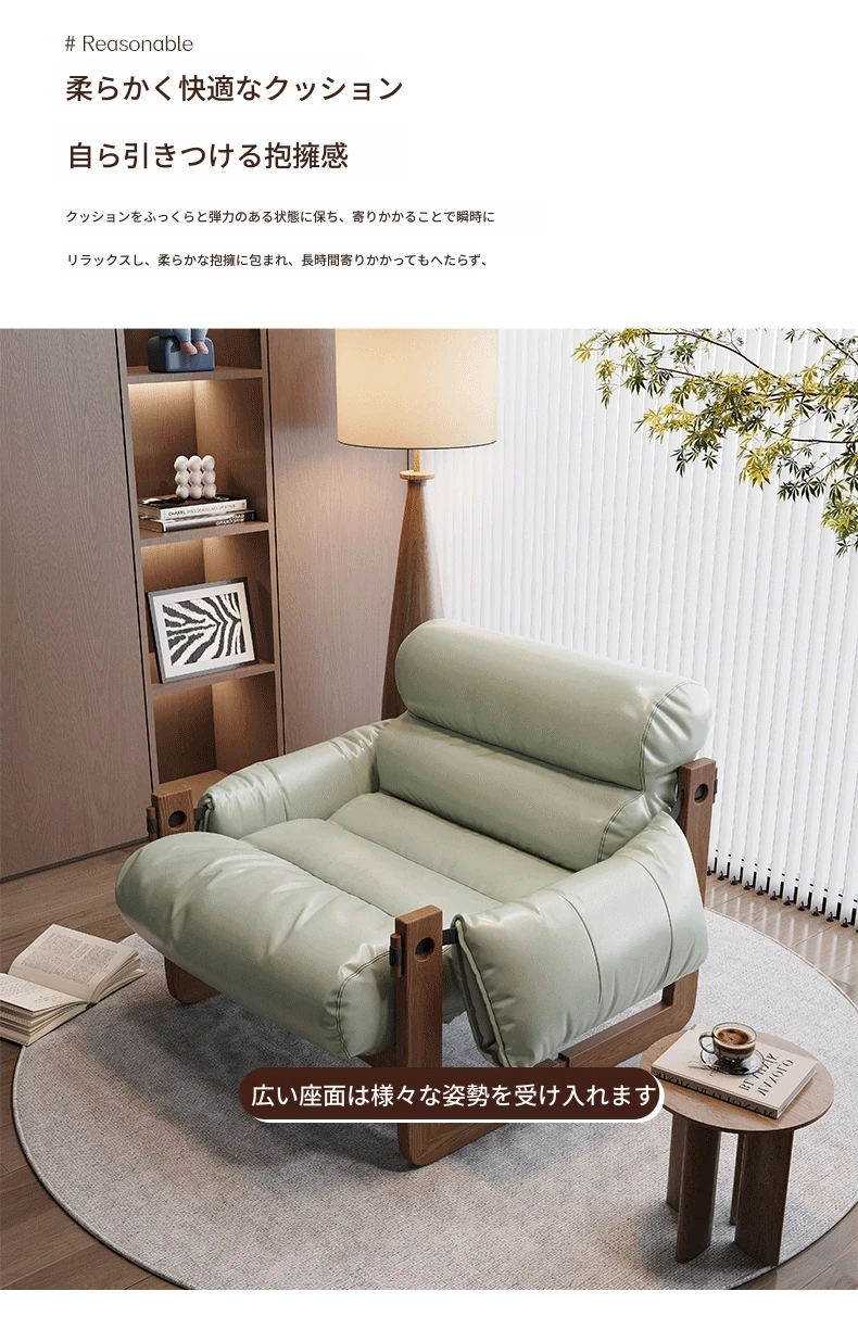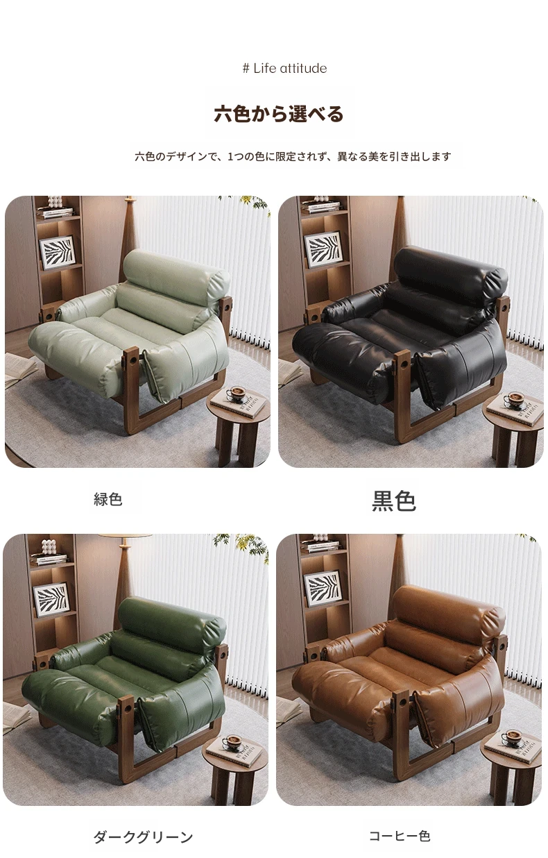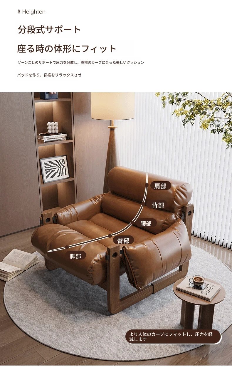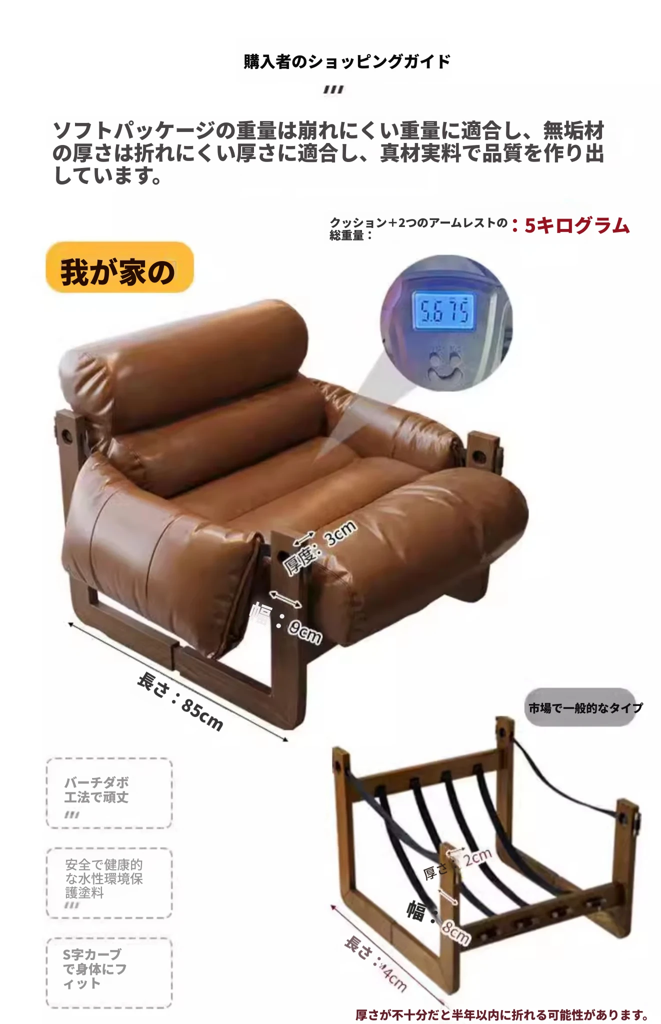 北欧スタイルの一人掛けソファ、ヴィンテージデザインの無垢材製!リラックスできる真皮のジャージー島椅子で、居心地の良い寝室やリビングに最適。デザイナーのこだわりが光る一品!