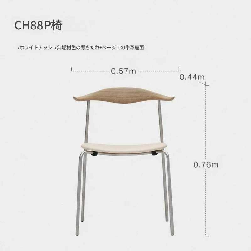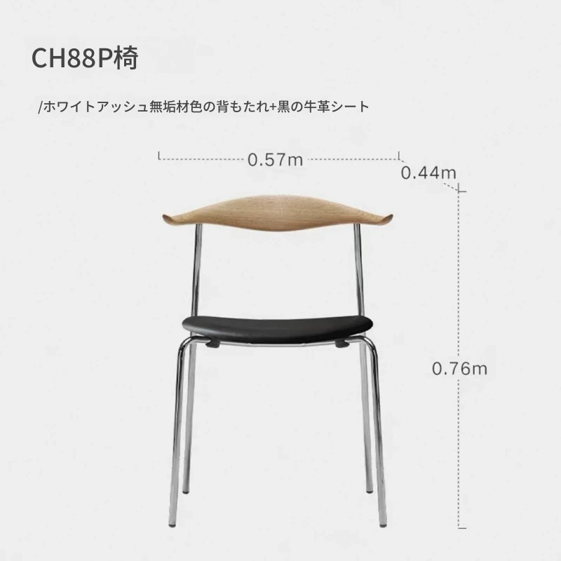 北欧スタイルの本革製Carl Hansen/CH88ダイニングチェア、牛角デザインのバウハウス風ステンレス製ヴィンテージチェア!洗練されたデザインで、インテリアにぴったりのアイテムです。