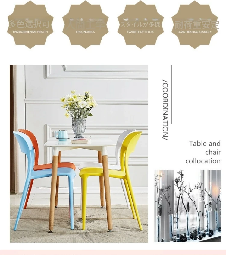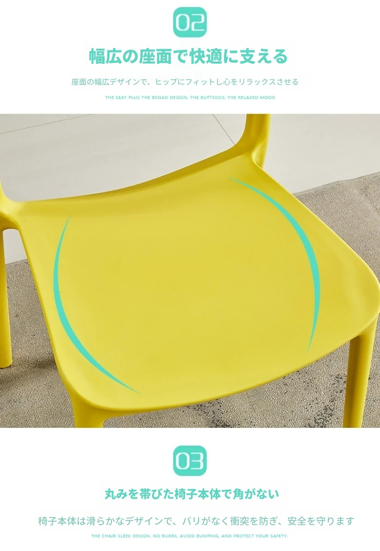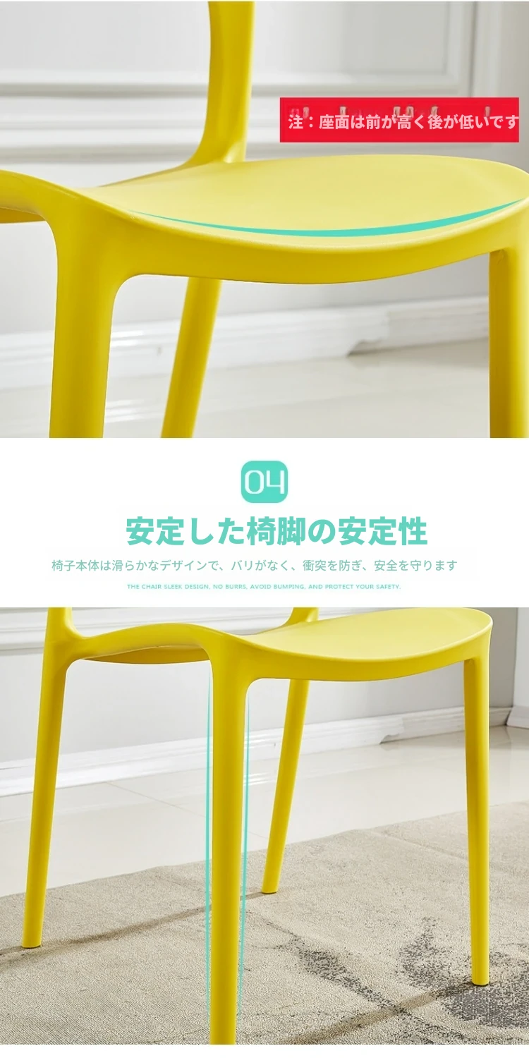 シンプルで厚手の椅子背もたれ付き!家庭用・成人向けプラスチック製ダイニングチェア。会議や研修にも最適、アウトドアでも使えるリラックスチェア!快適な座り心地で、日常をもっと素敵に。