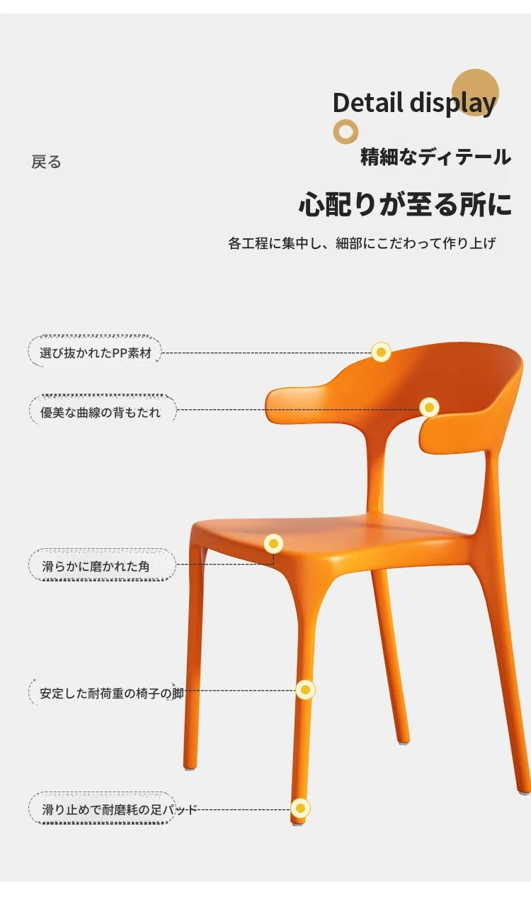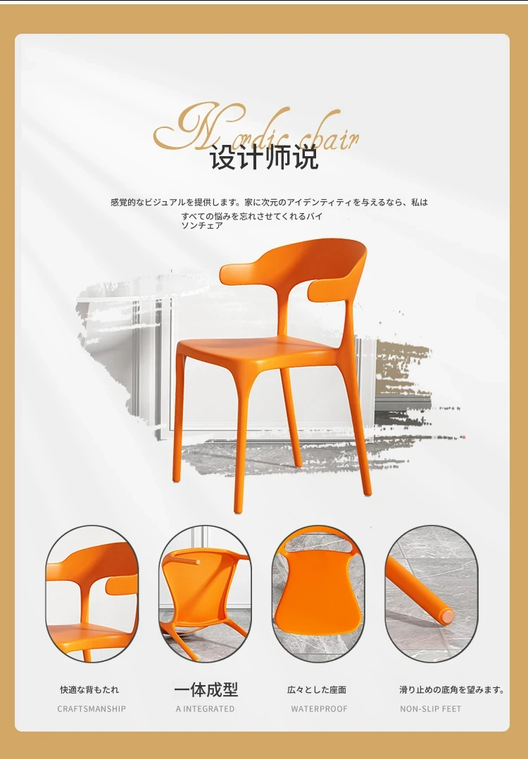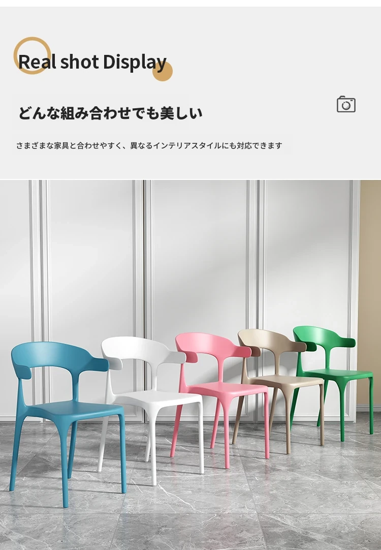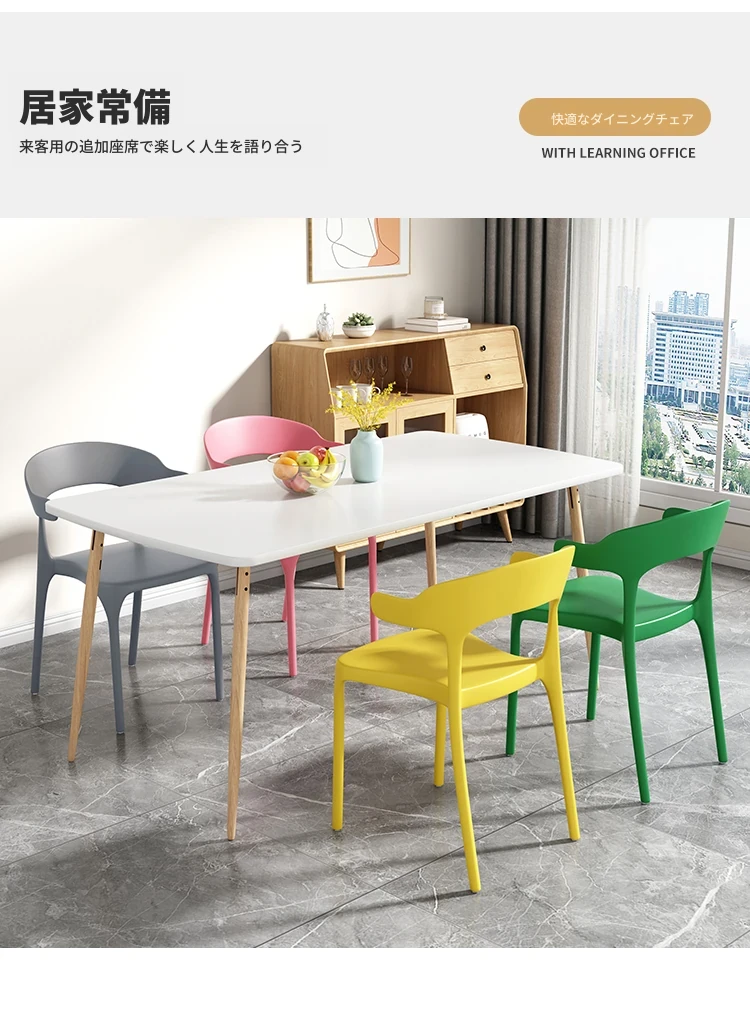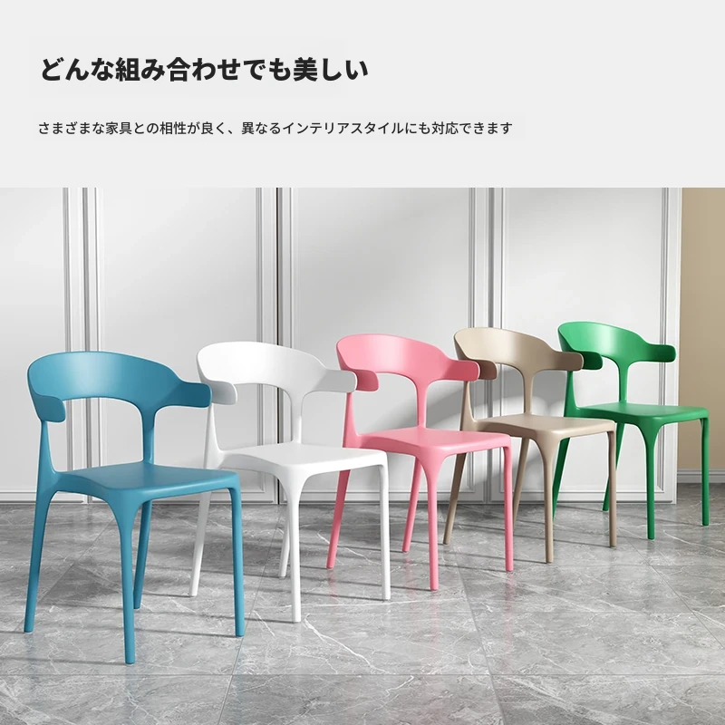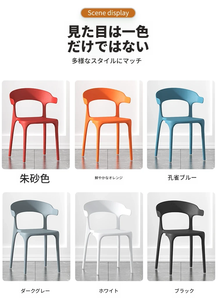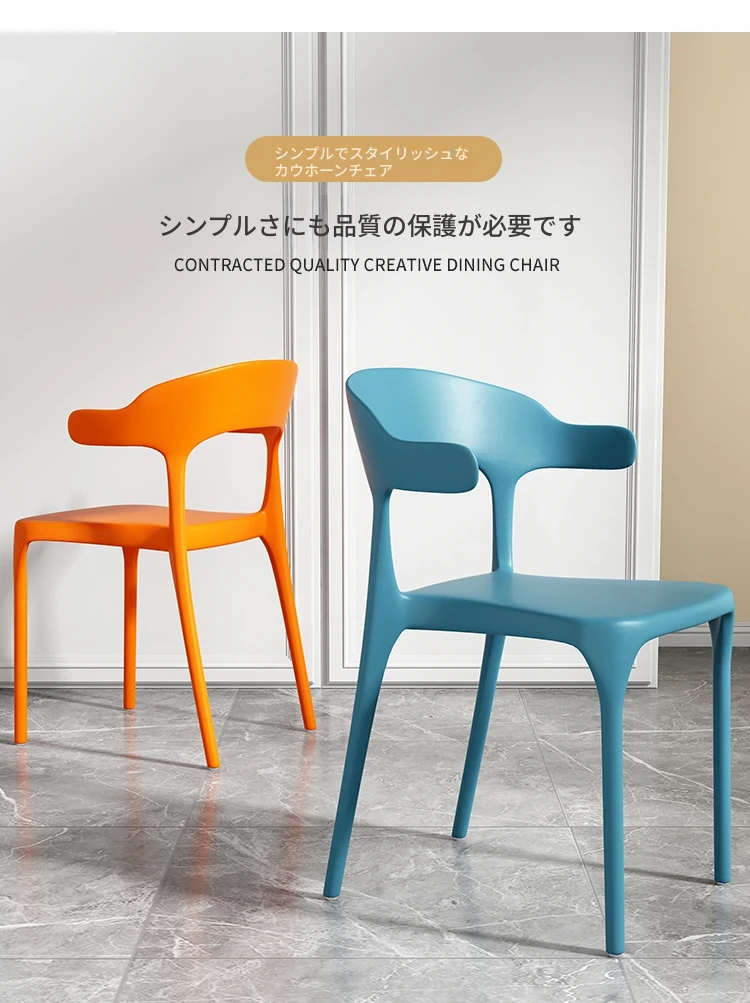 厚手プラスチック製チェア|長時間座っても快適!現代的でシンプルなデザインの牛角型ダイニングチェア|北欧スタイルのリラックスバックチェア|食卓にぴったりな椅子!