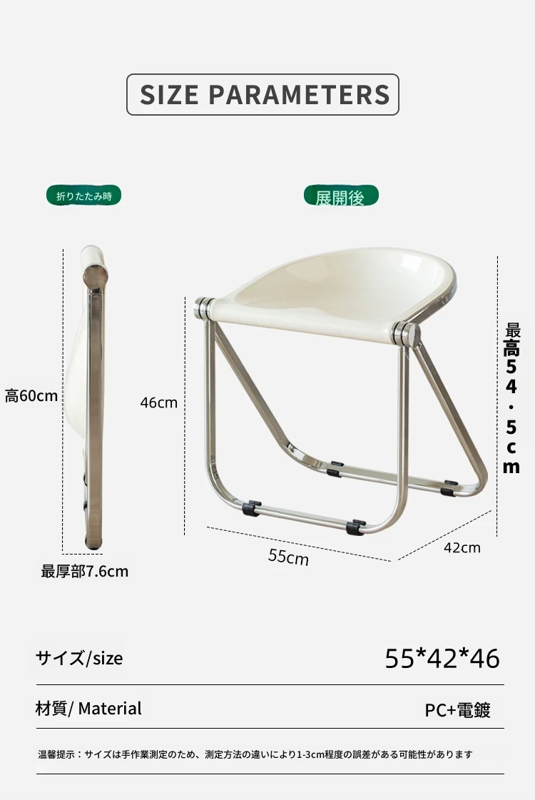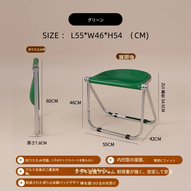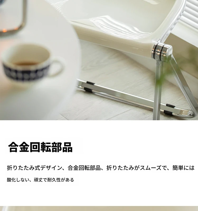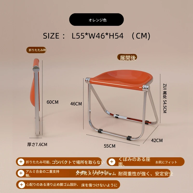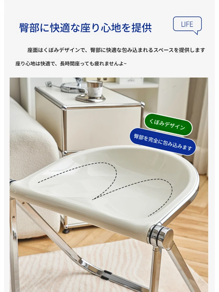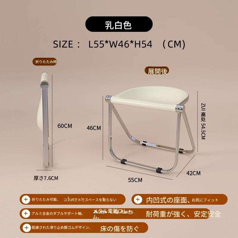 中古のインスタ映え!ミニマリストデザインのクリーム風折りたたみダイニングチェア。リビングや寝室にぴったりな化粧台やメイク用にも最適です。おしゃれで機能的な一脚を手に入れよう!
