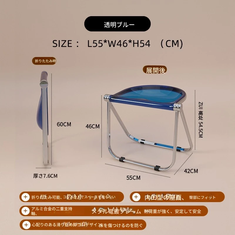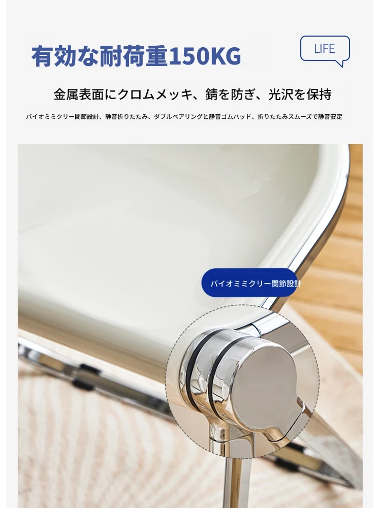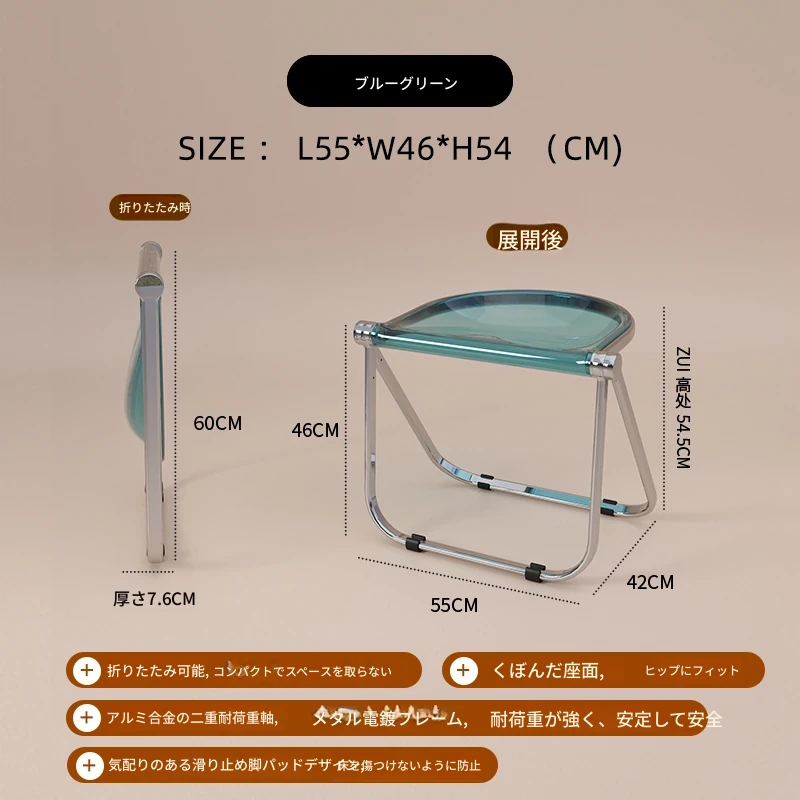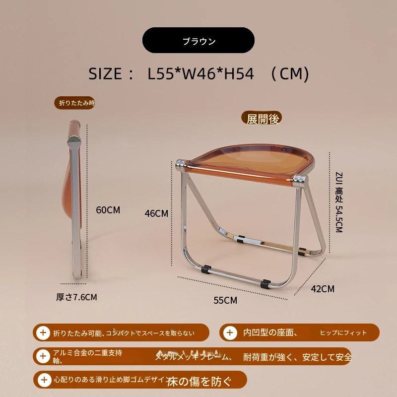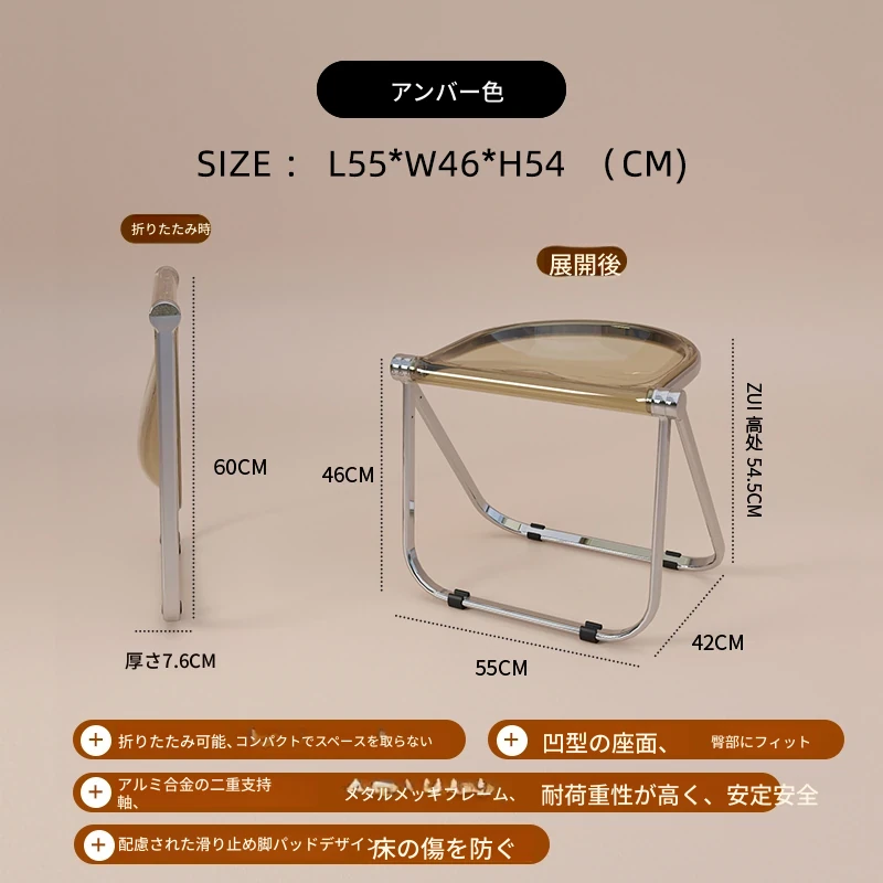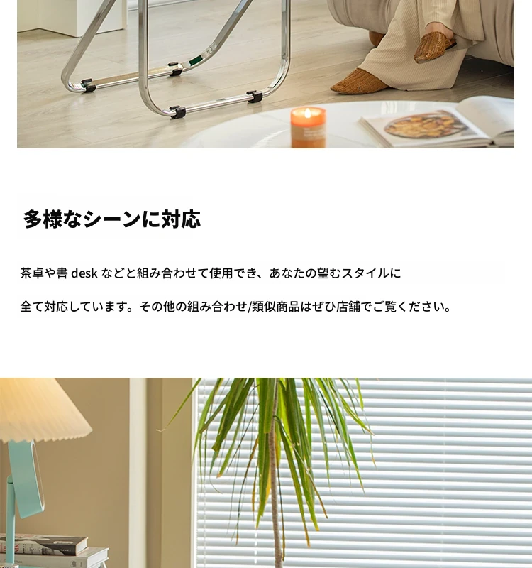 中古のインスタ映え!ミニマリストデザインのクリーム風折りたたみダイニングチェア。リビングや寝室にぴったりな化粧台やメイク用にも最適です。おしゃれで機能的な一脚を手に入れよう!
