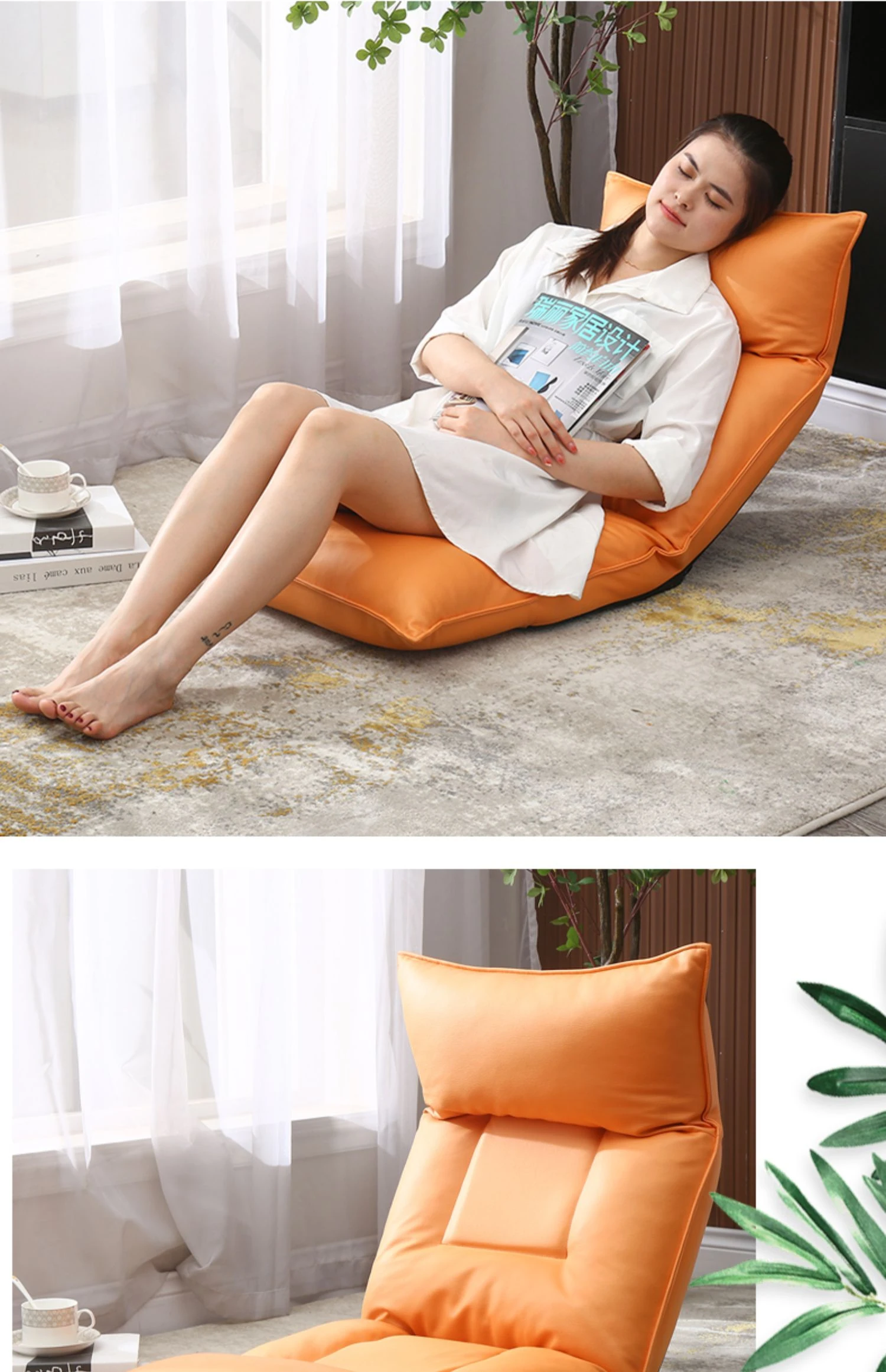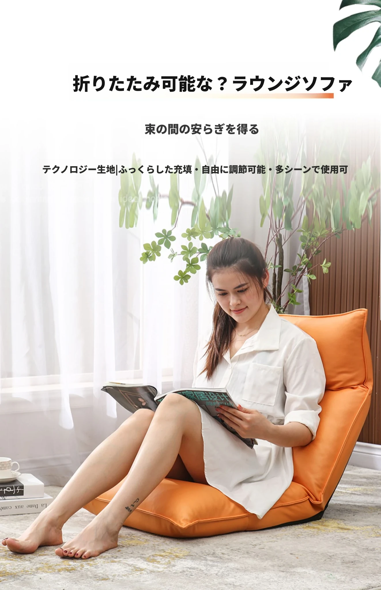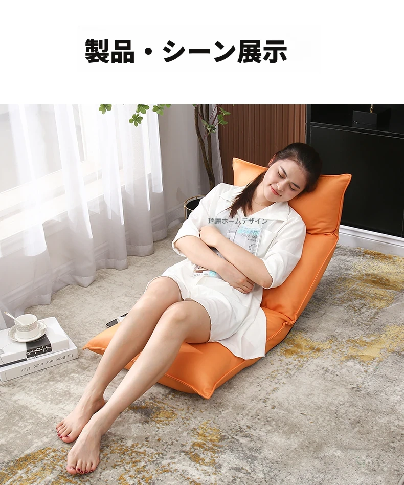 リラックスソファ|寝転んでくつろげる!タタミ風デザインの窓辺・バルコニー向け、折りたたみ式のコンピューターチェア。快適な背もたれで、あなたのくつろぎタイムをサポートします!