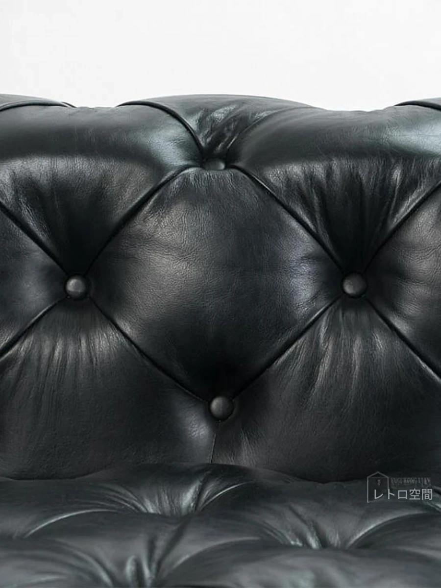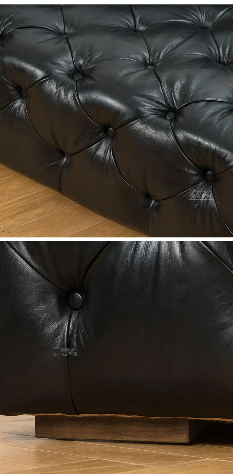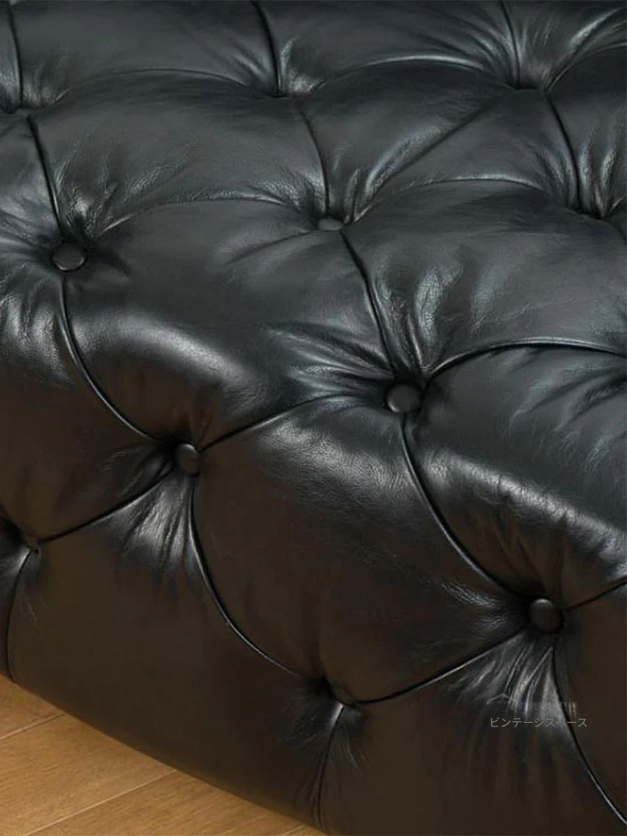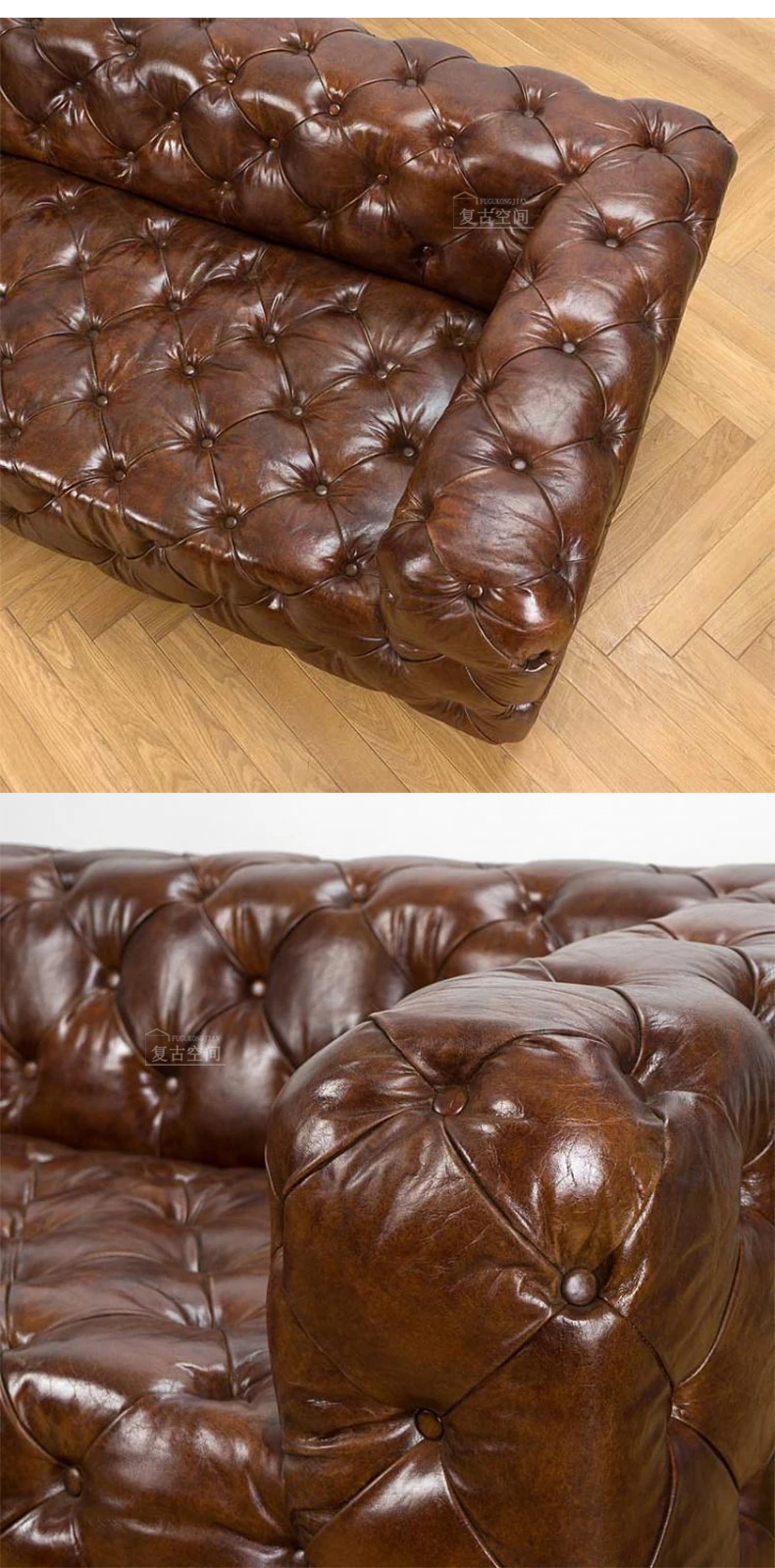 レトロインダストリアルスタイルのアメリカン本革ソファ - 高級オイルワックス牛革使用、快適な3人掛けソファ。別荘やシガーバーに最適な洗練されたデザインで、リラックスした空間を演出します。