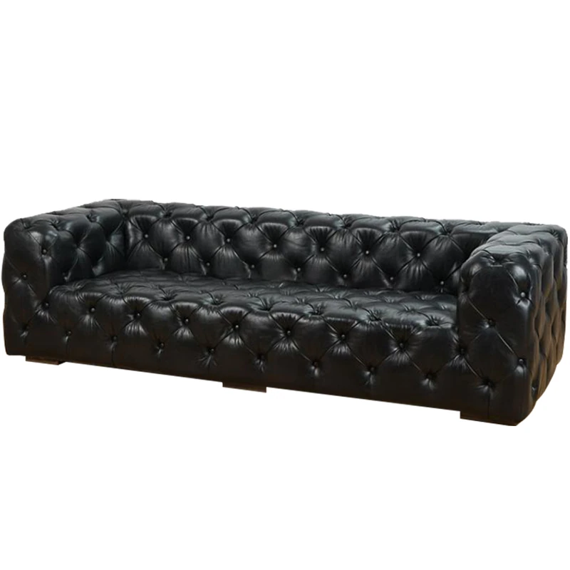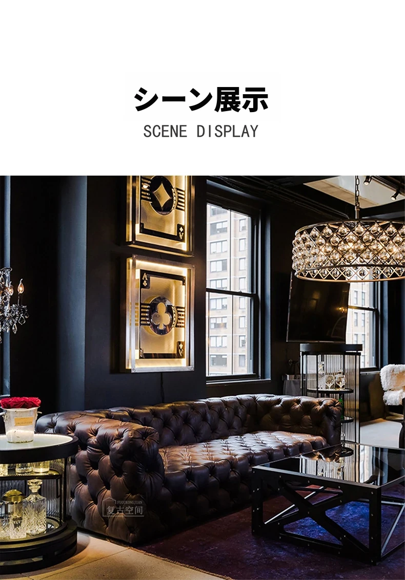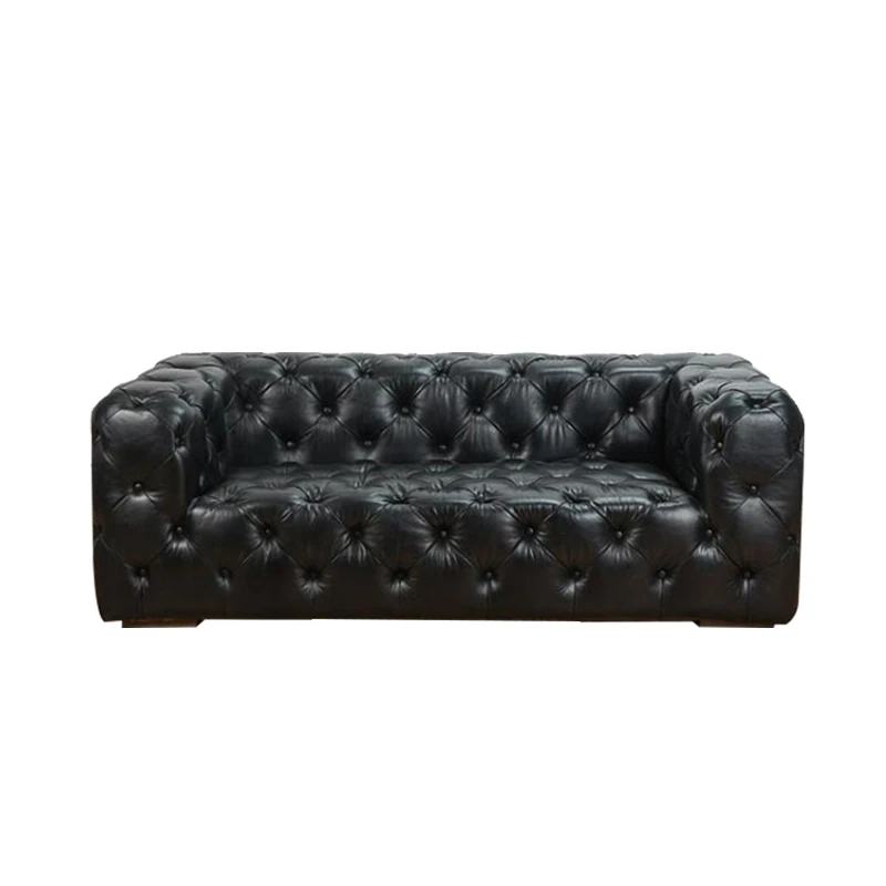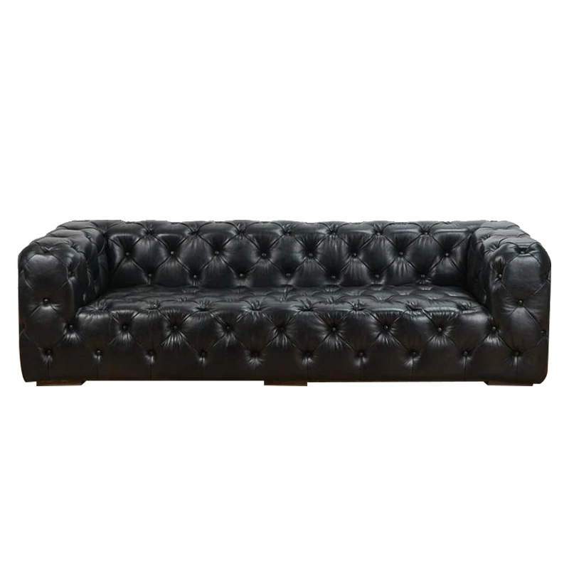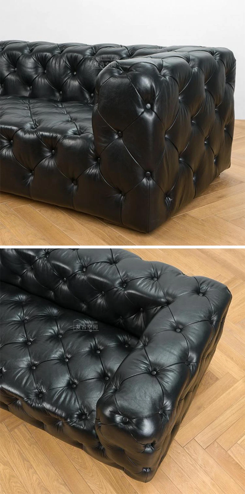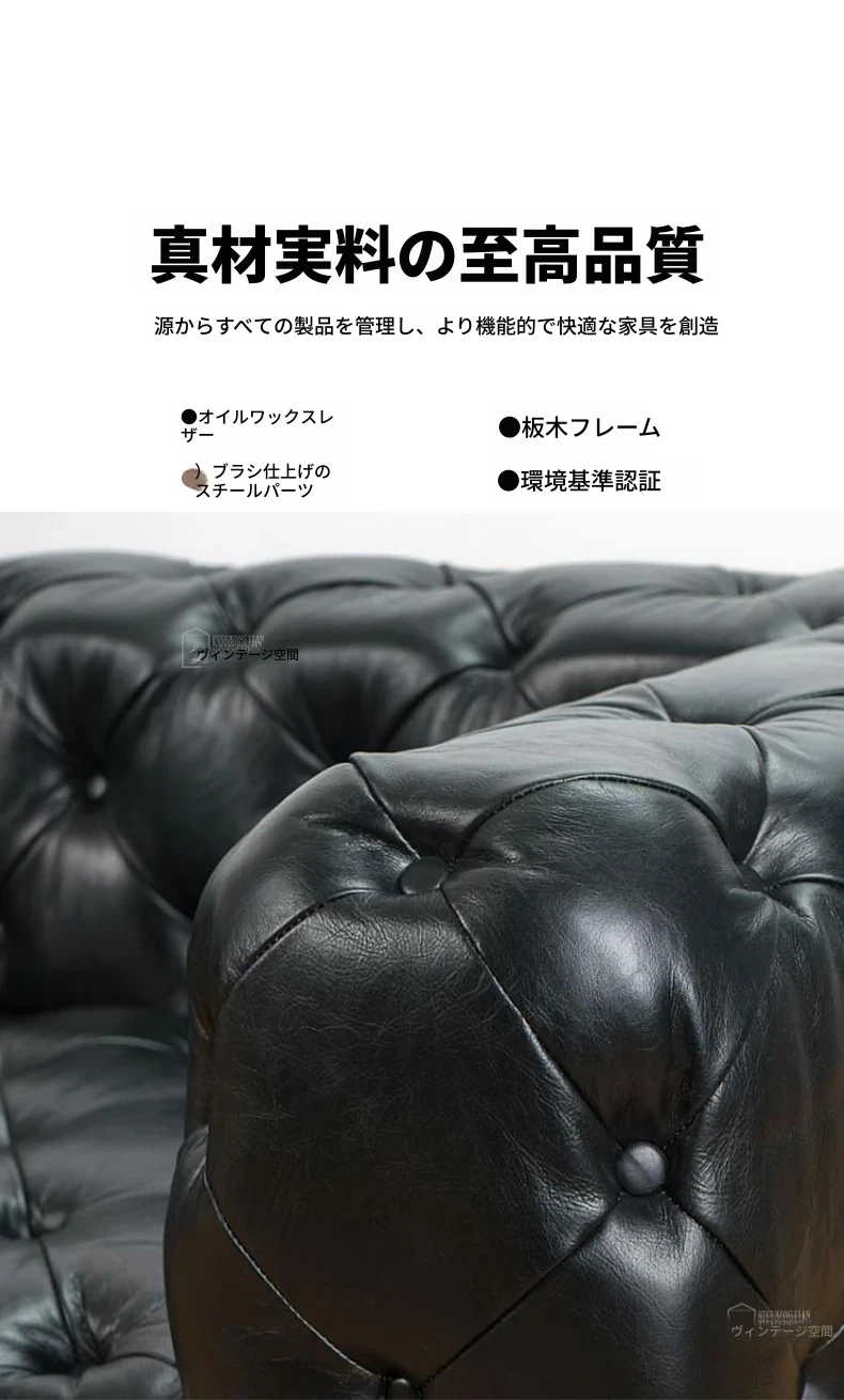 レトロインダストリアルスタイルのアメリカン本革ソファ - 高級オイルワックス牛革使用、快適な3人掛けソファ。別荘やシガーバーに最適な洗練されたデザインで、リラックスした空間を演出します。