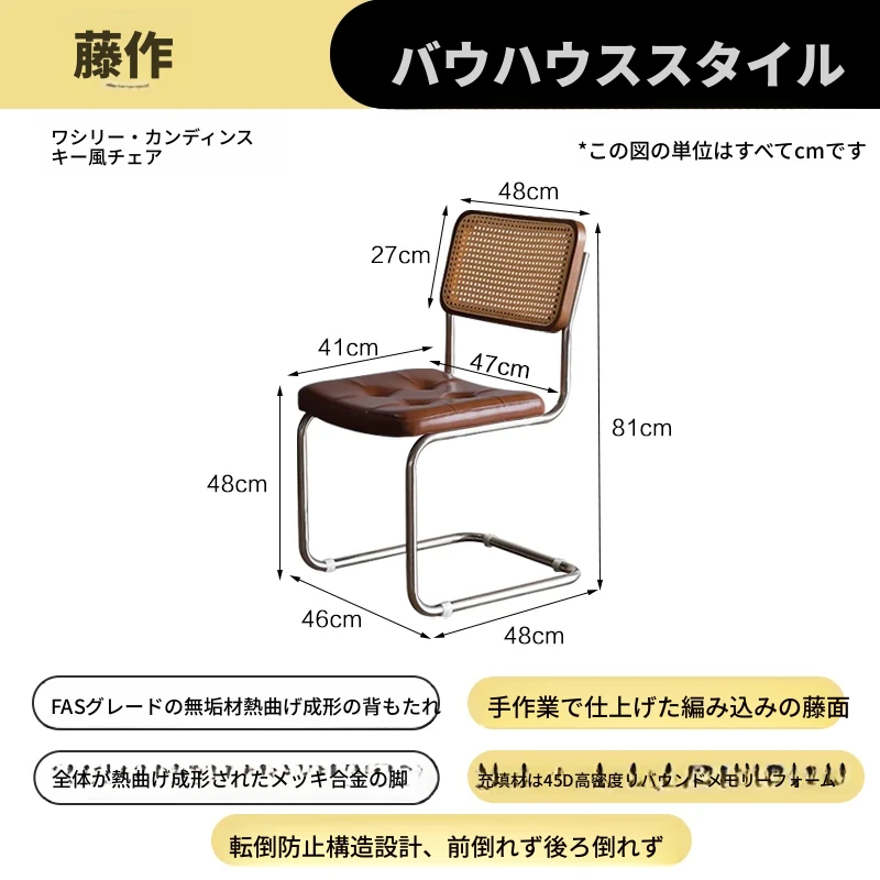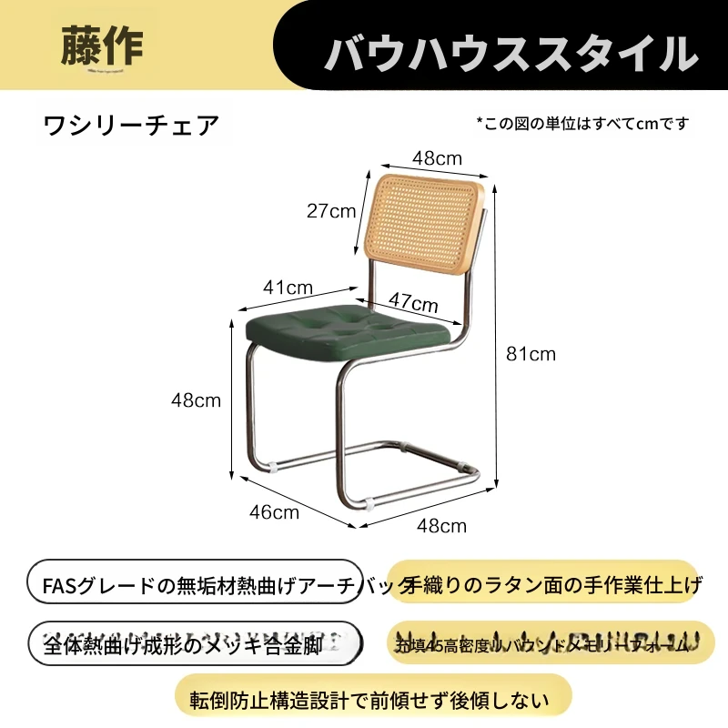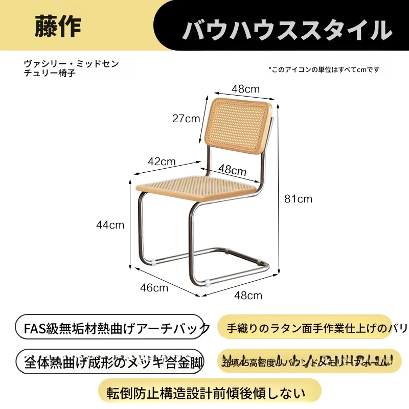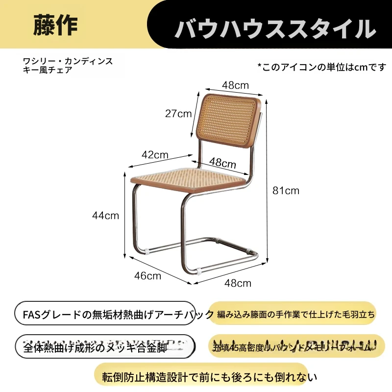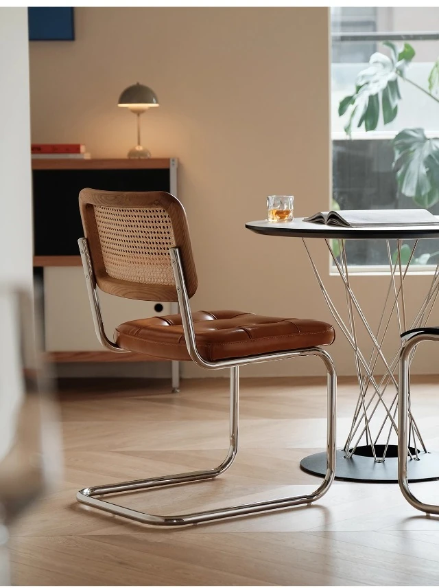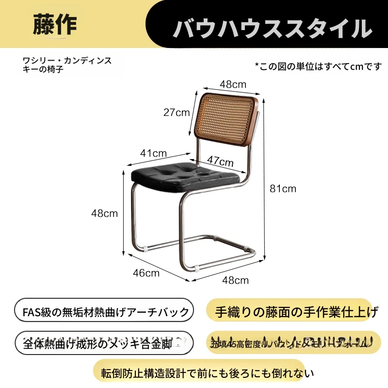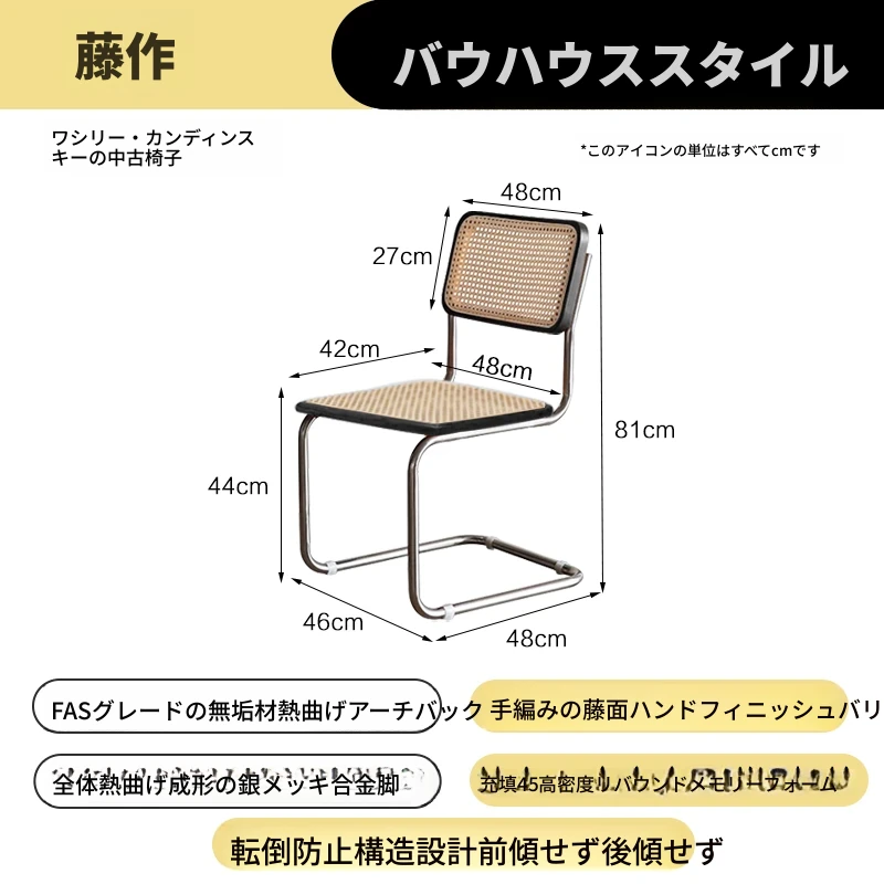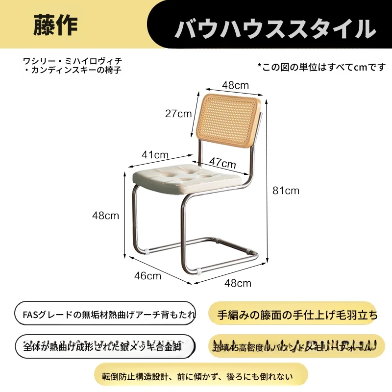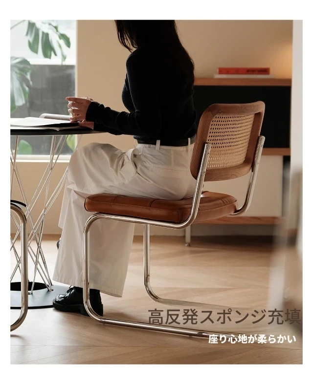 中古の無垢材とラタン編みの背もたれ付きインスタ映えするダイニングチェア、家庭用デザイナー弓形椅子、ヴィンテージのヴァシリー椅子で、スタイリッシュな空間を演出!