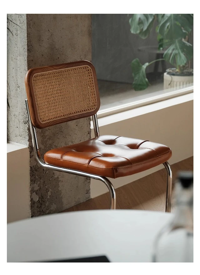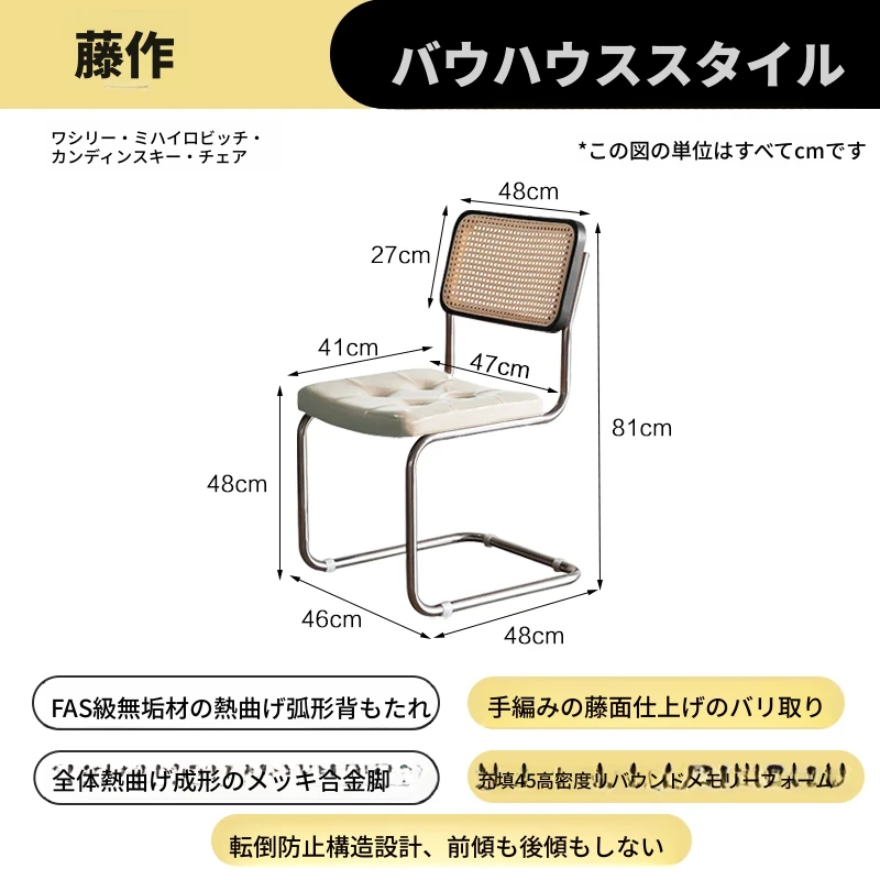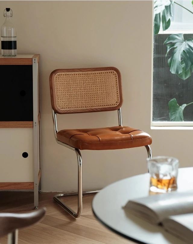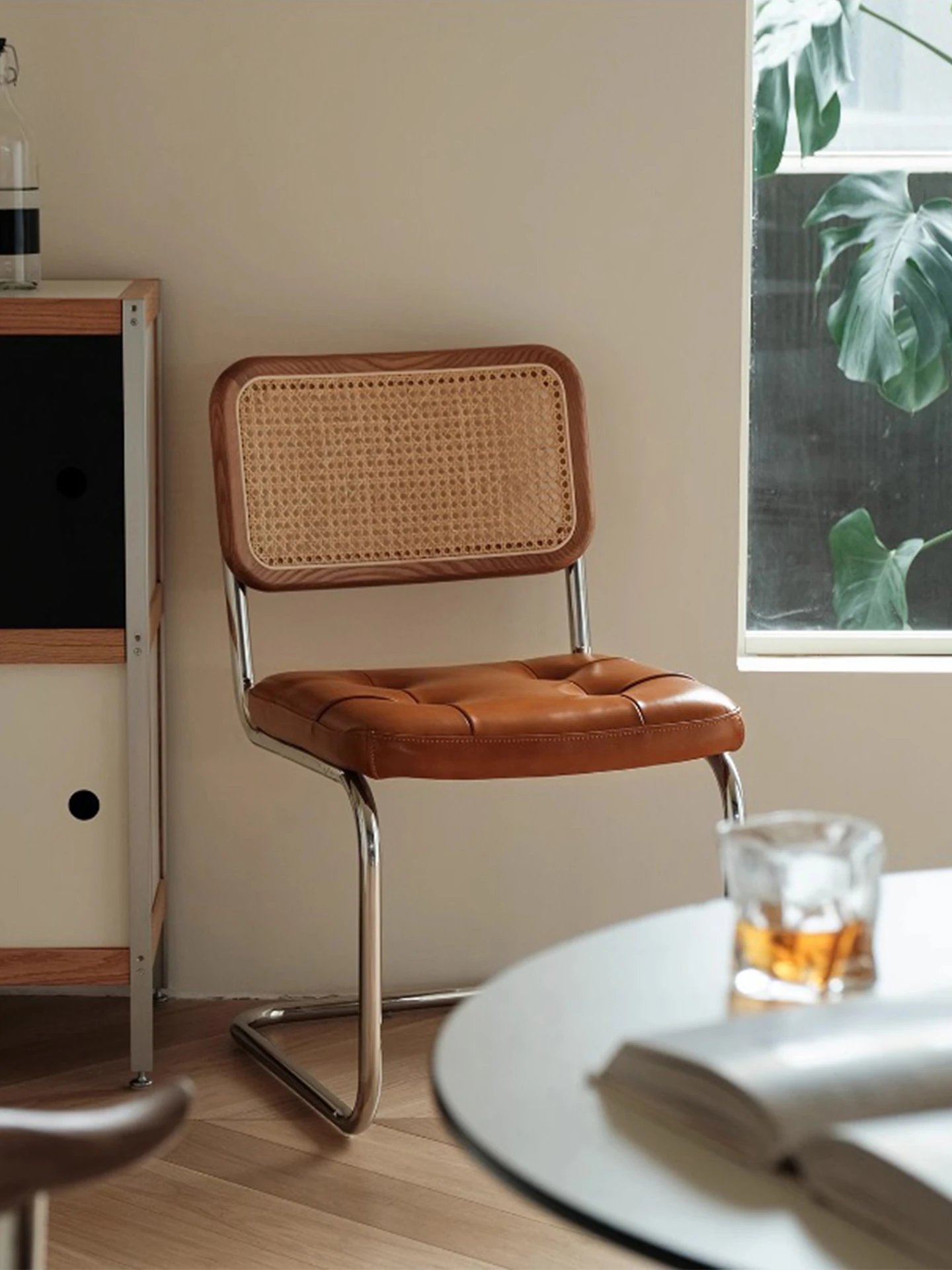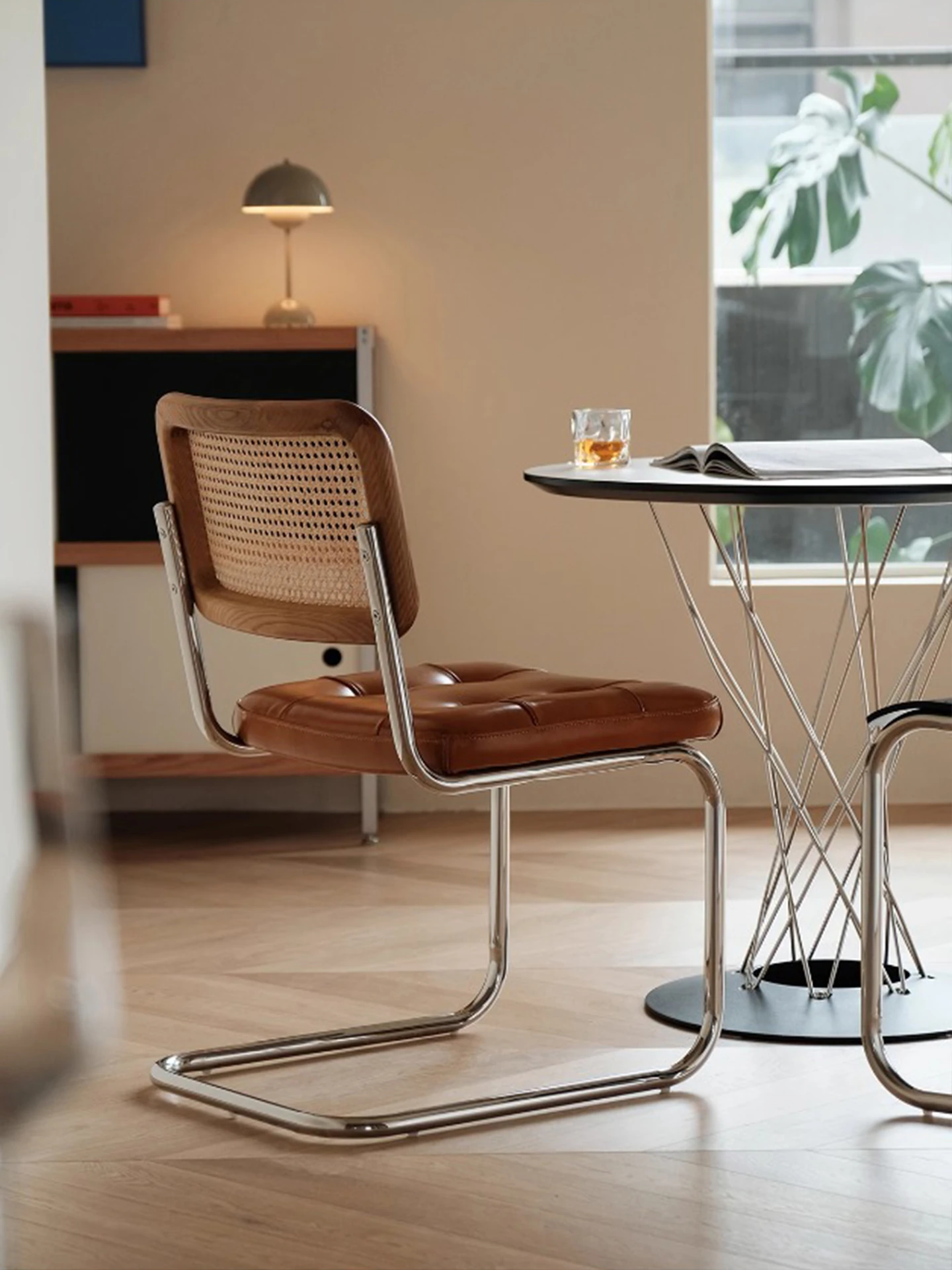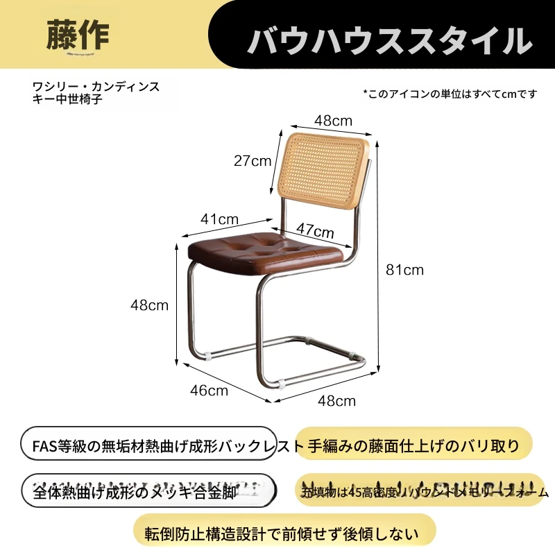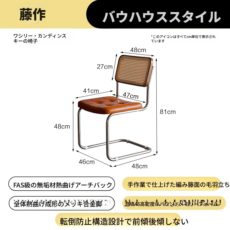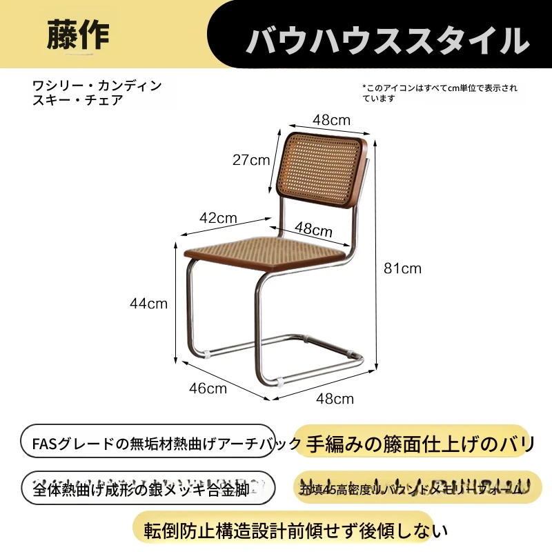 中古の無垢材とラタン編みの背もたれ付きインスタ映えするダイニングチェア、家庭用デザイナー弓形椅子、ヴィンテージのヴァシリー椅子で、スタイリッシュな空間を演出!