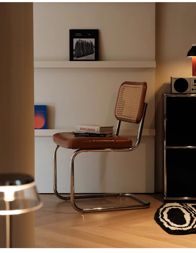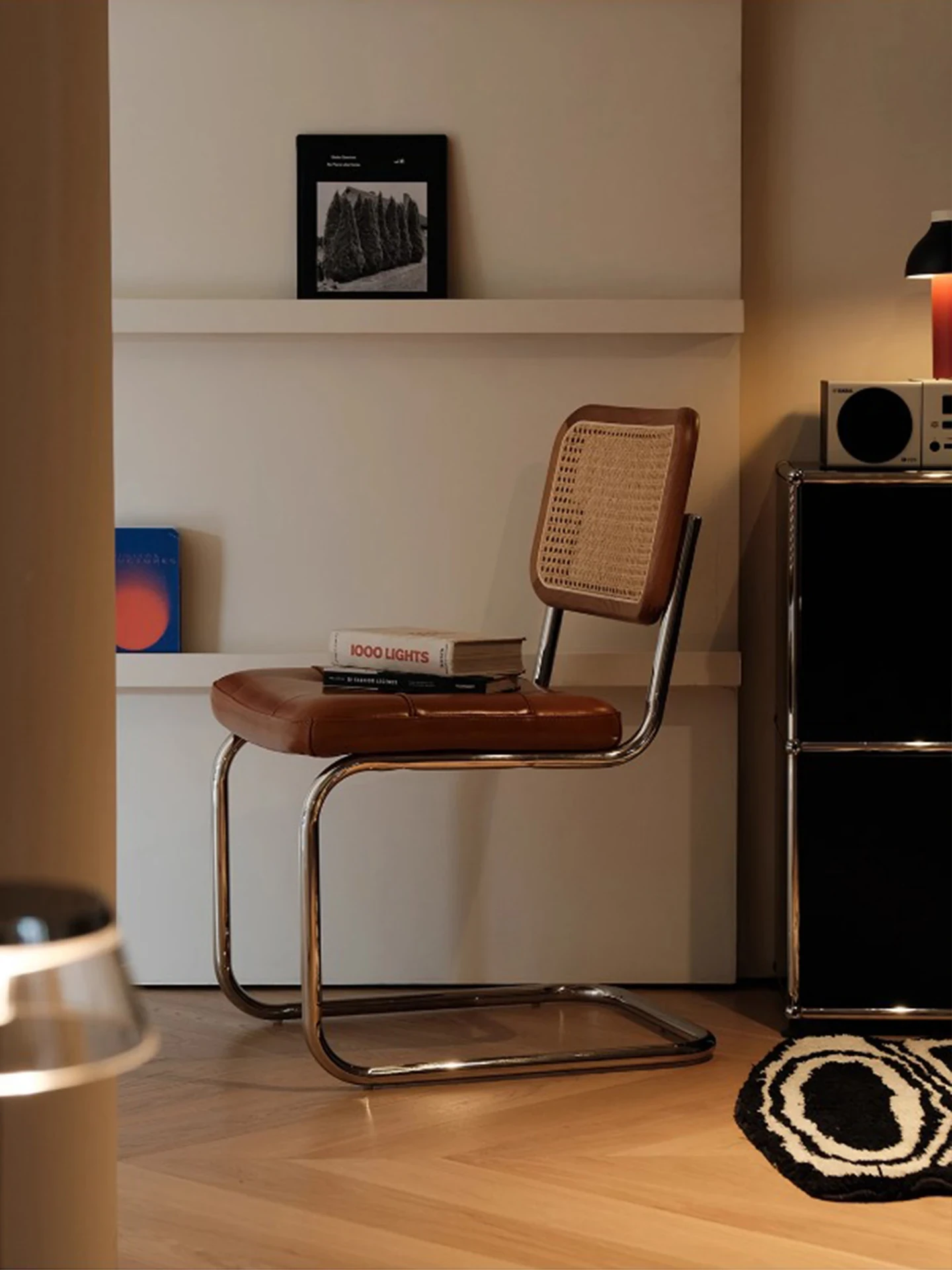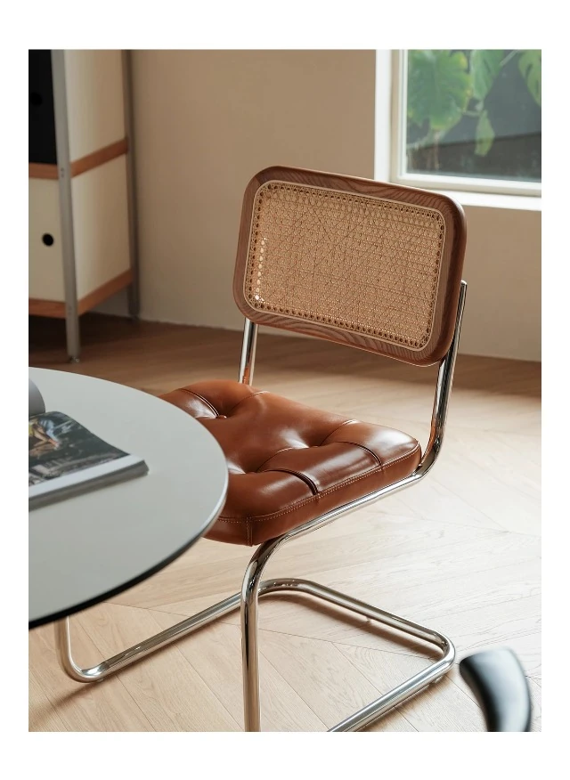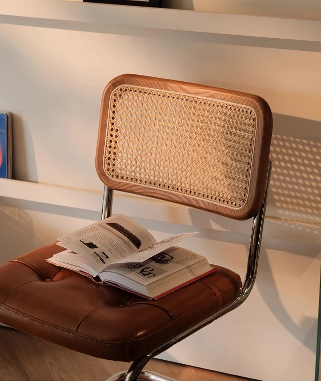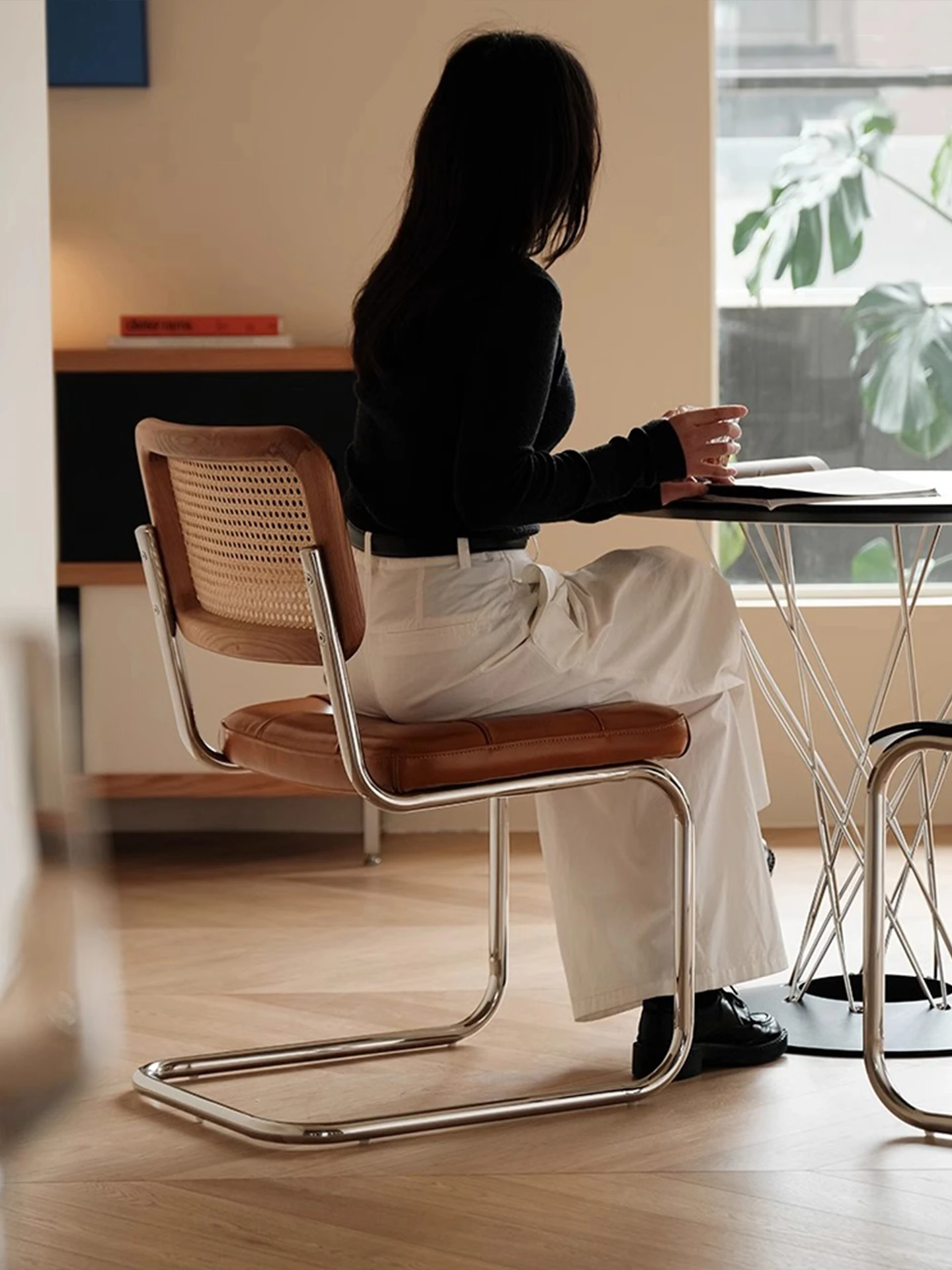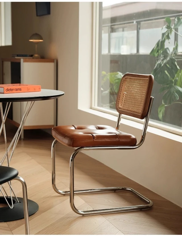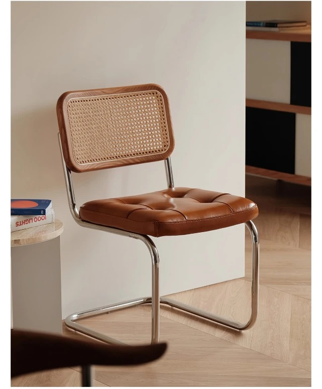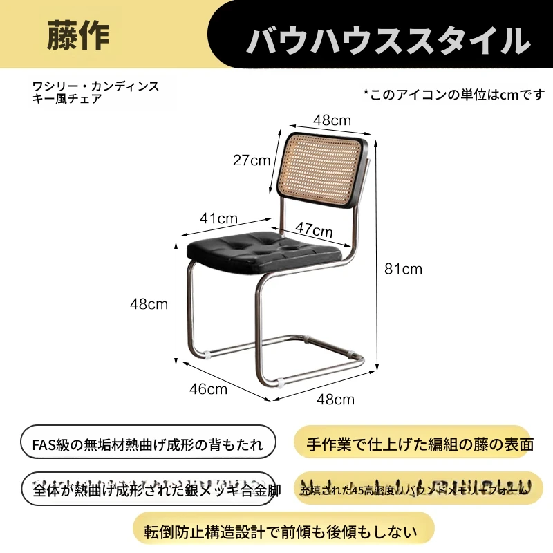 中古の無垢材とラタン編みの背もたれ付きインスタ映えするダイニングチェア、家庭用デザイナー弓形椅子、ヴィンテージのヴァシリー椅子で、スタイリッシュな空間を演出!