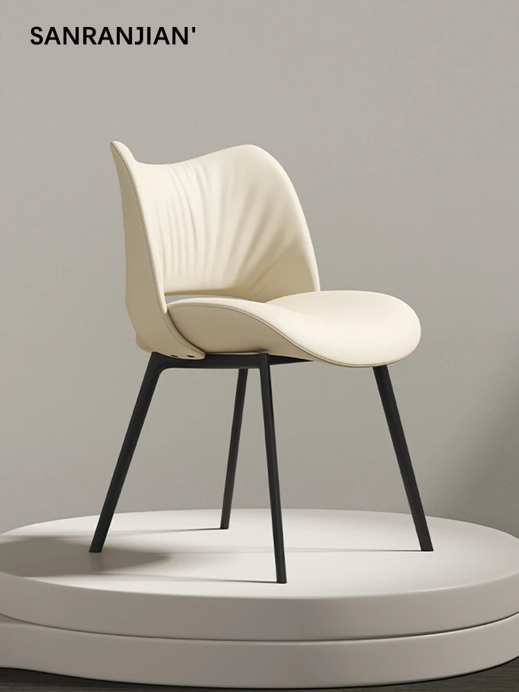 Italian Minimalist Dining Chair – Luxury Designer Cream Leather Lounge Chair for Home, Restaurant, and Hotel – Stylish and Comfortable with Backrest