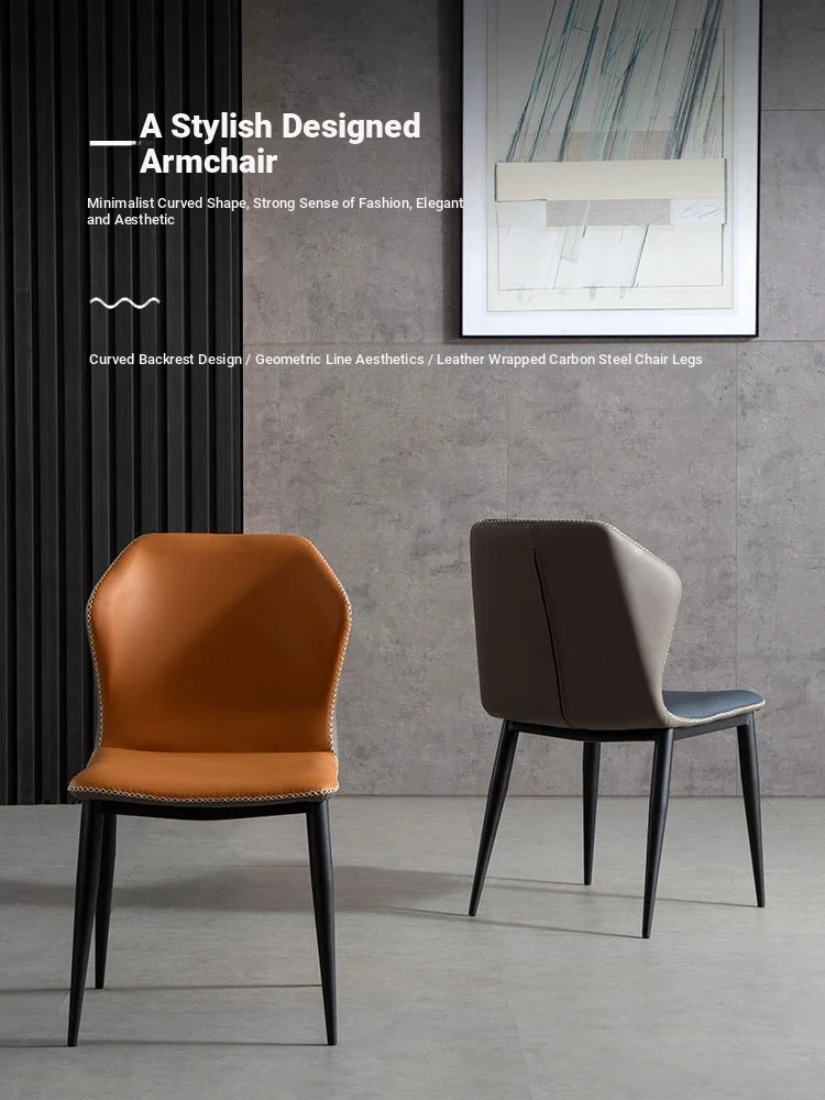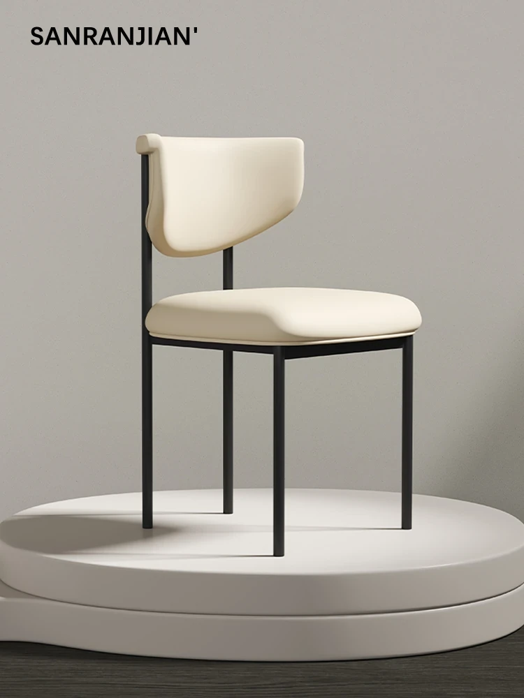 Stylish Minimalist Dining Chair - Modern Nordic Home and Office Upholstered Backrest Chair for Restaurant Meetings - Premium Leather Stool