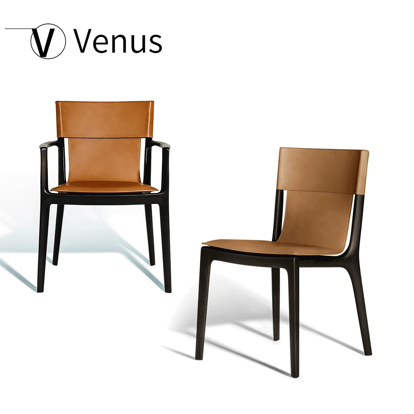 Elegant Italian Minimalist Dining Chair - Modern Leather Seat for Home, Nordic Luxury Design, Soft Upholstered Backrest, Perfect for Stylish Dining Spaces