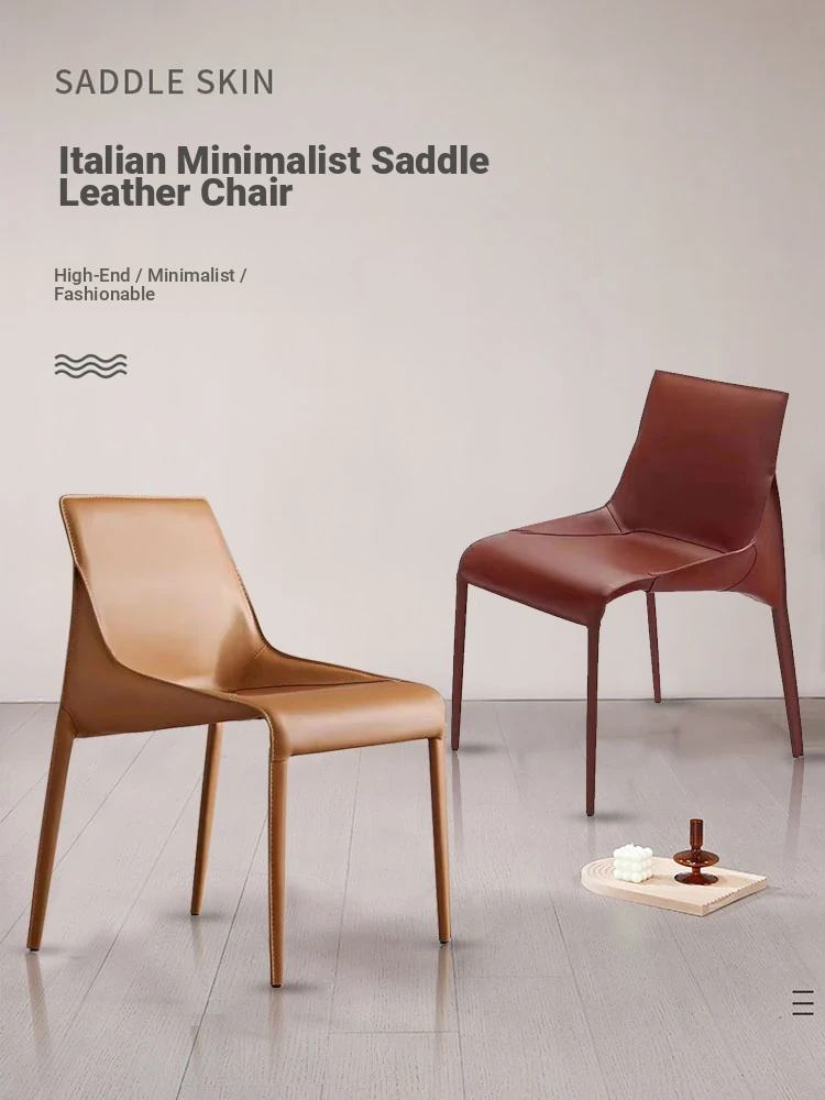 Minimalist Luxury Dining Chair for Home and Hotels - Premium Full Saddle Leather Island Dining Chair, Elegant Tea Table Chair, Perfect for Hosts