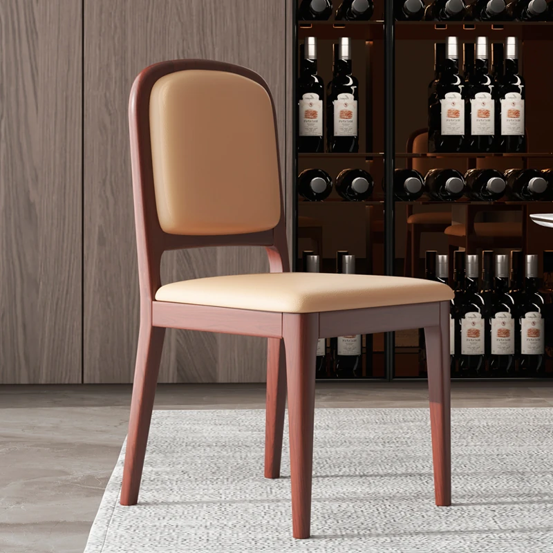 シンプルでスタイリッシュな中古風無垢材ダイニングチェア - 家庭用北欧モダンデザイン、厚めのソフトパッキング背もたれ付きで快適な座り心地!