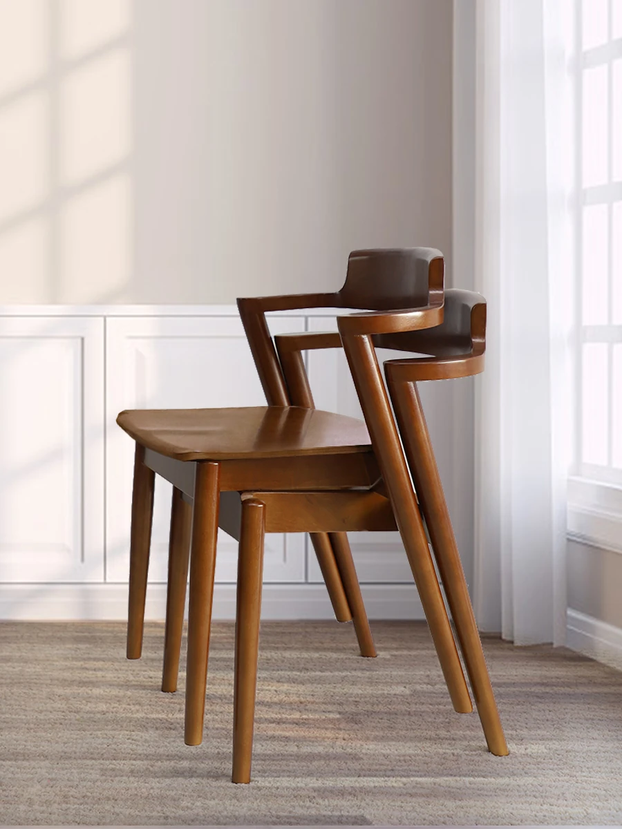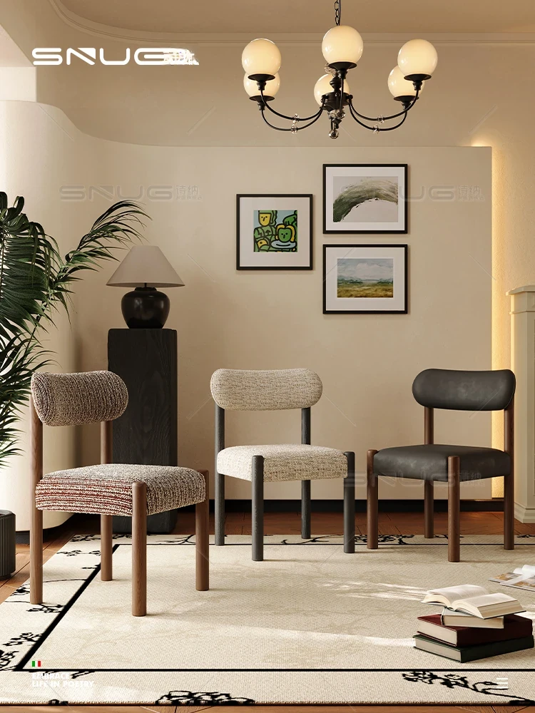高級感あふれる無垢材のダイニングチェア - 家庭用ウォールナット製イタリアンスタイルの食卓椅子、北欧デザインの背もたれ付きで、食事の時間を特別なひとときに!ヴィンテージ風の魅力を持つ、おしゃれなダイニングチェア。